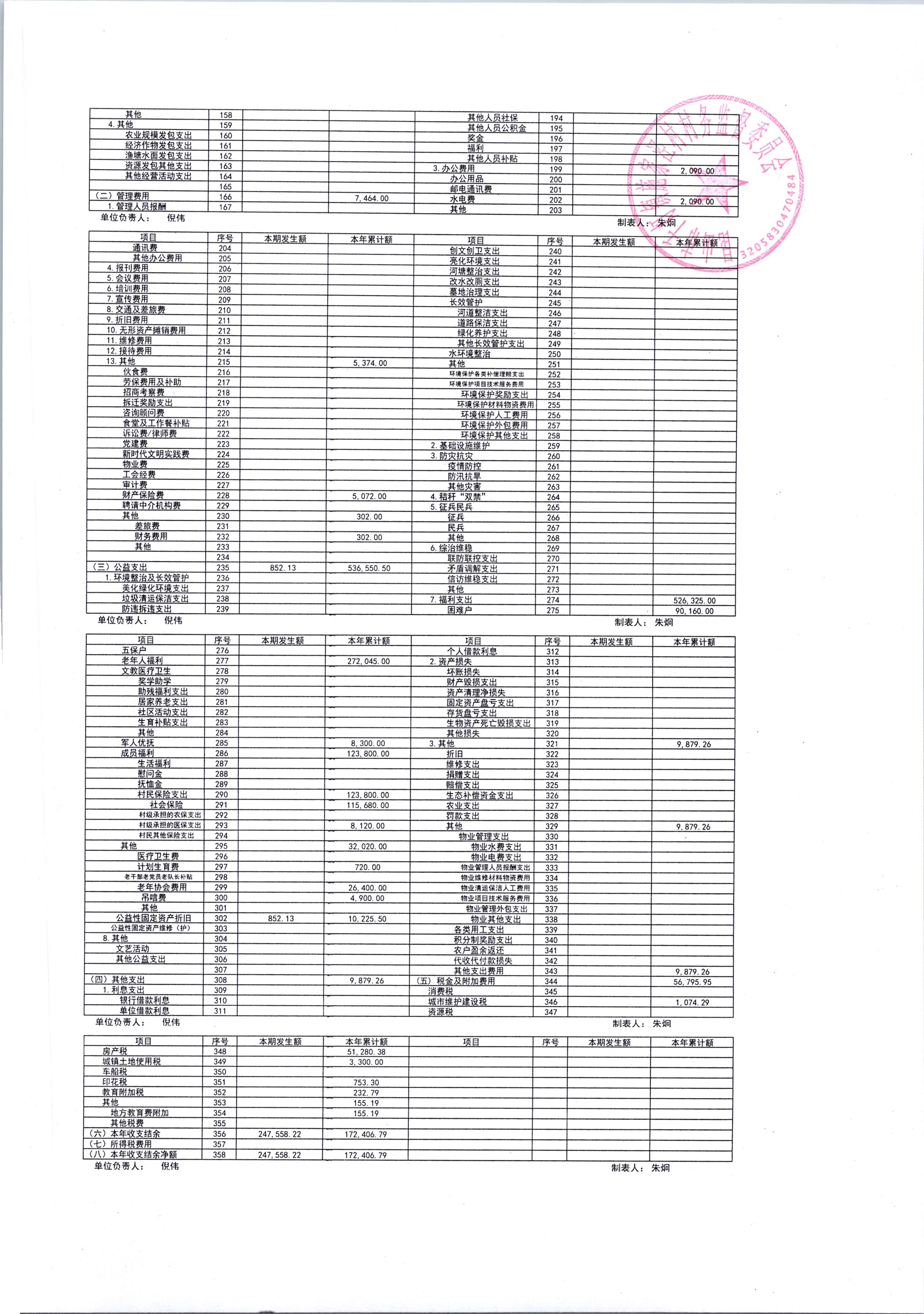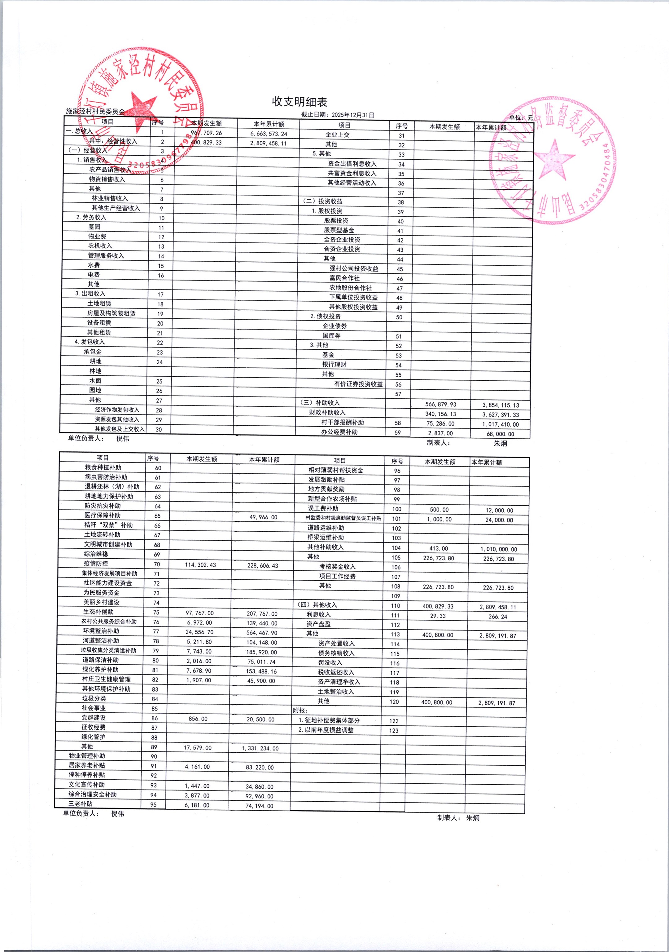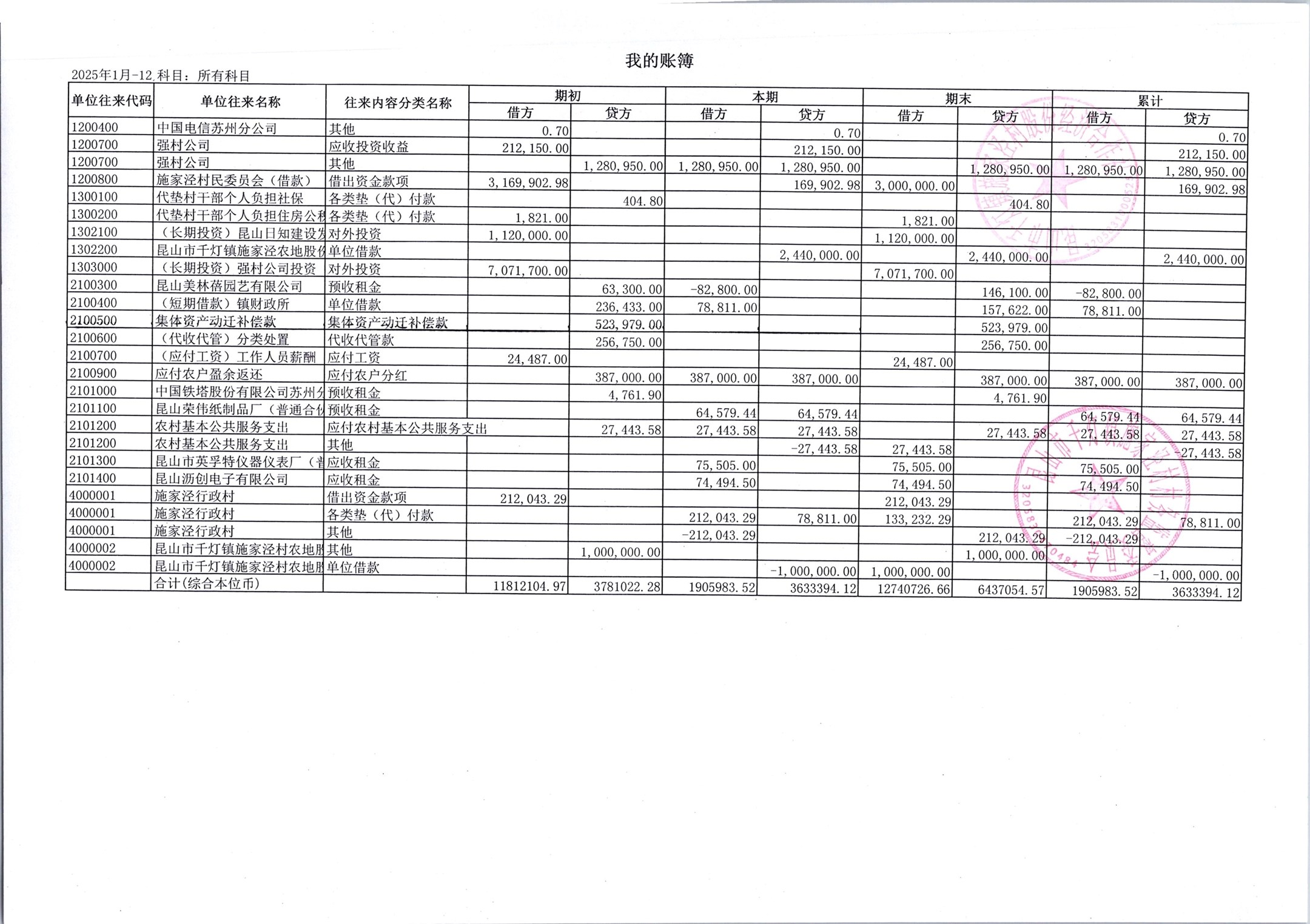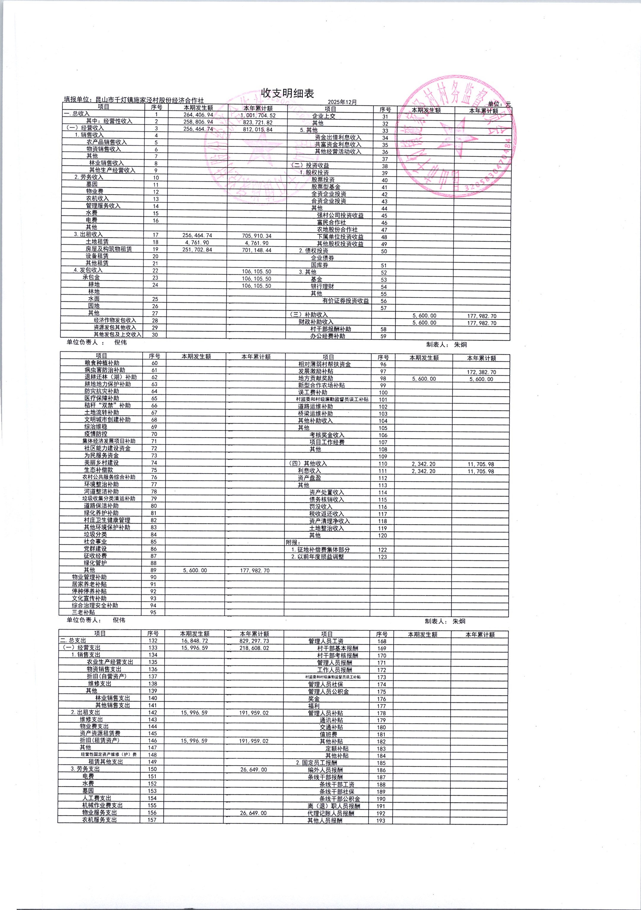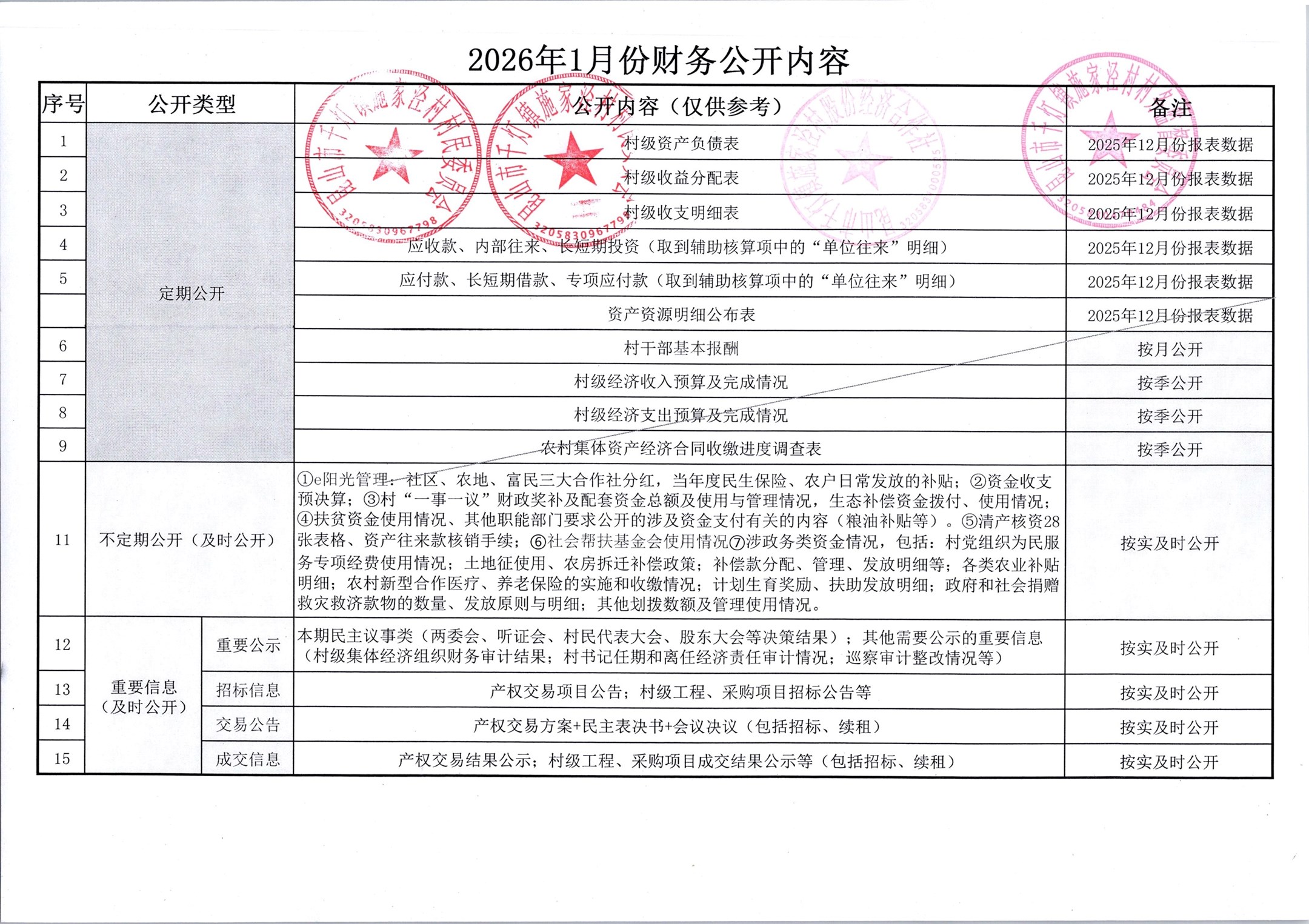 2026年1月份施家泾村财务公开