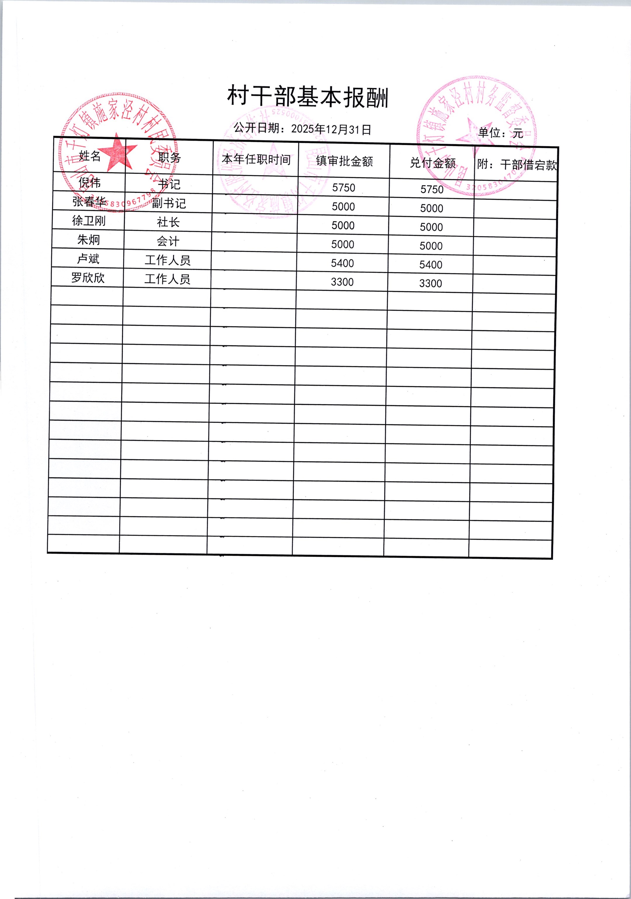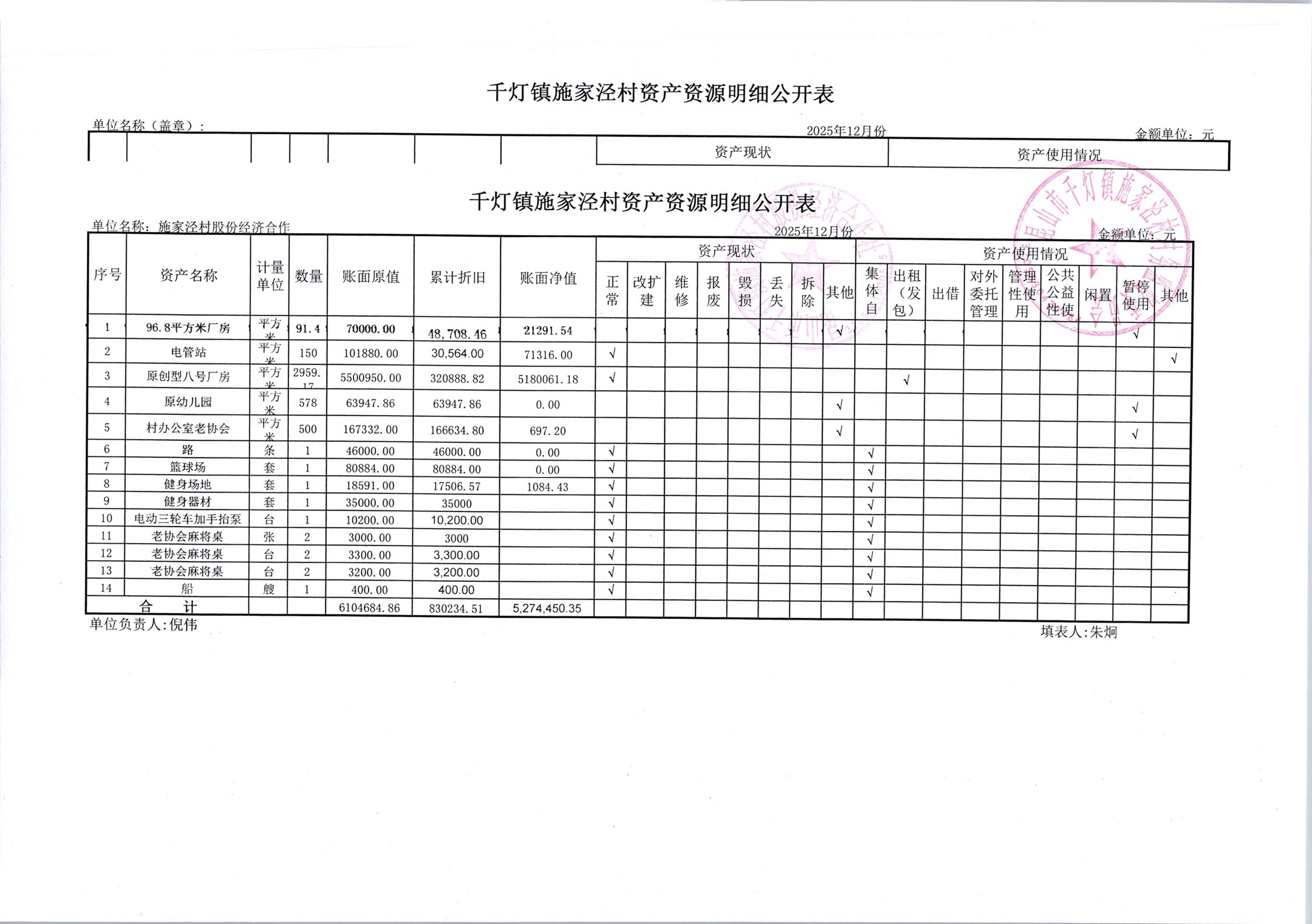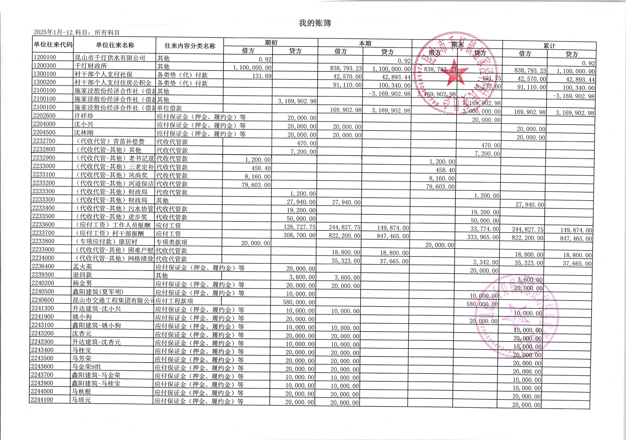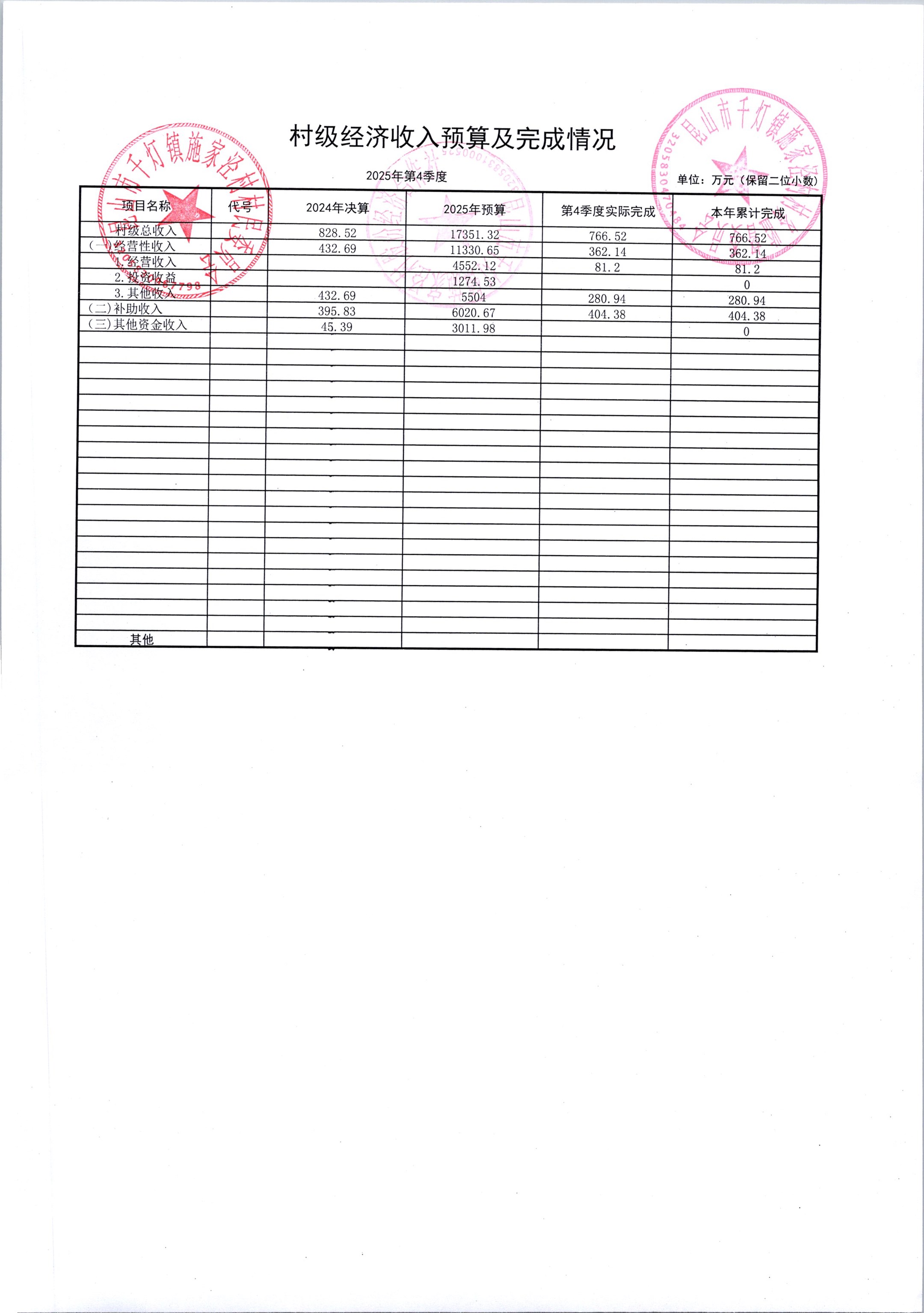 2026年1月份施家泾村财务公开
