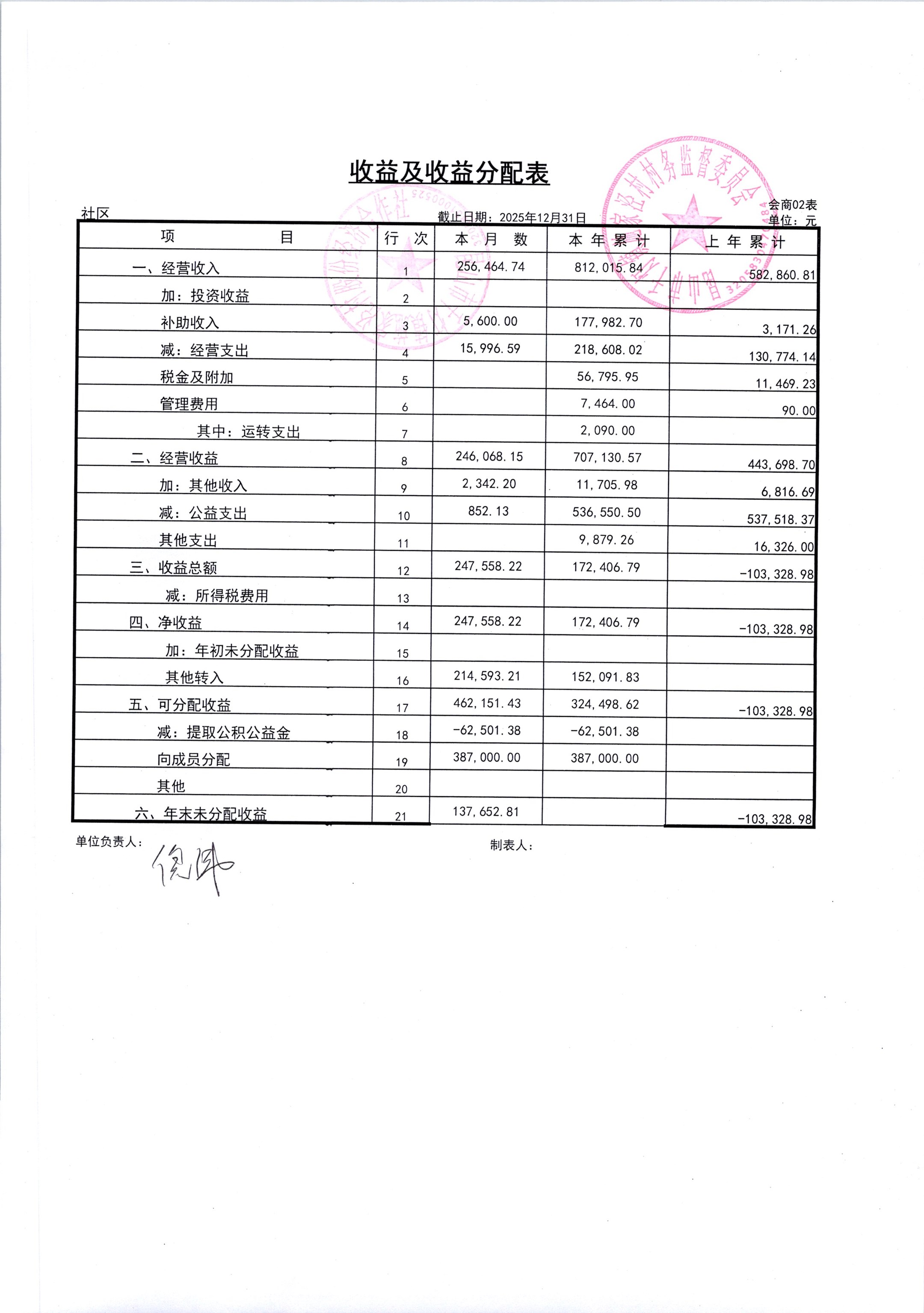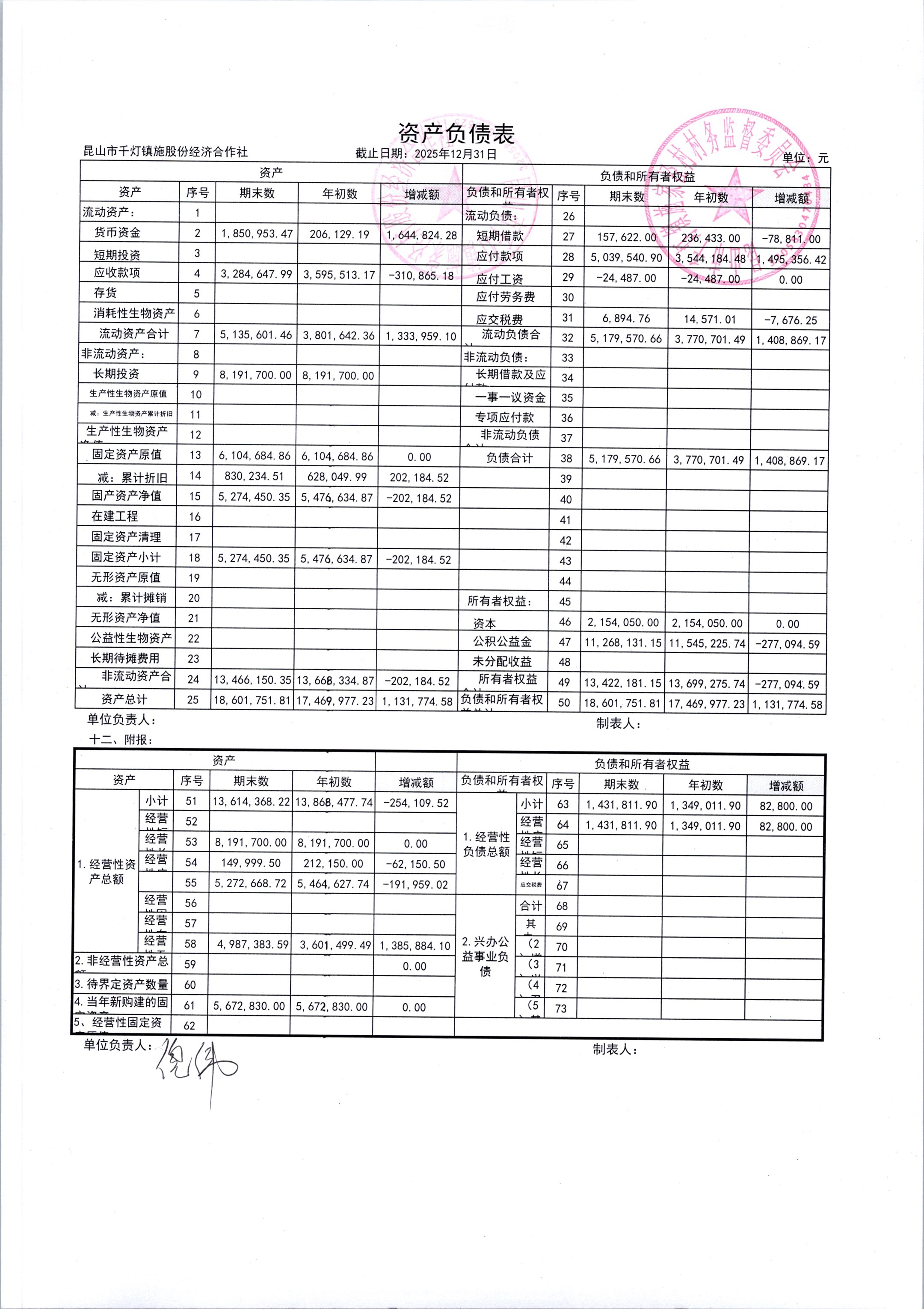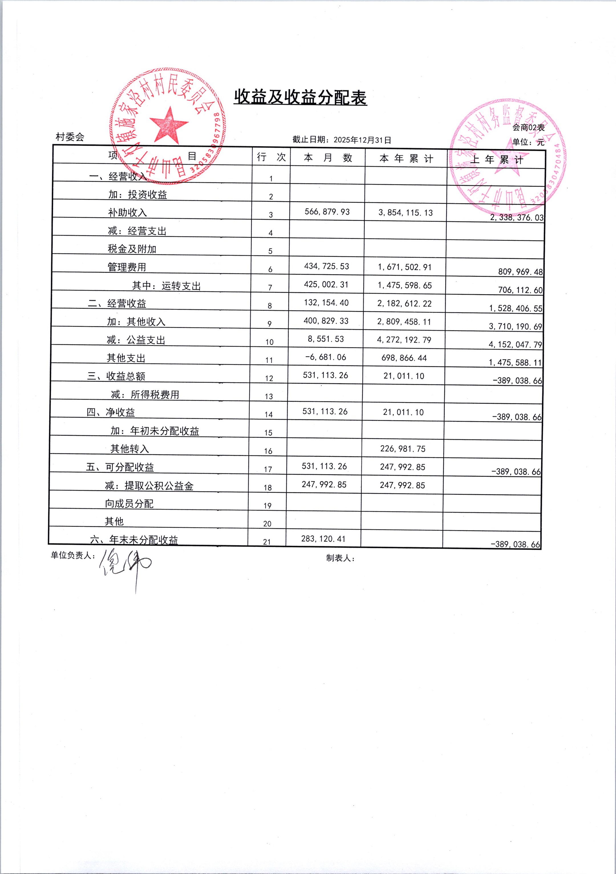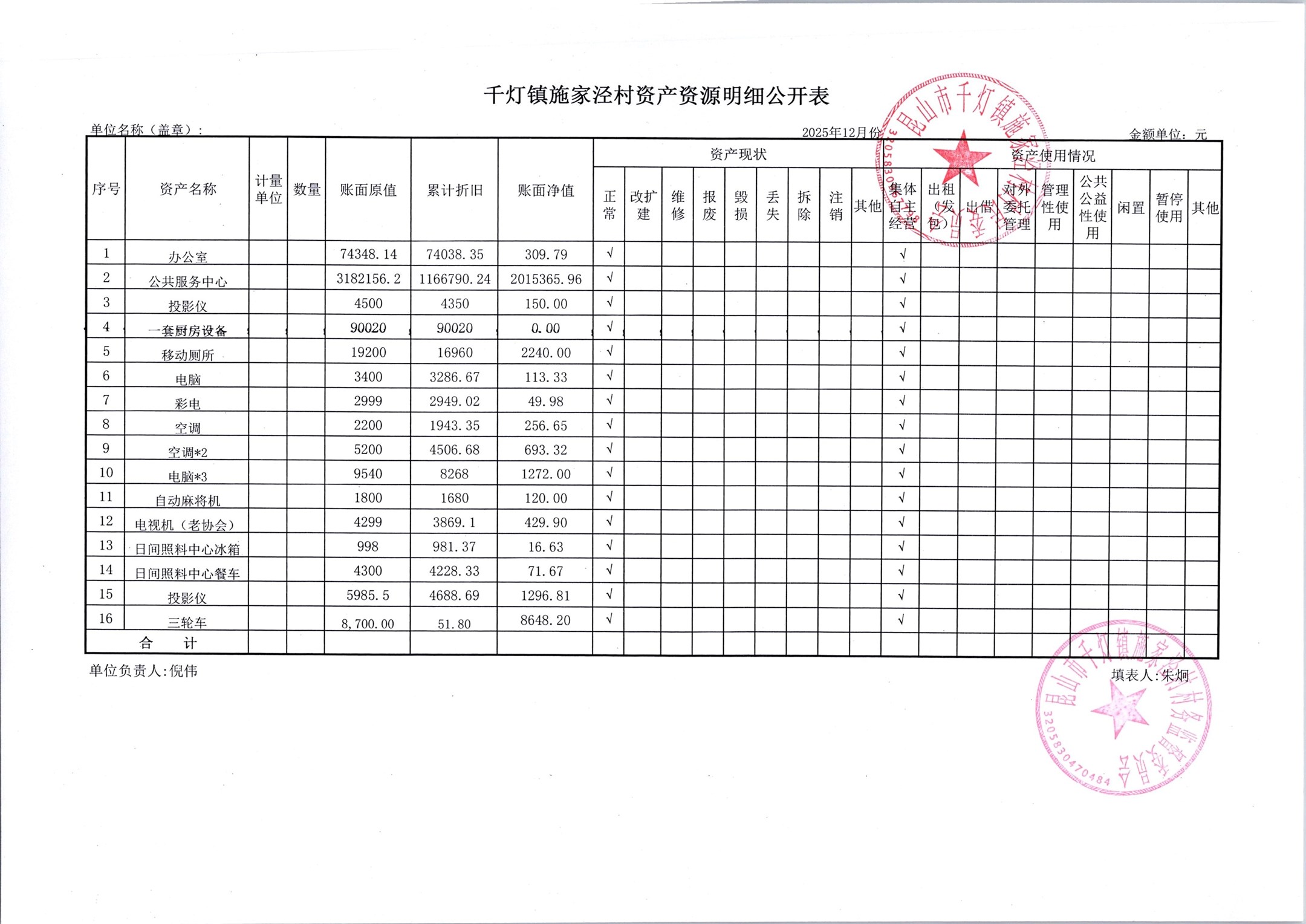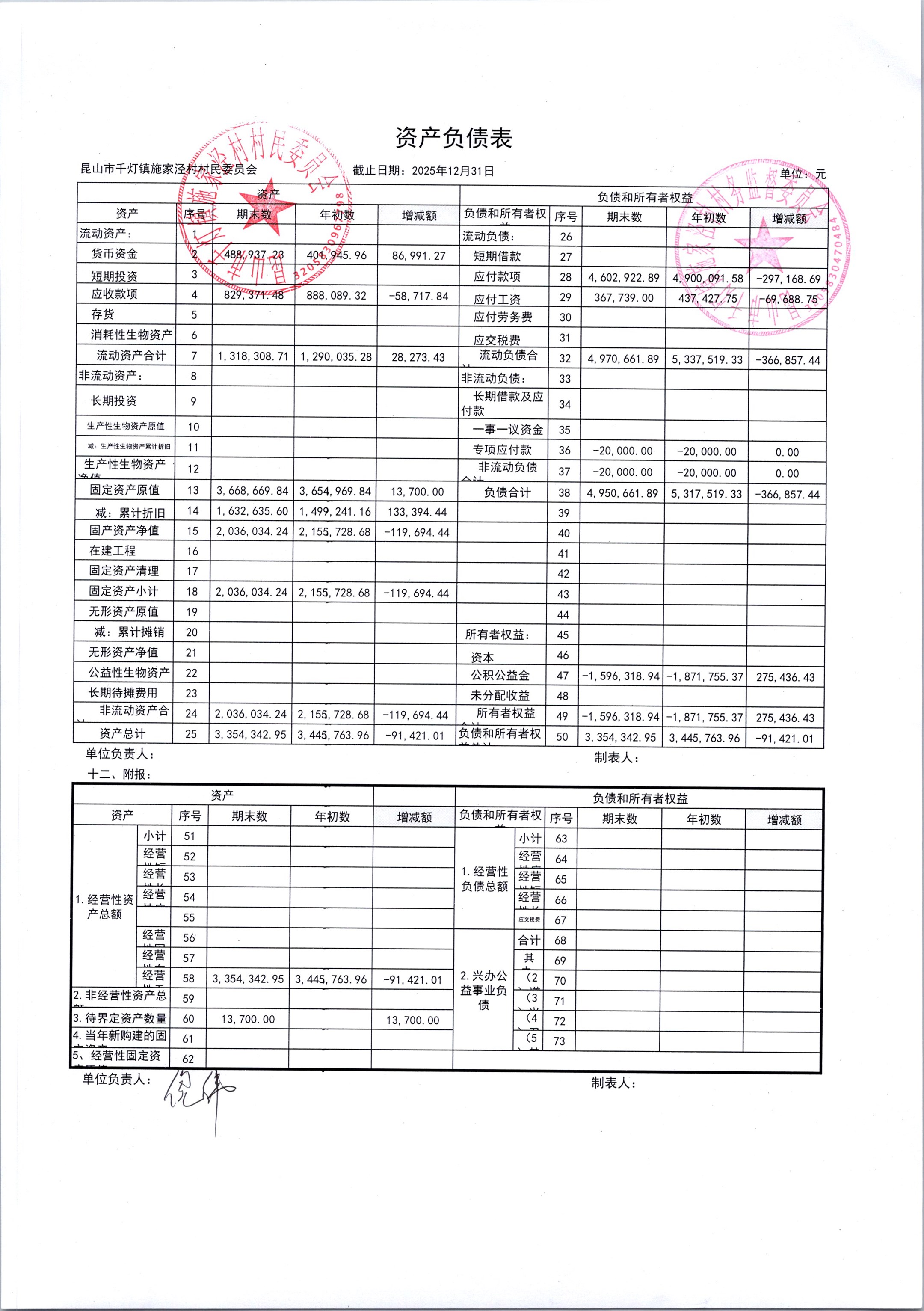 2026年1月份施家泾村财务公开