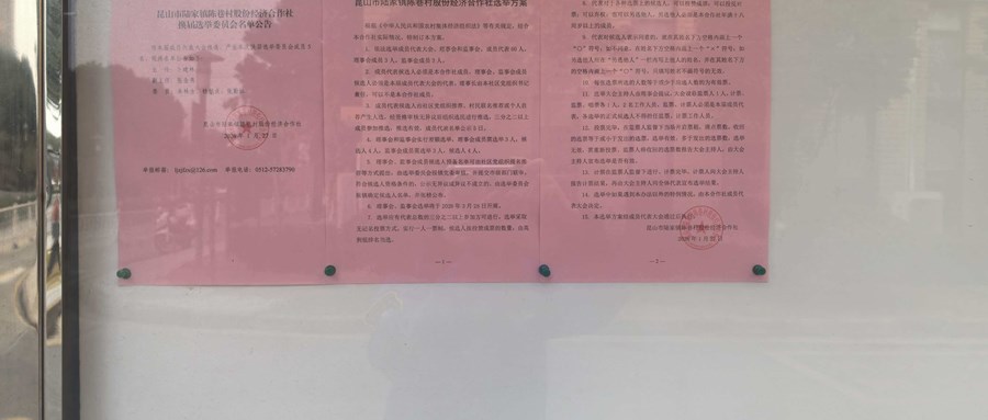 昆山市陆家镇陈巷村股份经济合作社选举方案公示