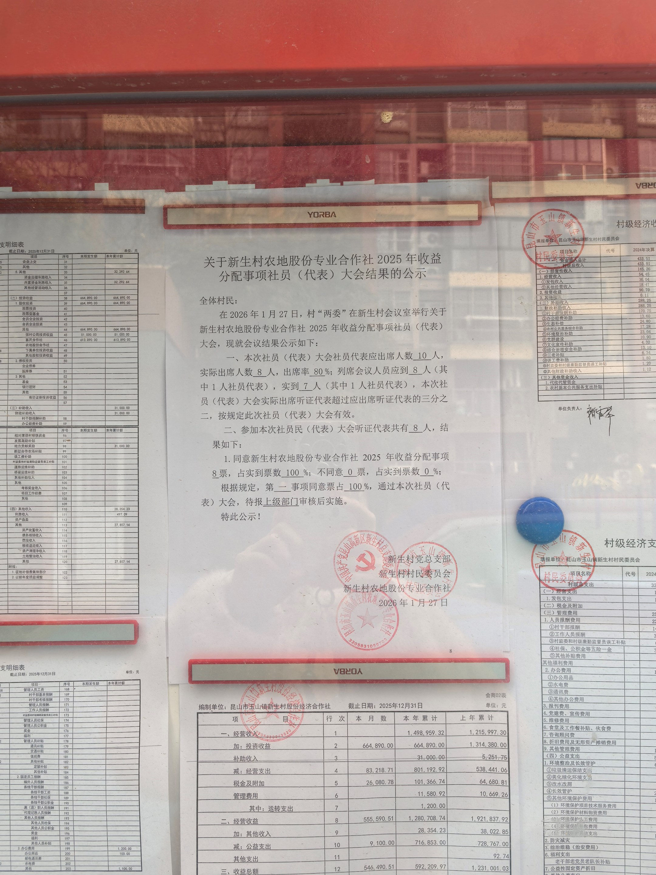 关于新生村农地股份专业合作社2025年收益分配事项社员代表大会结果的公示