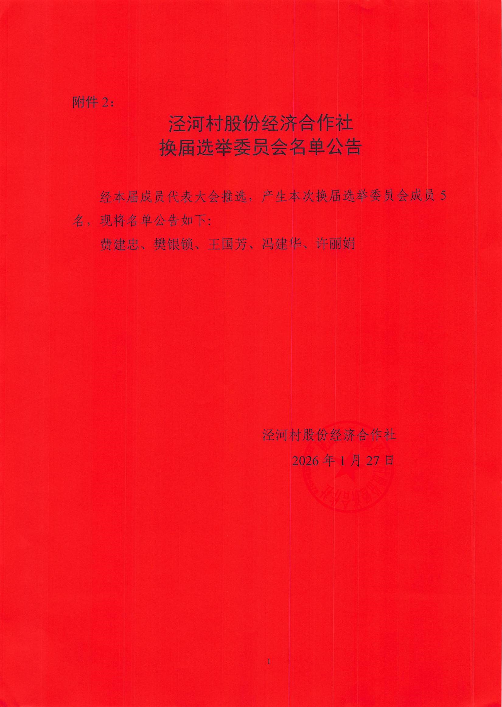 泾河村股份经济合作社换届选举委员会名单公示