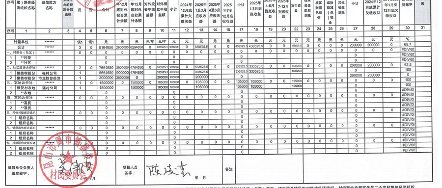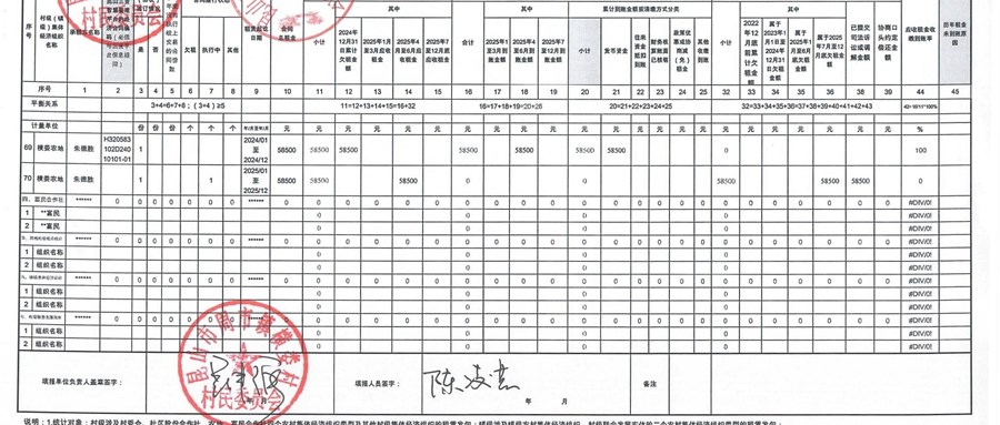 2025年1~12月农村集体资产经济合同收缴进度调查表