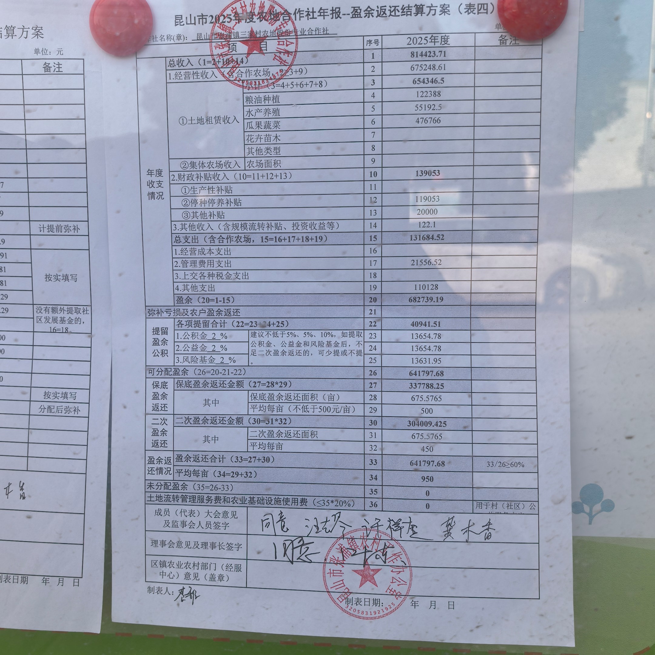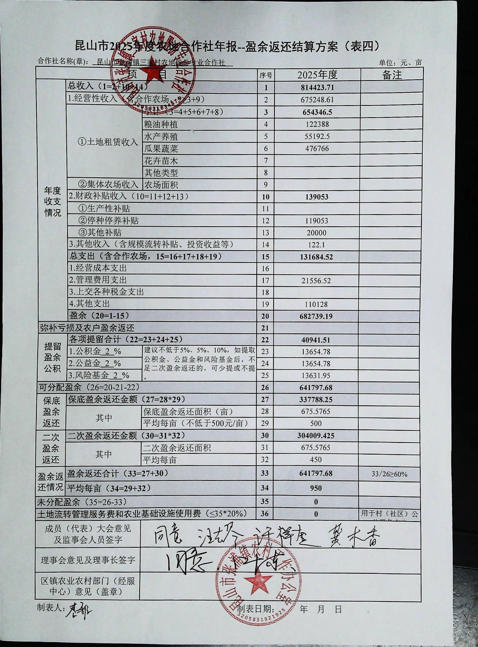 三家村农地股份专业合作社盈余返还方案