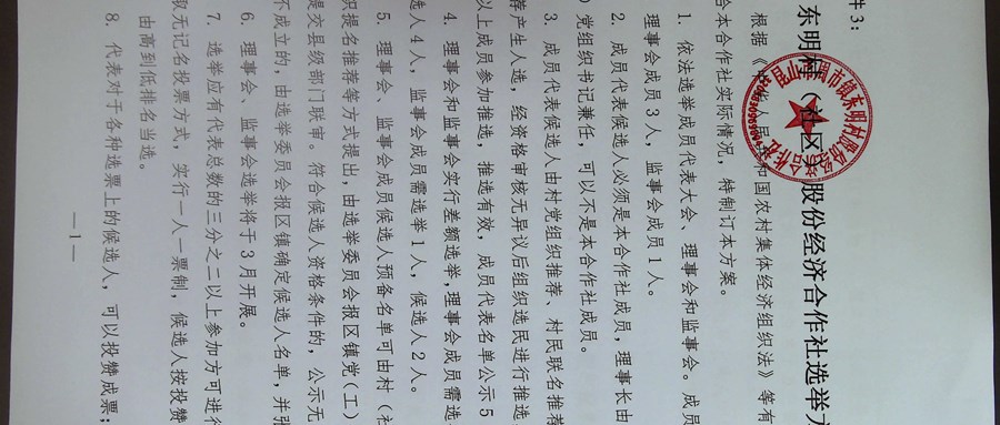 东明村(社区)股份经济合作社换届选举委员会名单、选举方案公示