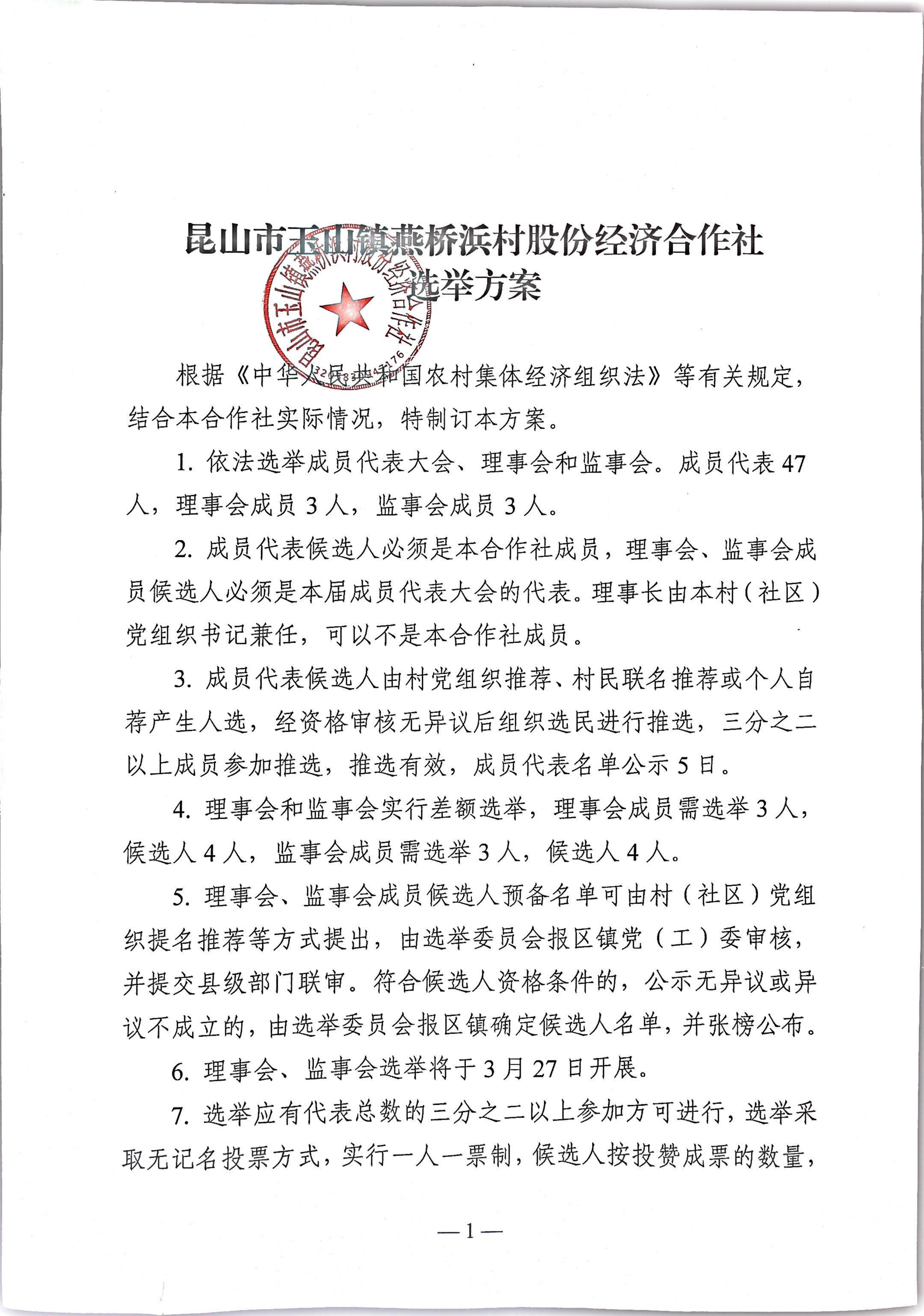 燕桥浜村股份经济合作社换届选举选前工作大会结果公示(选举委员会名单、选举方案)