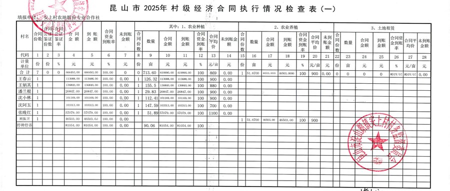 2025年第四季度农村集体资产经济合同收缴进度表