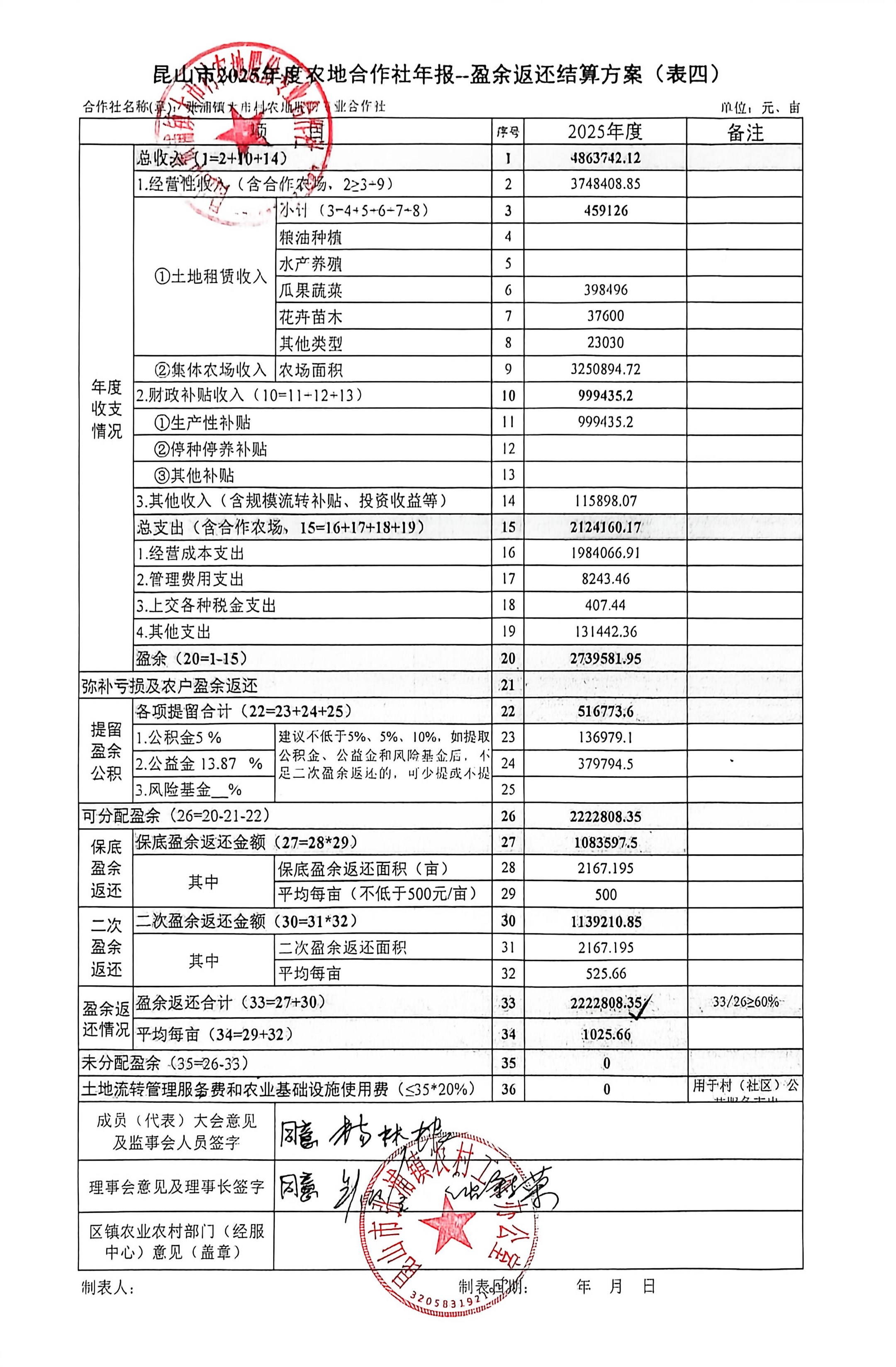 2025盈余返还结算方案