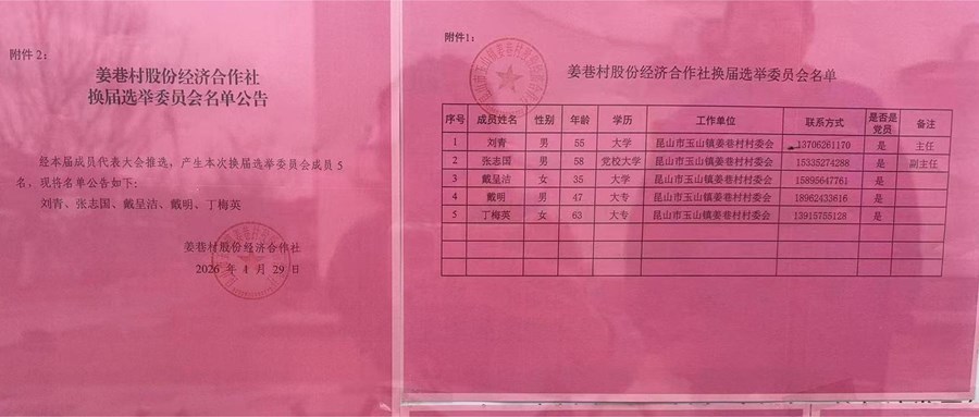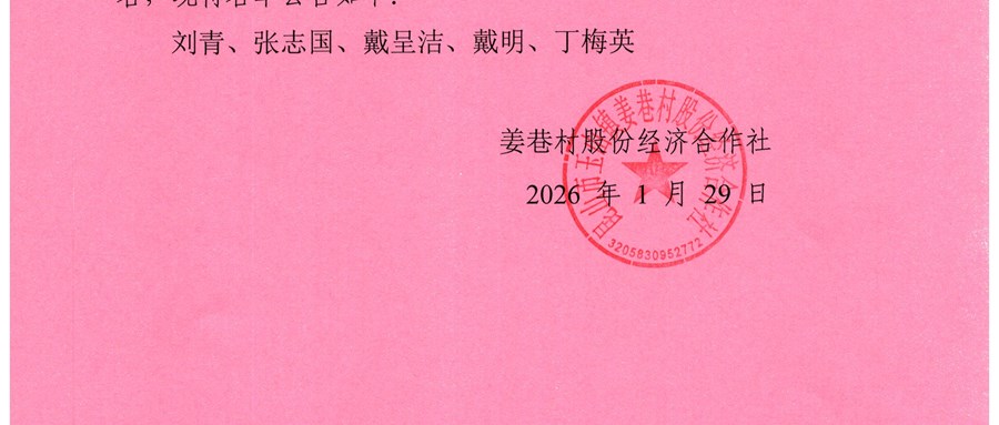 姜巷村股份经济合作社选举委员会名单公告