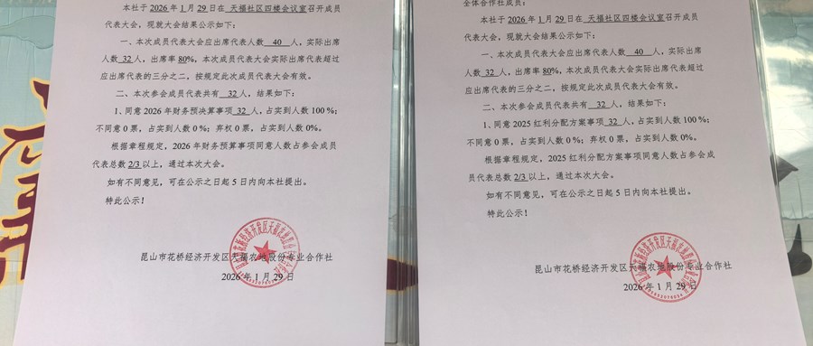 2025年天福农地股份专业合作社成员代表代表大会会后公示