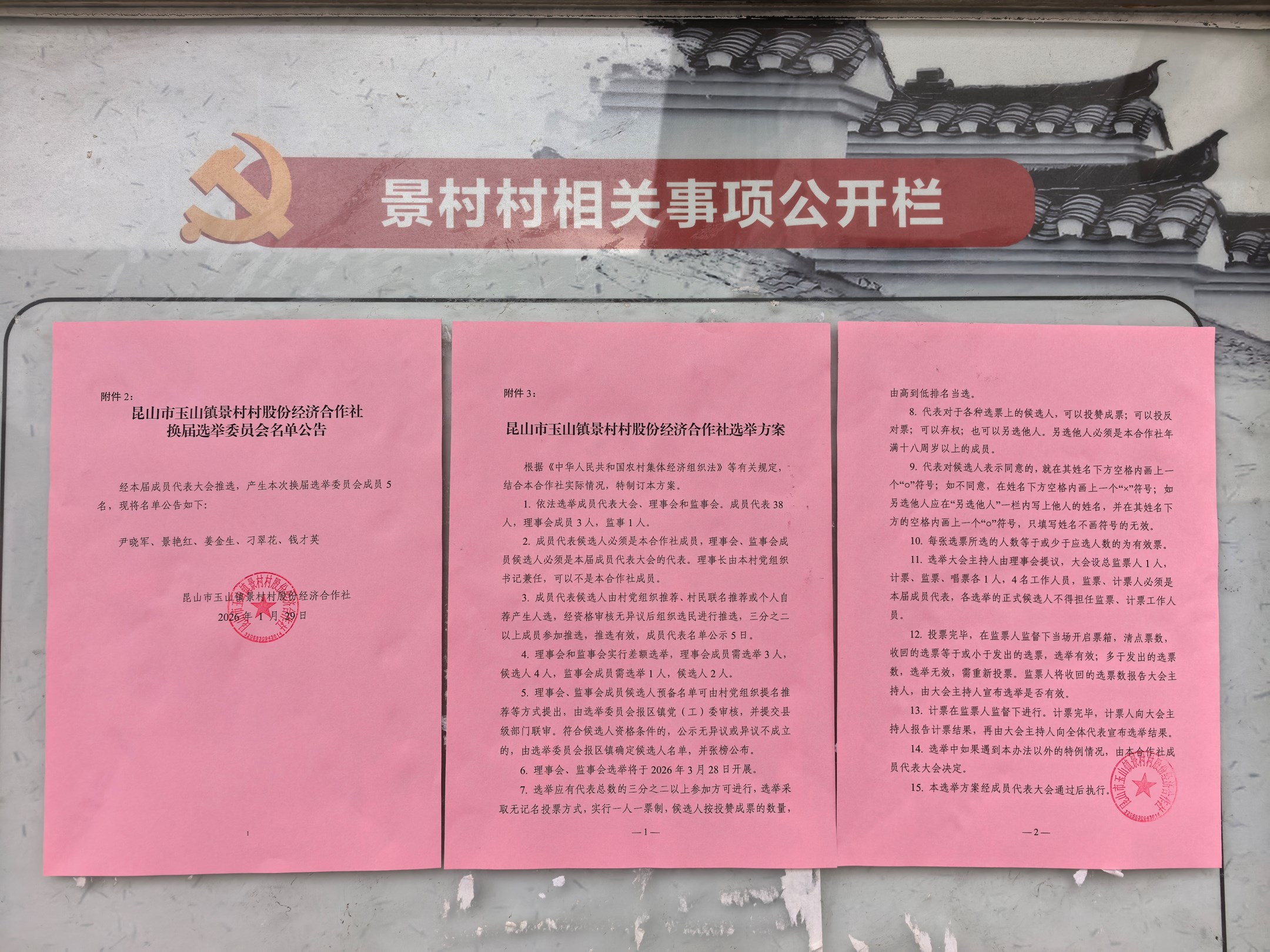 景村村股份经济合作社选举委员会名单、选举方案公告: