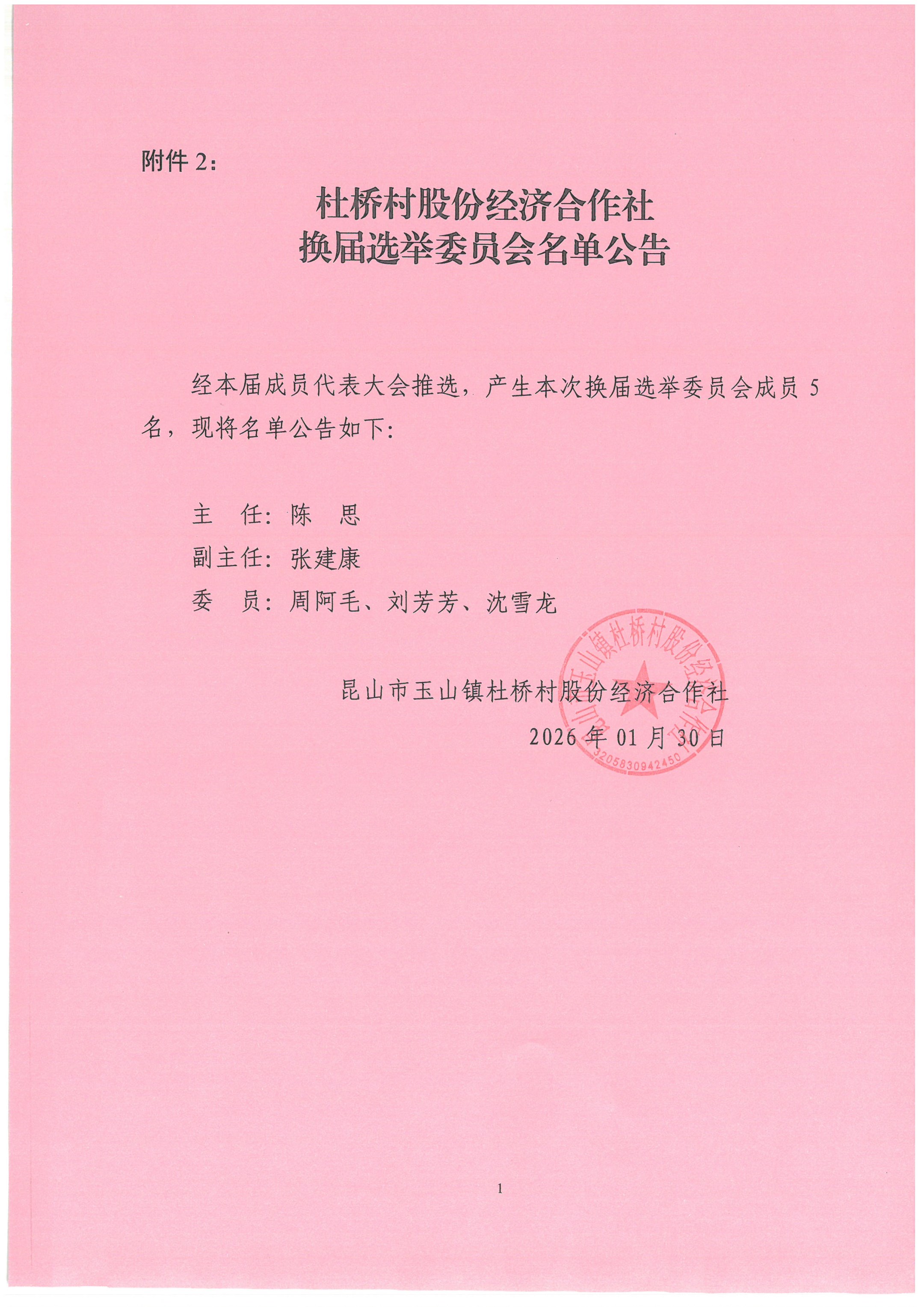 杜桥村股份经济合作社选举委员会名单、选举方案公告