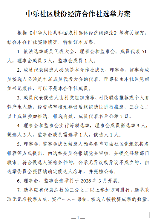 中乐社区股份经济合作社选举方案