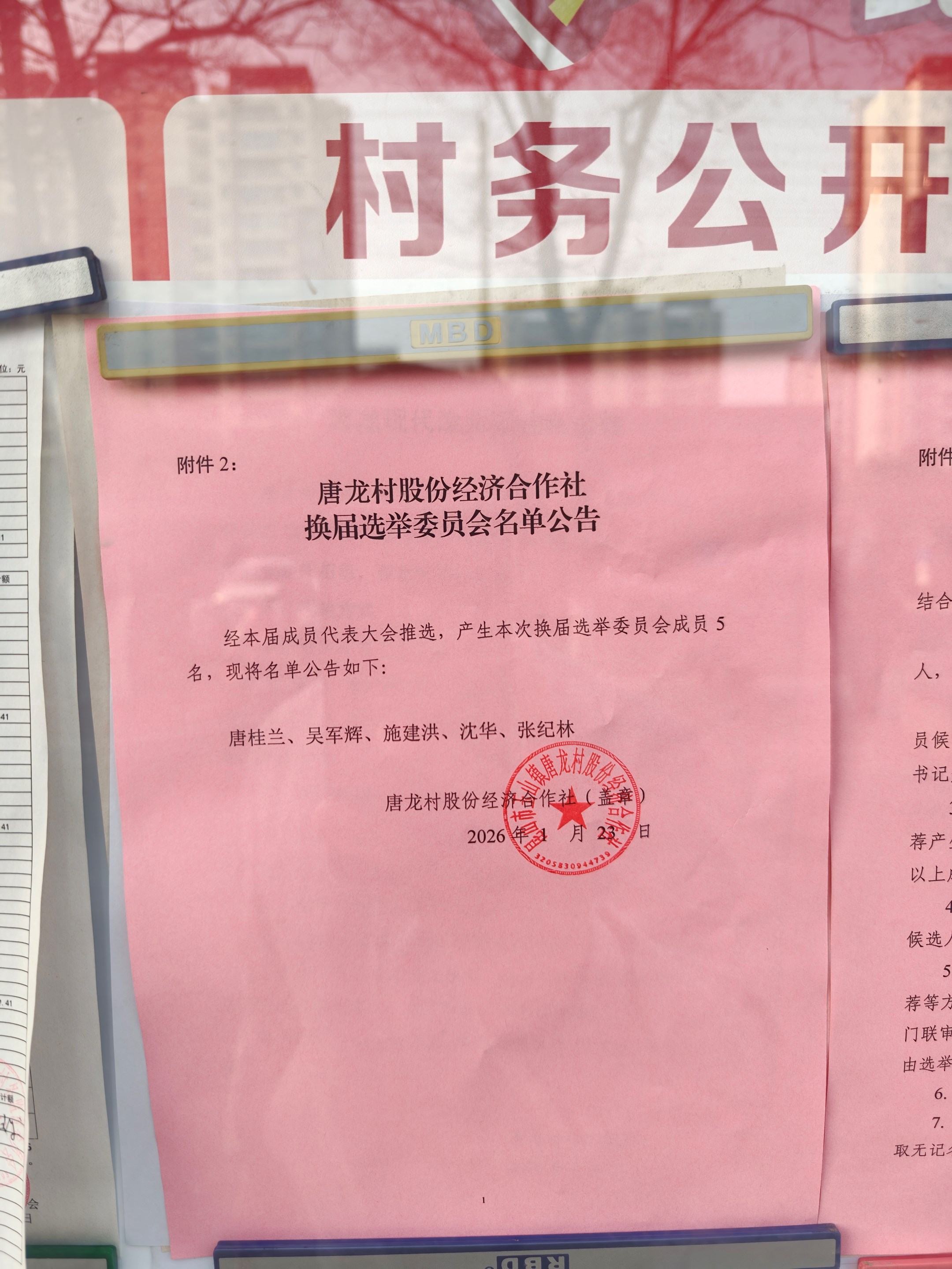 2026年唐龙村股份经济合作社换届选举委员会名单公告、选举方案