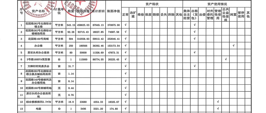 村盖章事项名录
