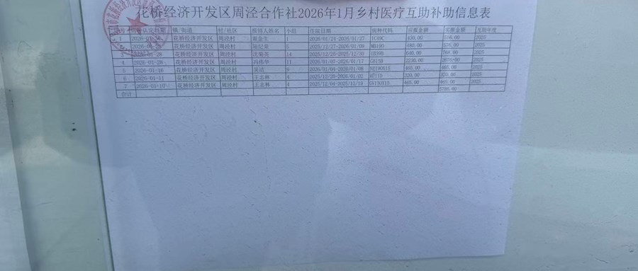 2026年周泾村股份经济合作社1月乡村医疗互助项目公示
