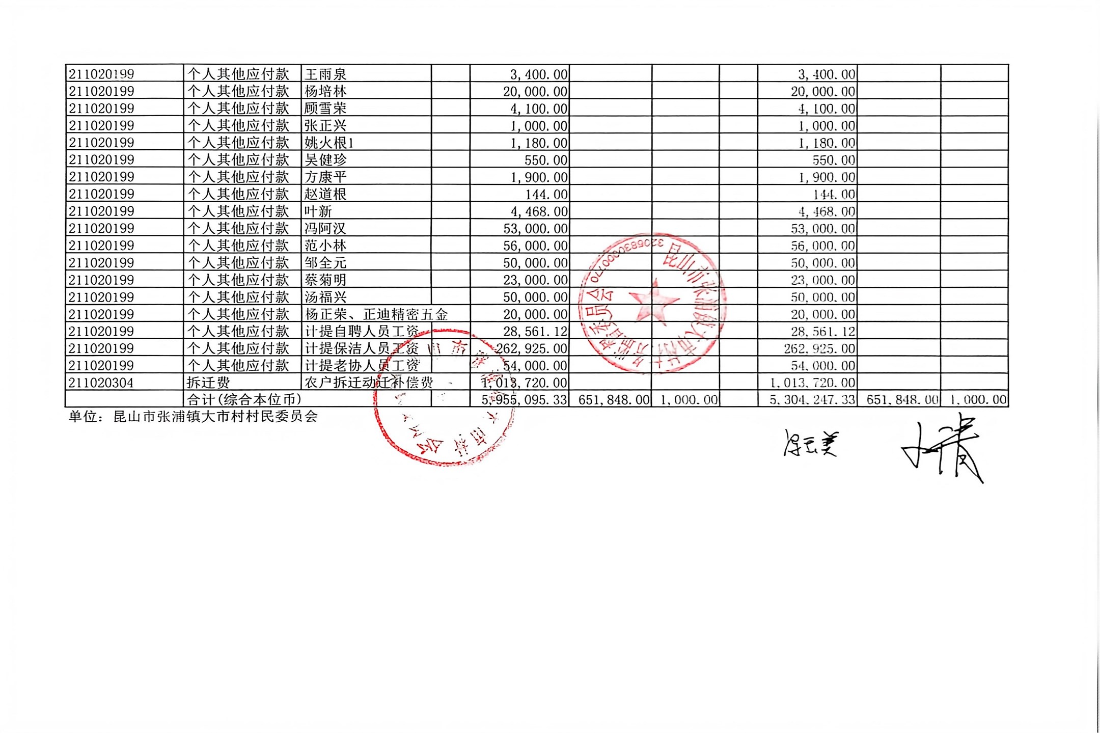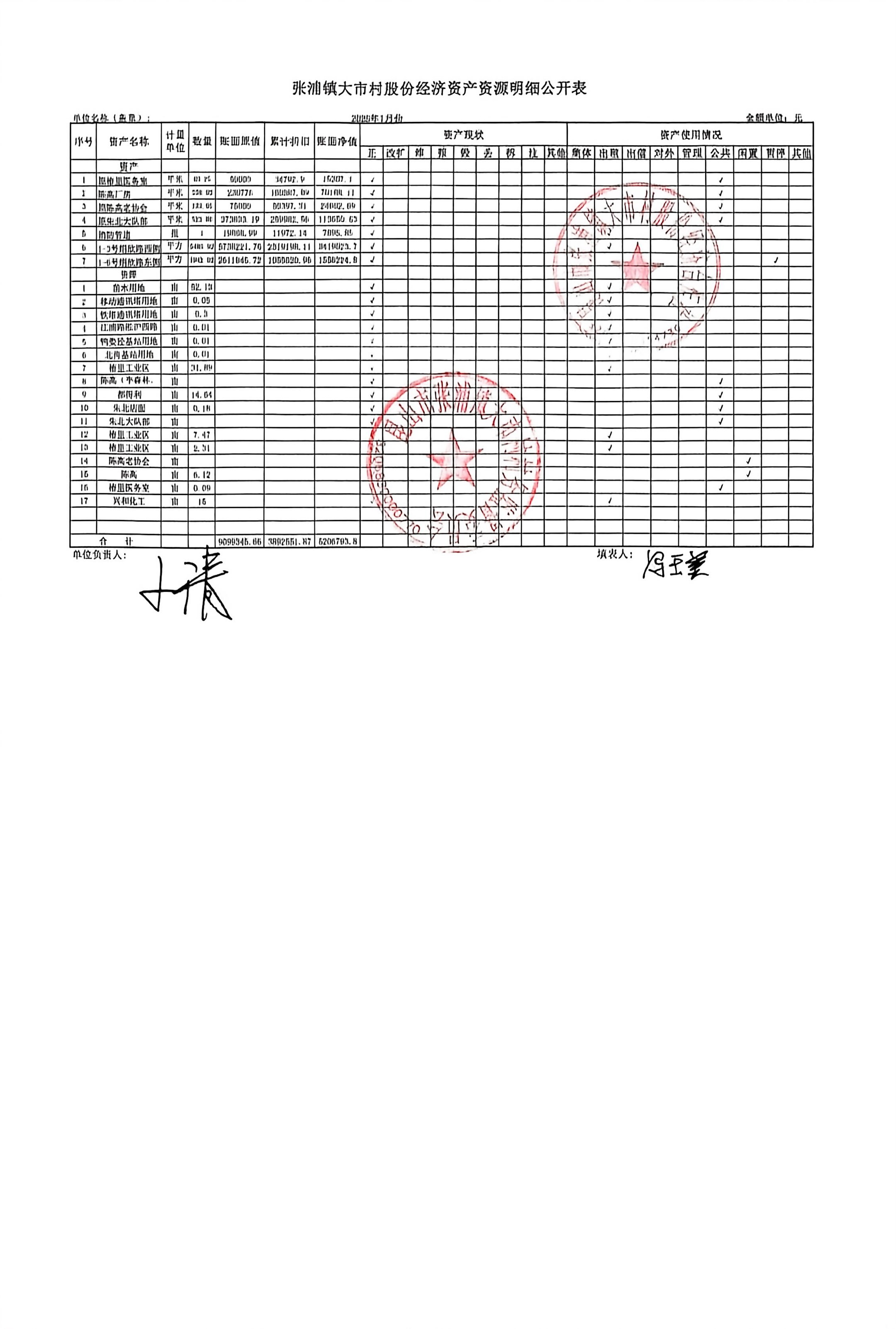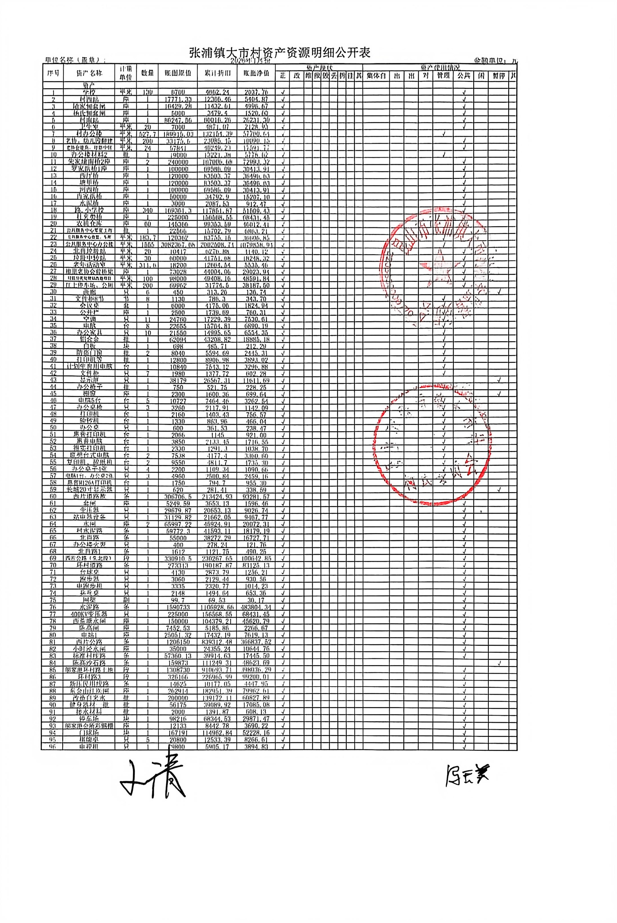 村盖章事项名录