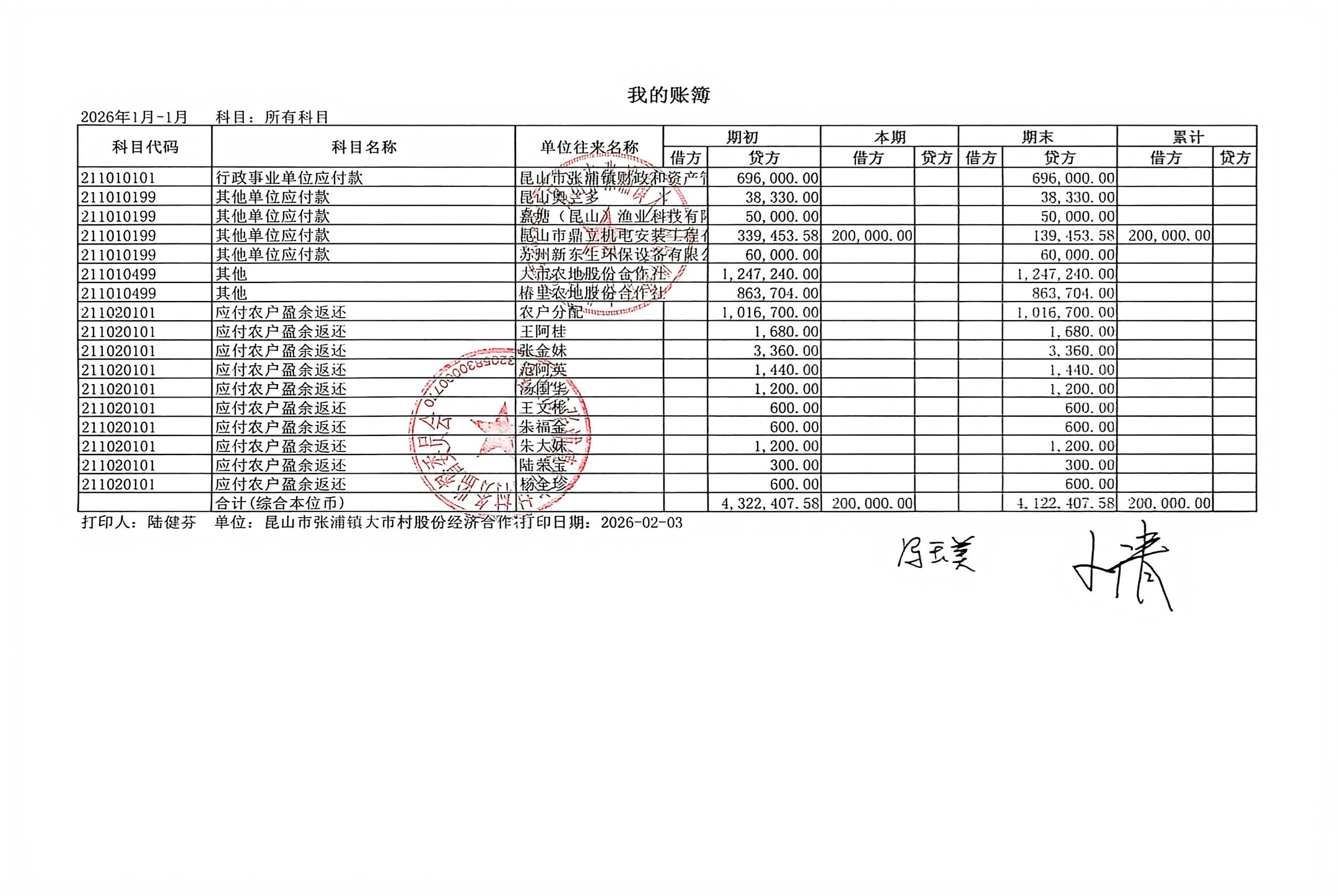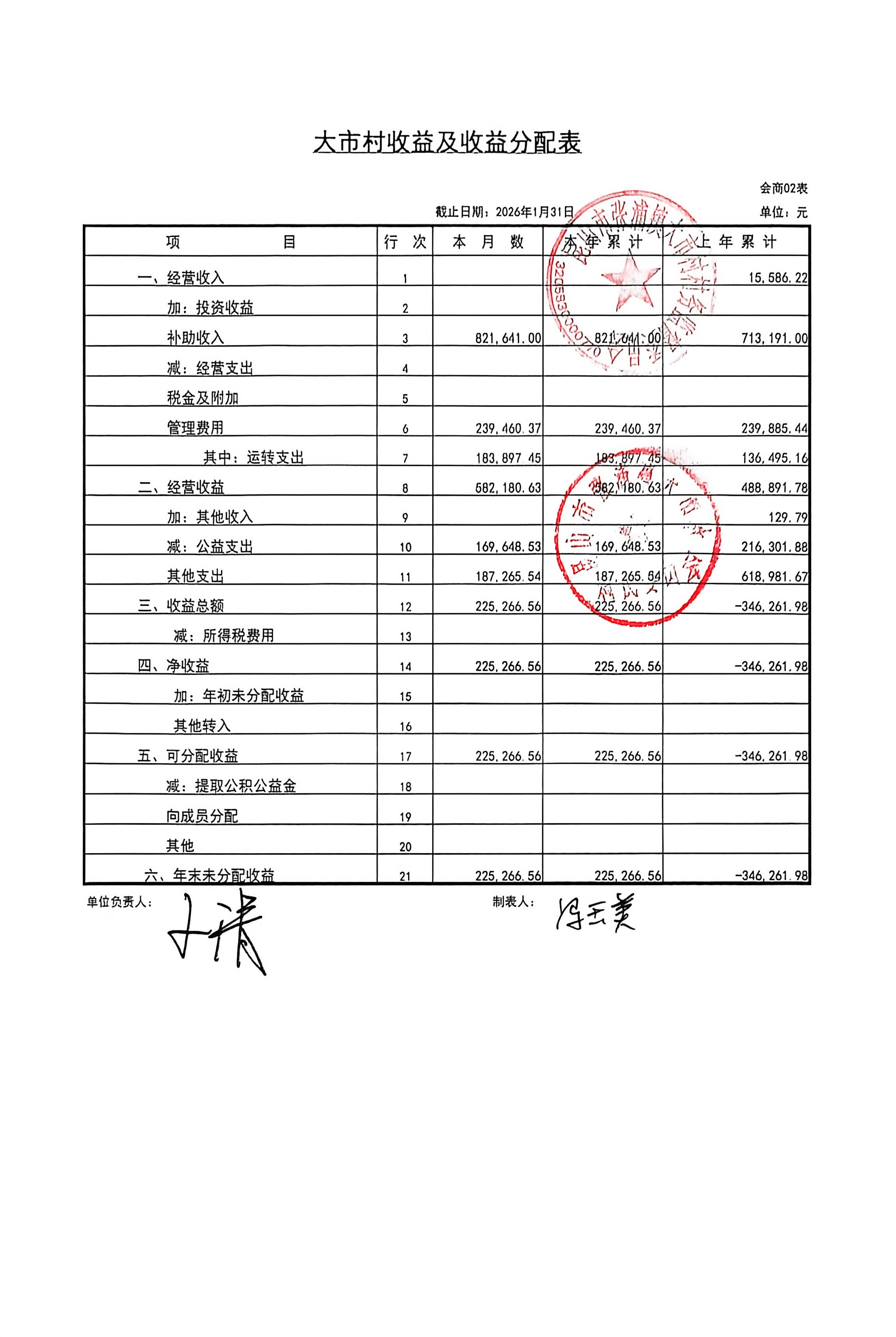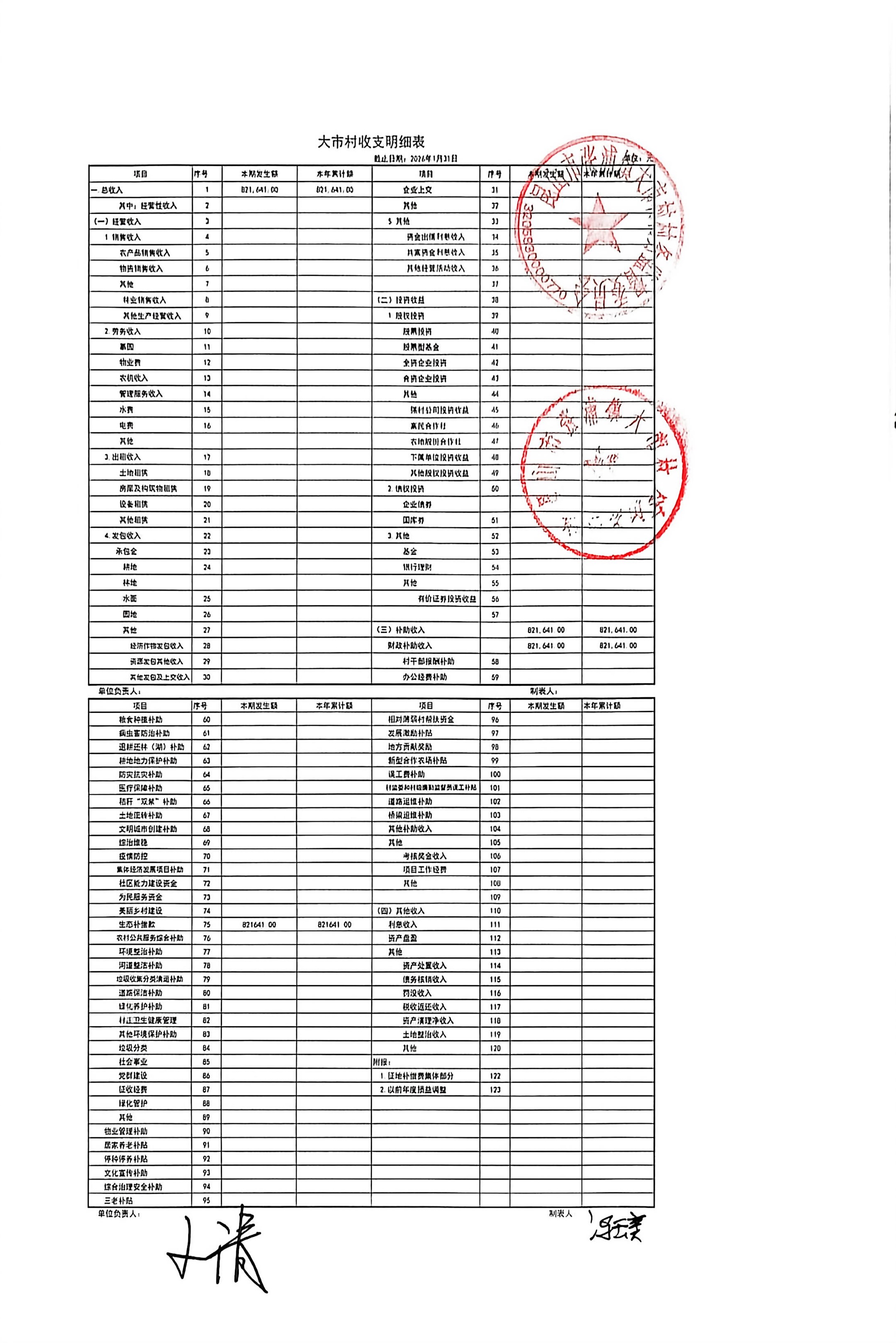 2026年1月财务公开