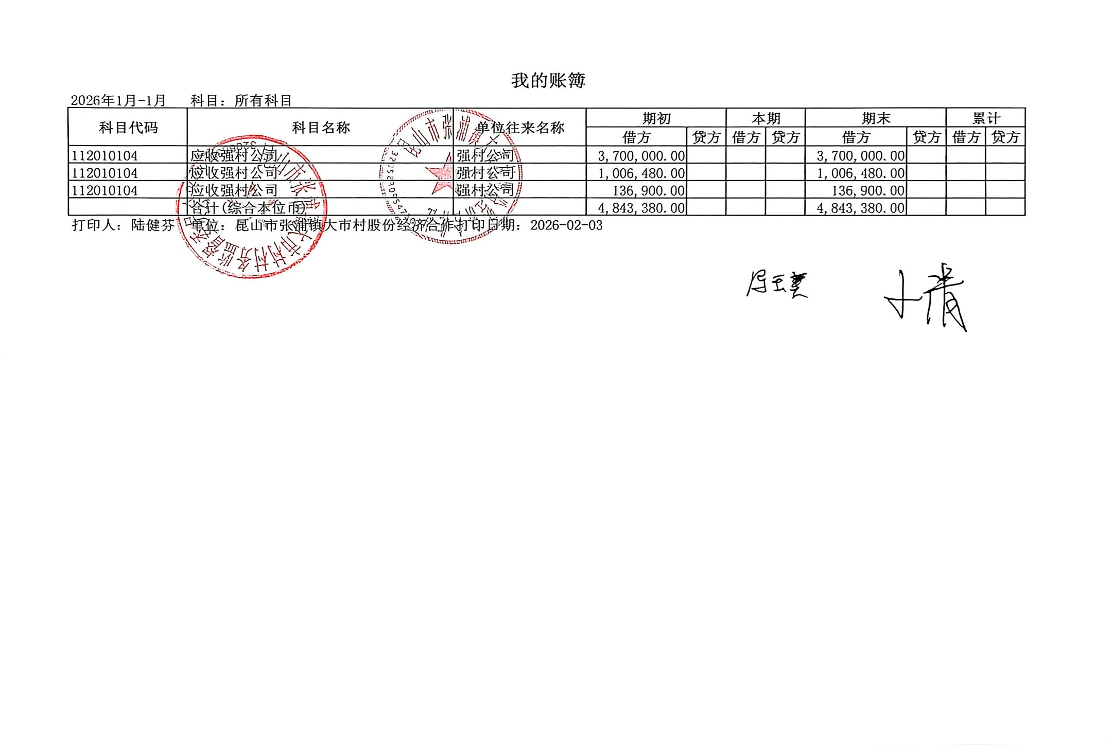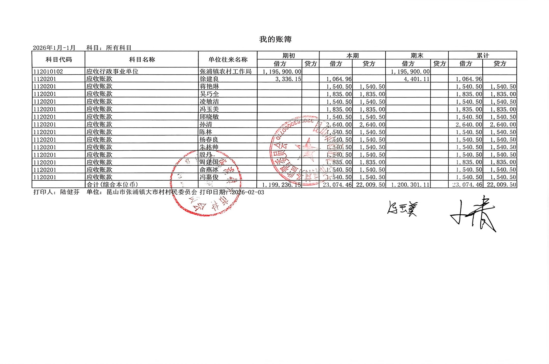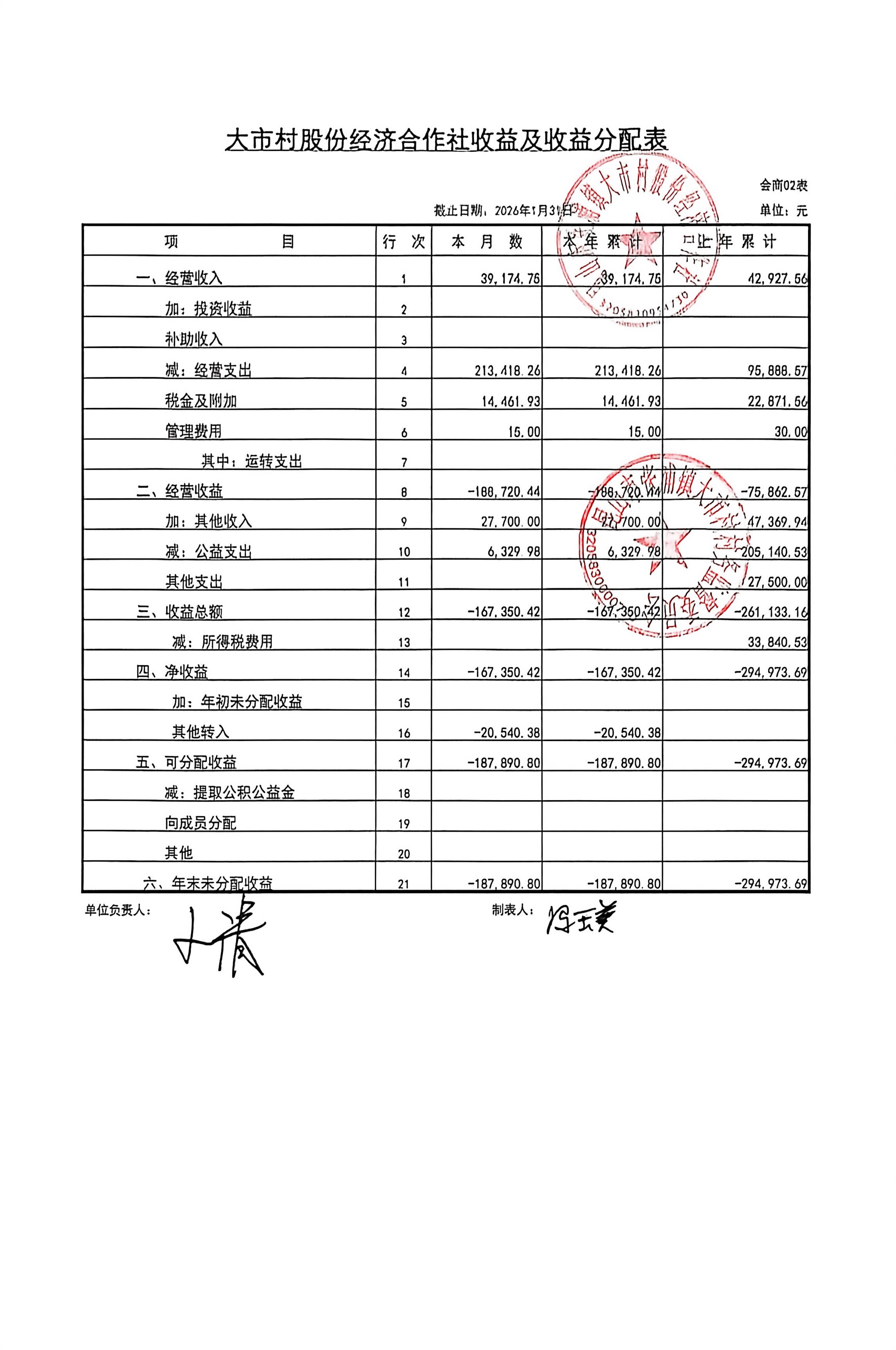 2026年1月财务公开