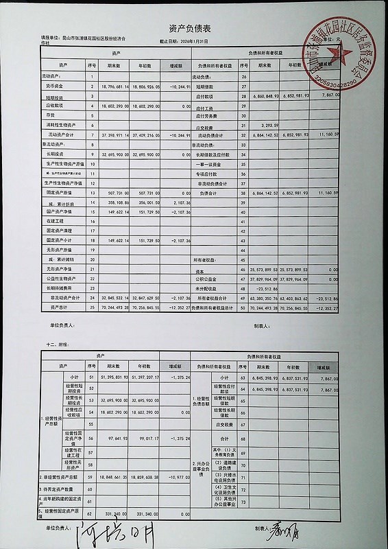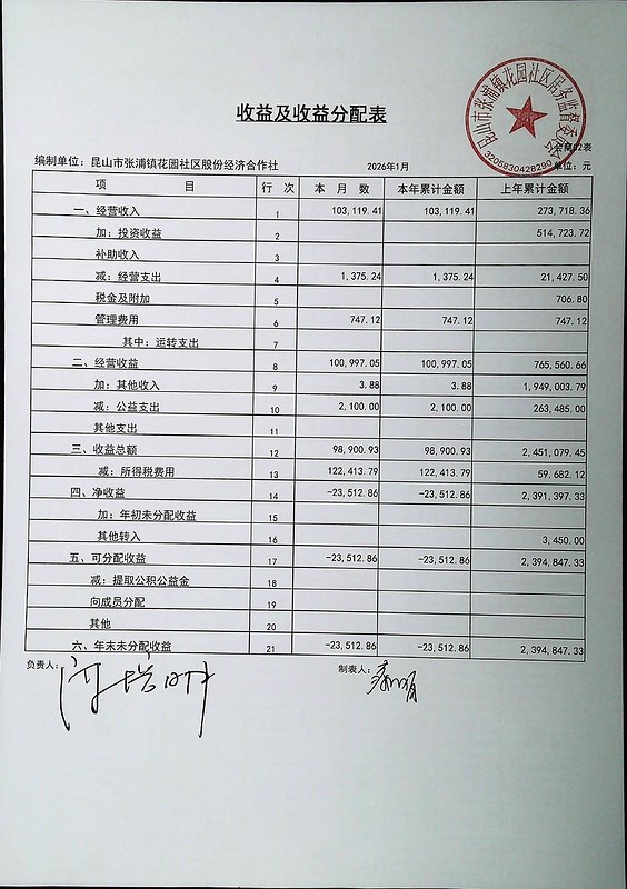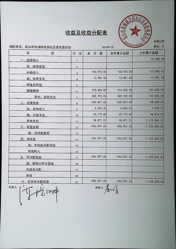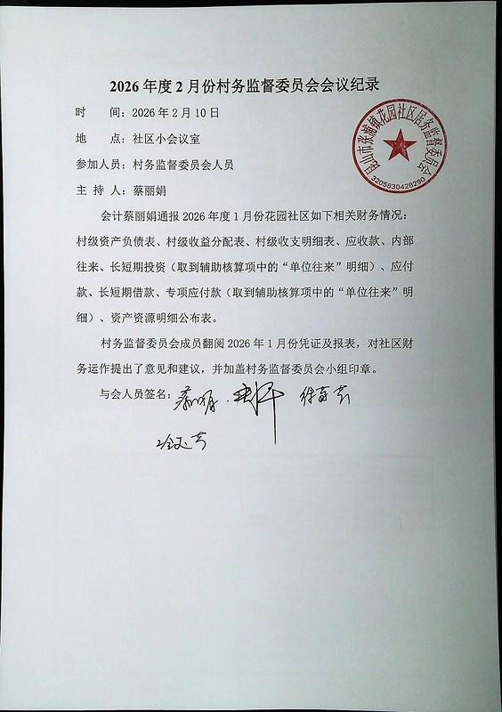 2026年2月份财务公开
