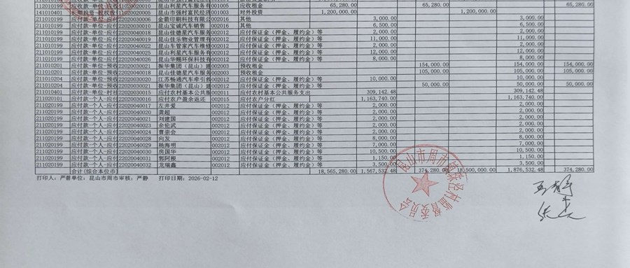 2026年2月珠泾村股份经济合作社财务公开(定期公开)