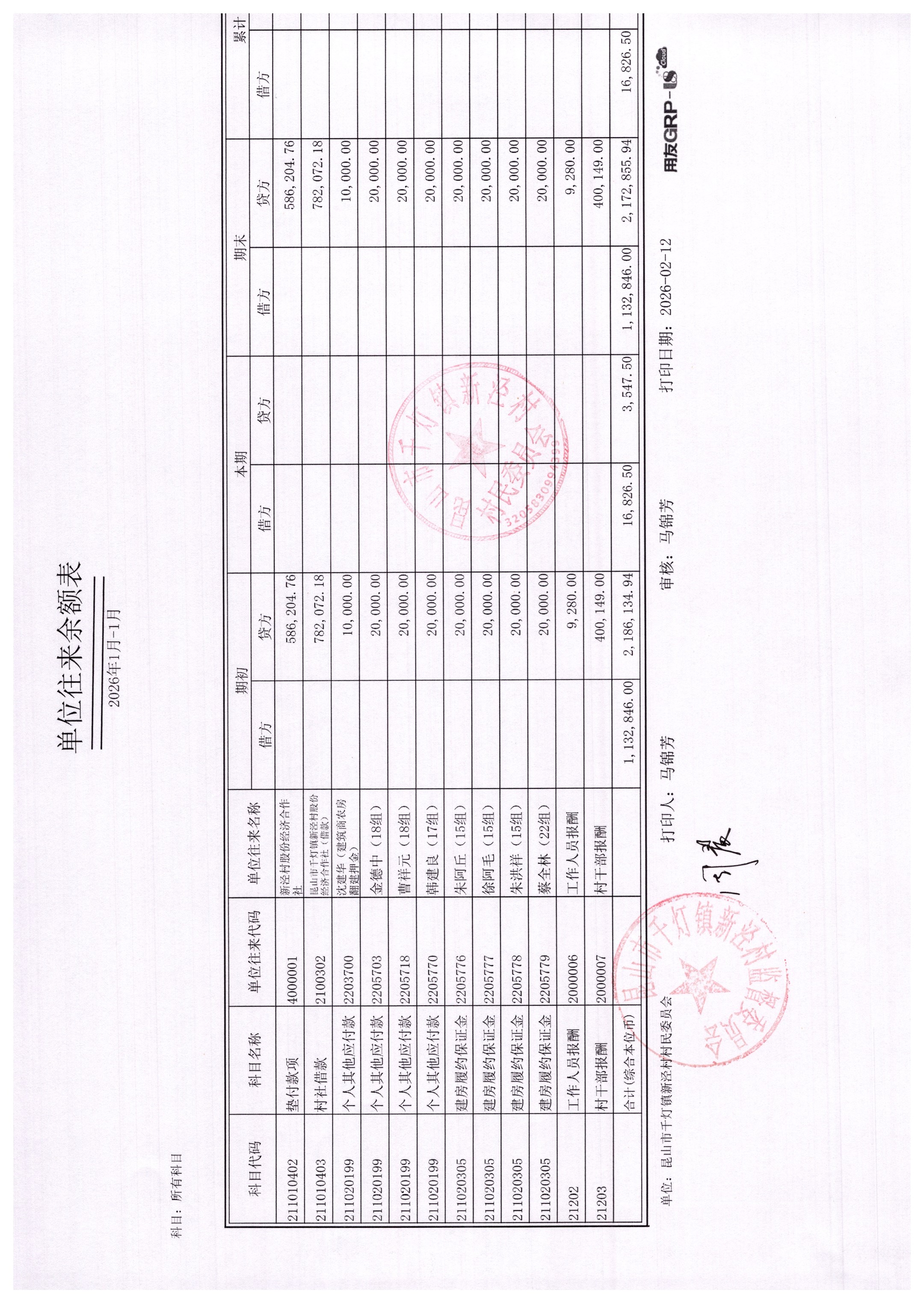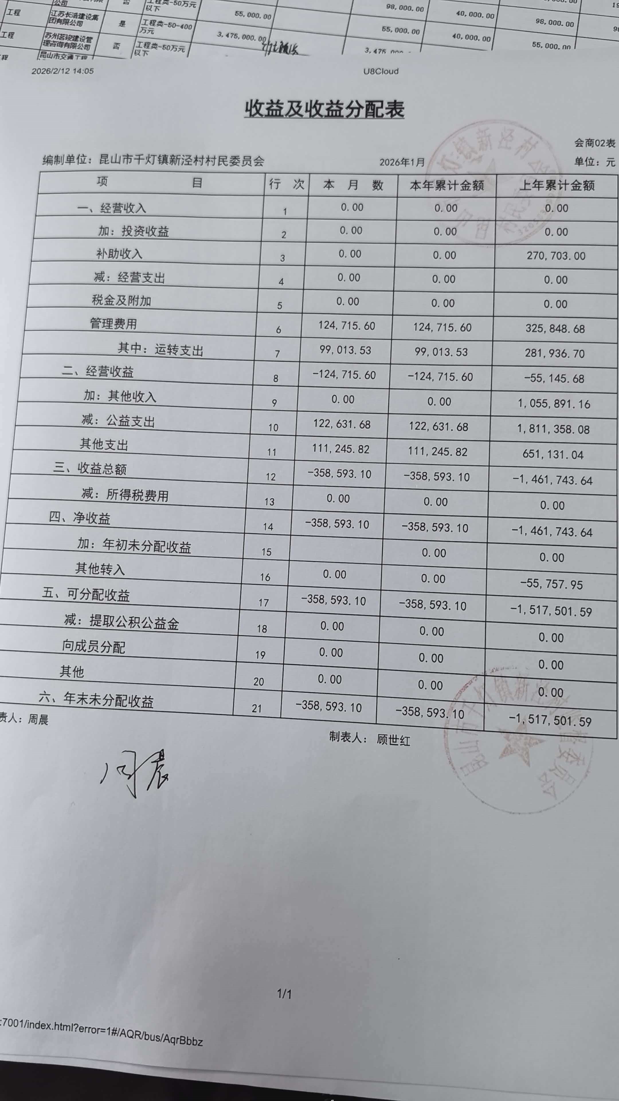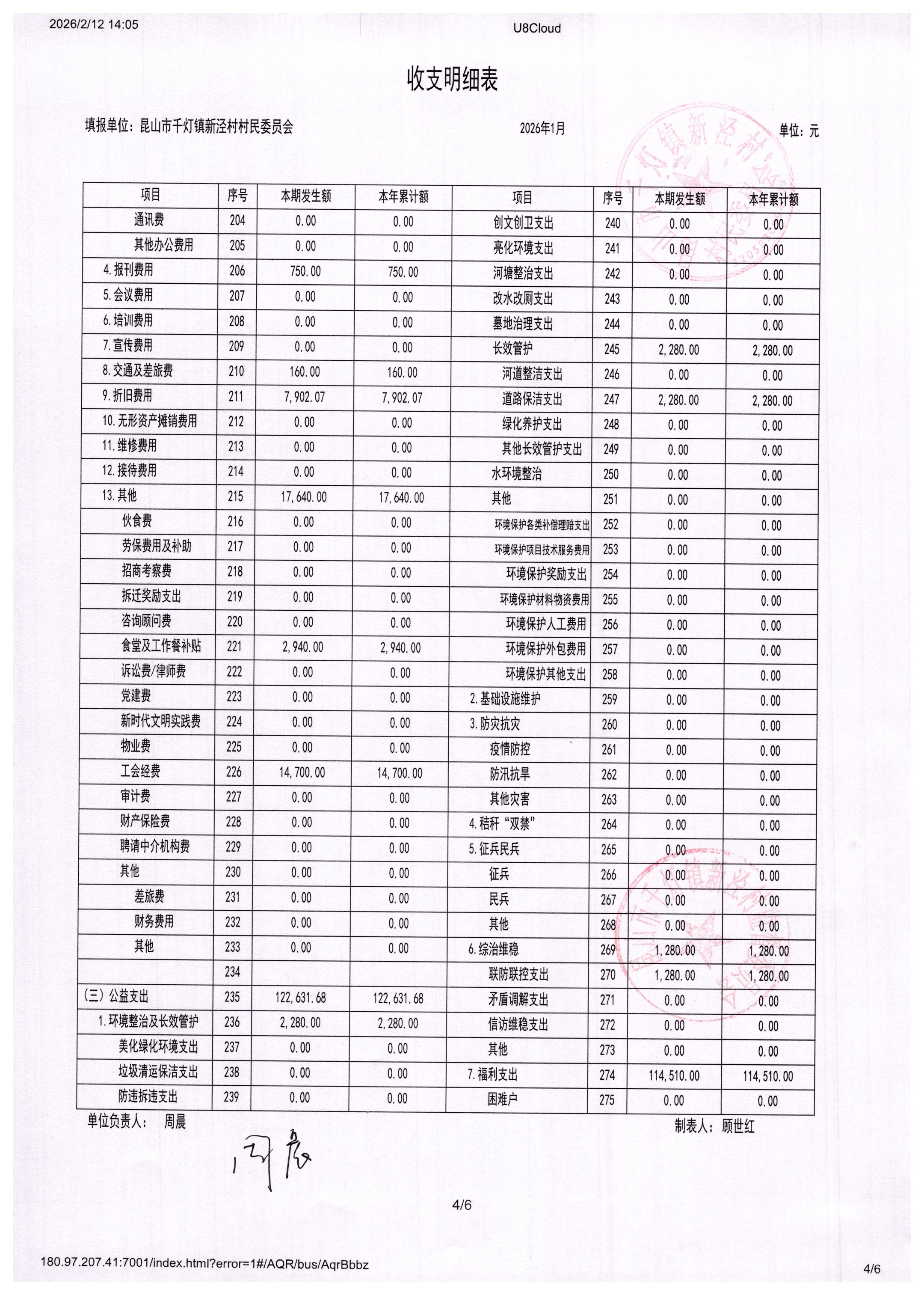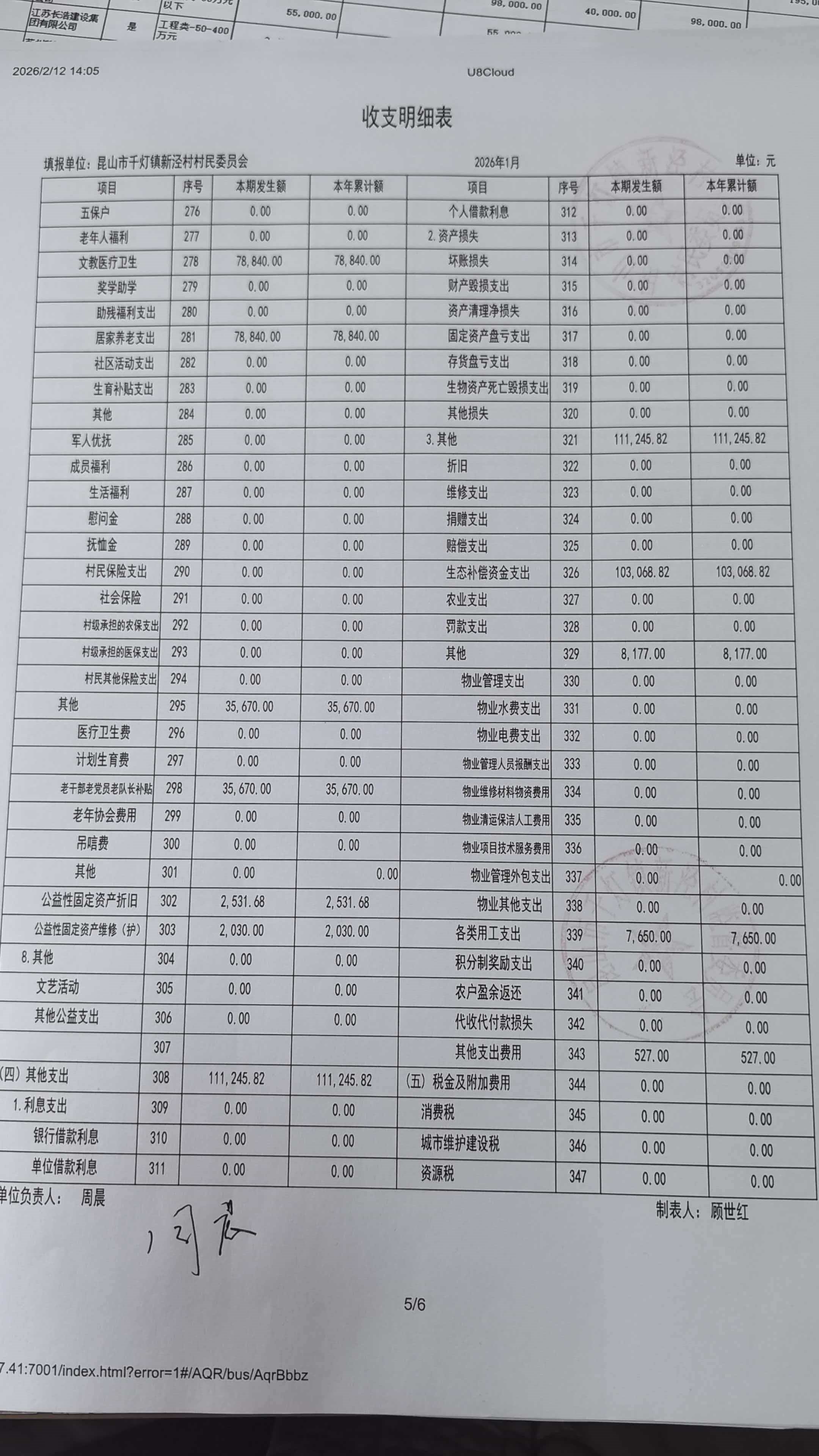 新泾村1月财务公开
