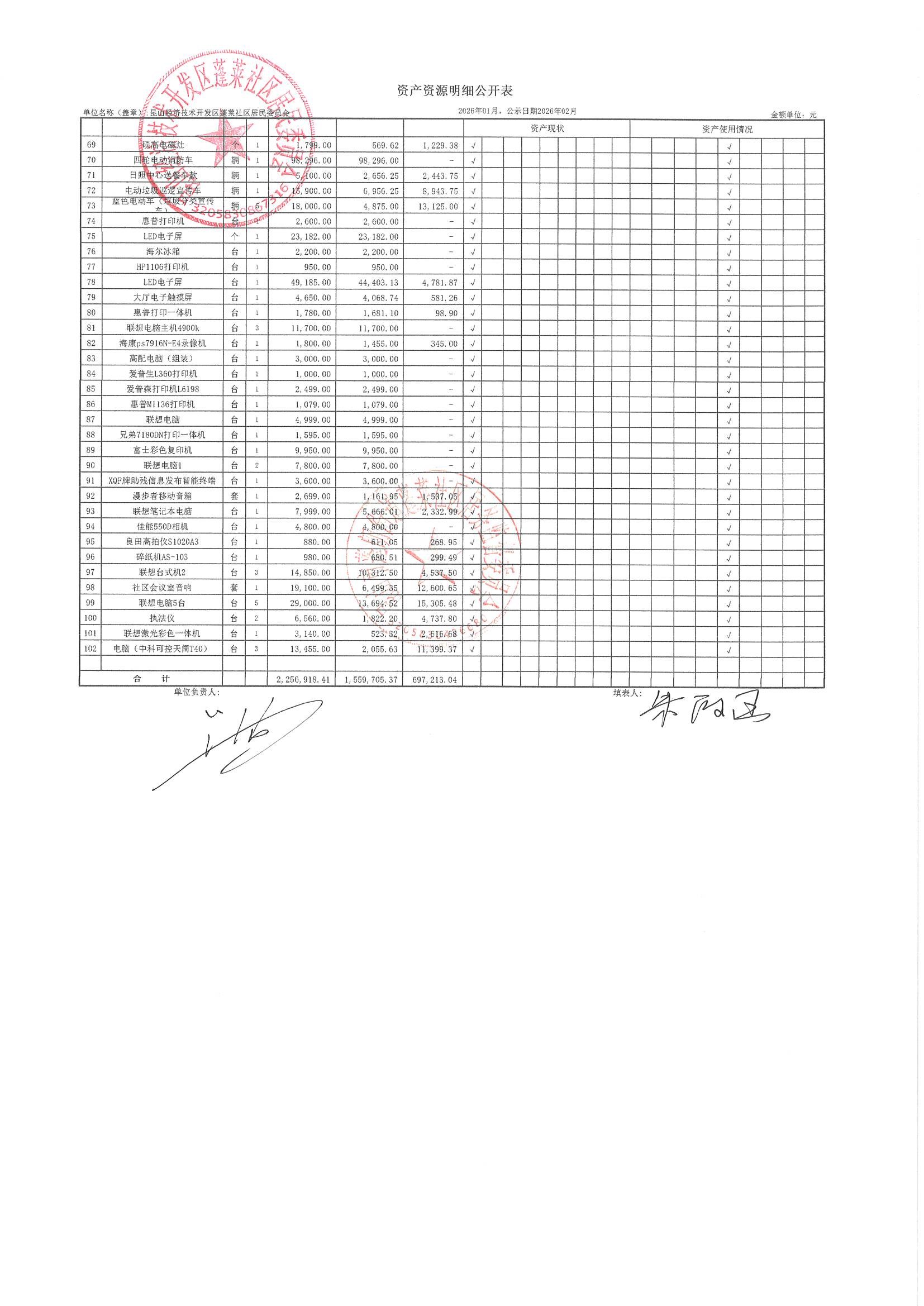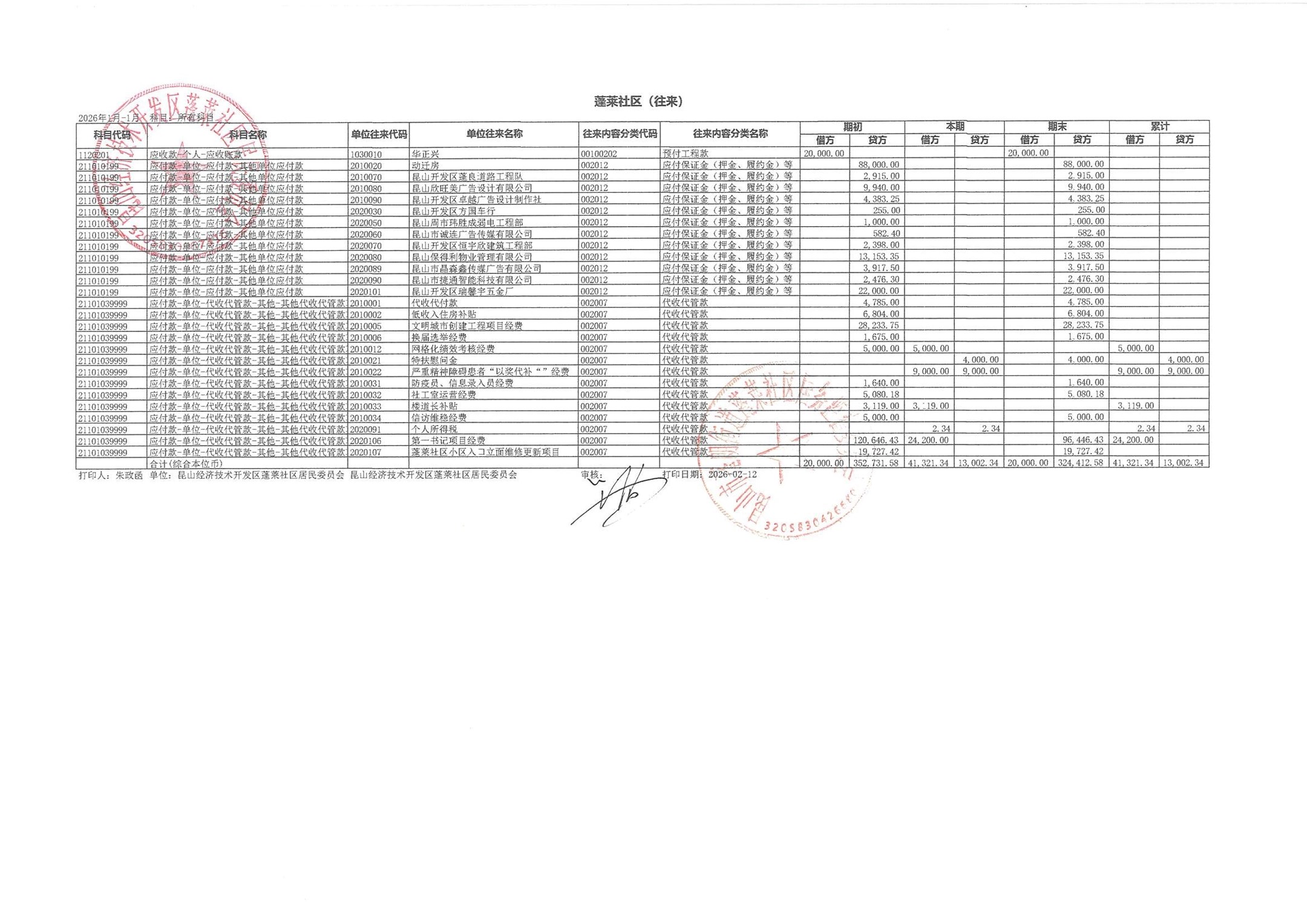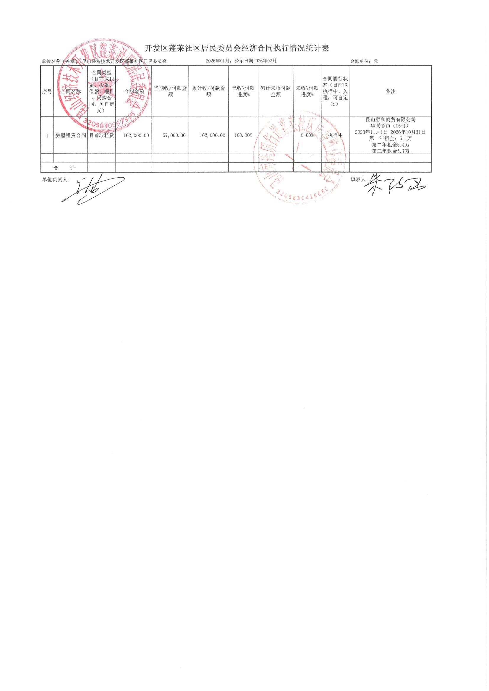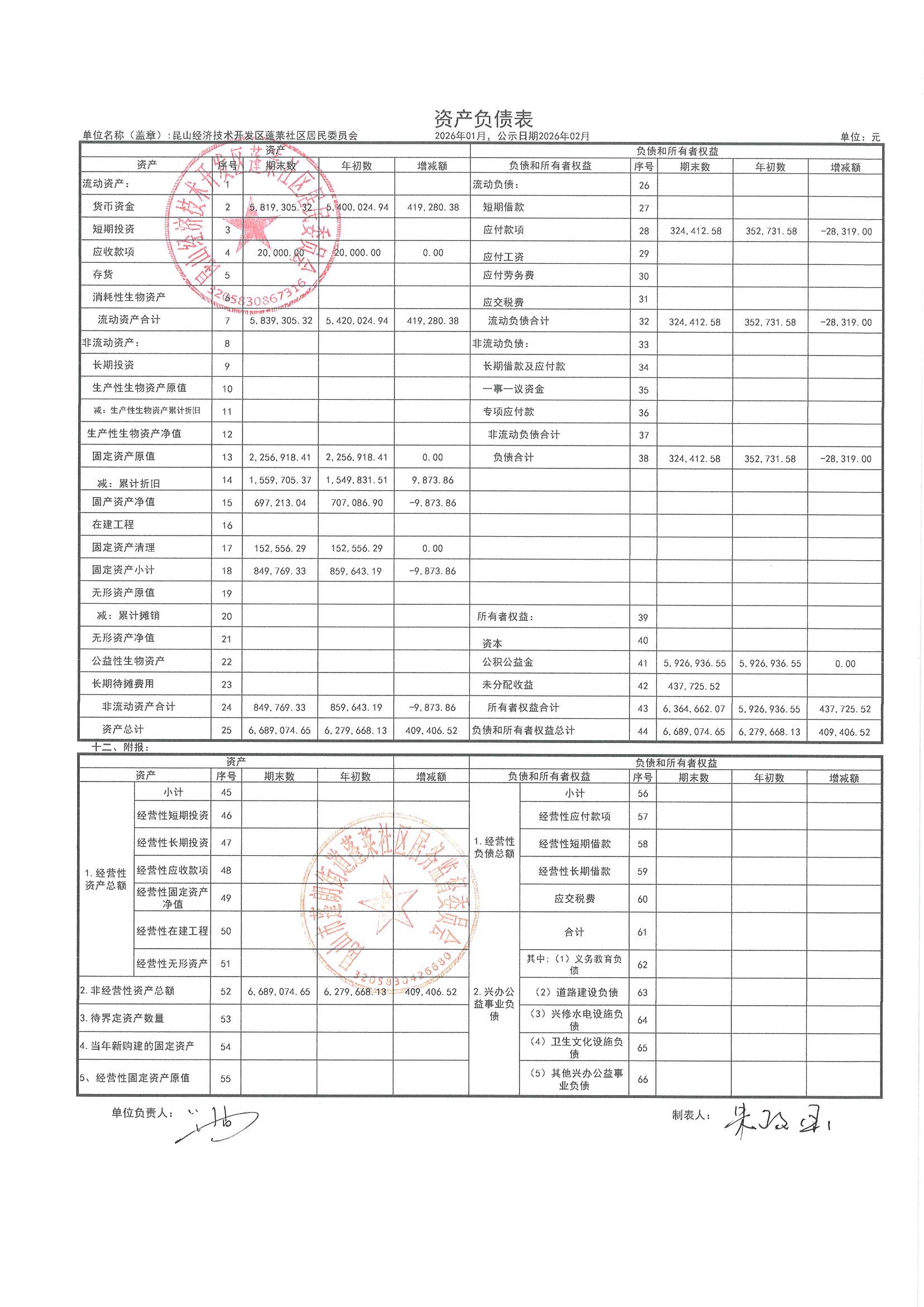 2026年1月财务公开(蓬莱社区居委会)