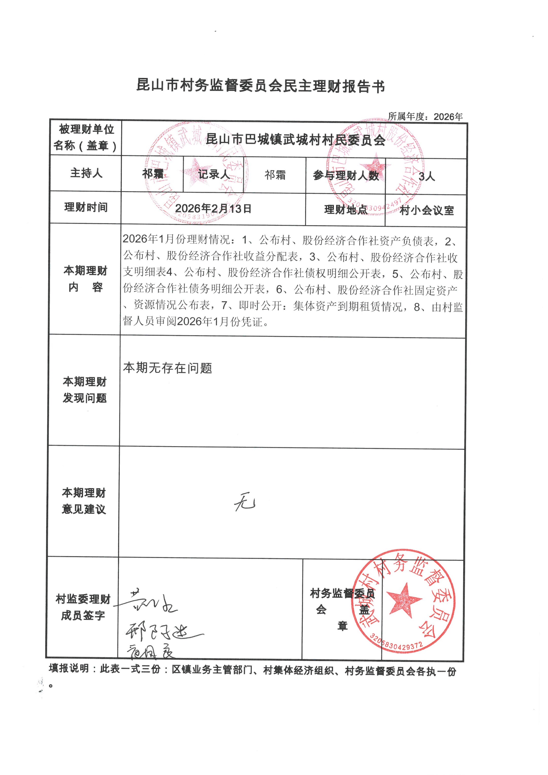 2026年1月股份经济合作社公开
