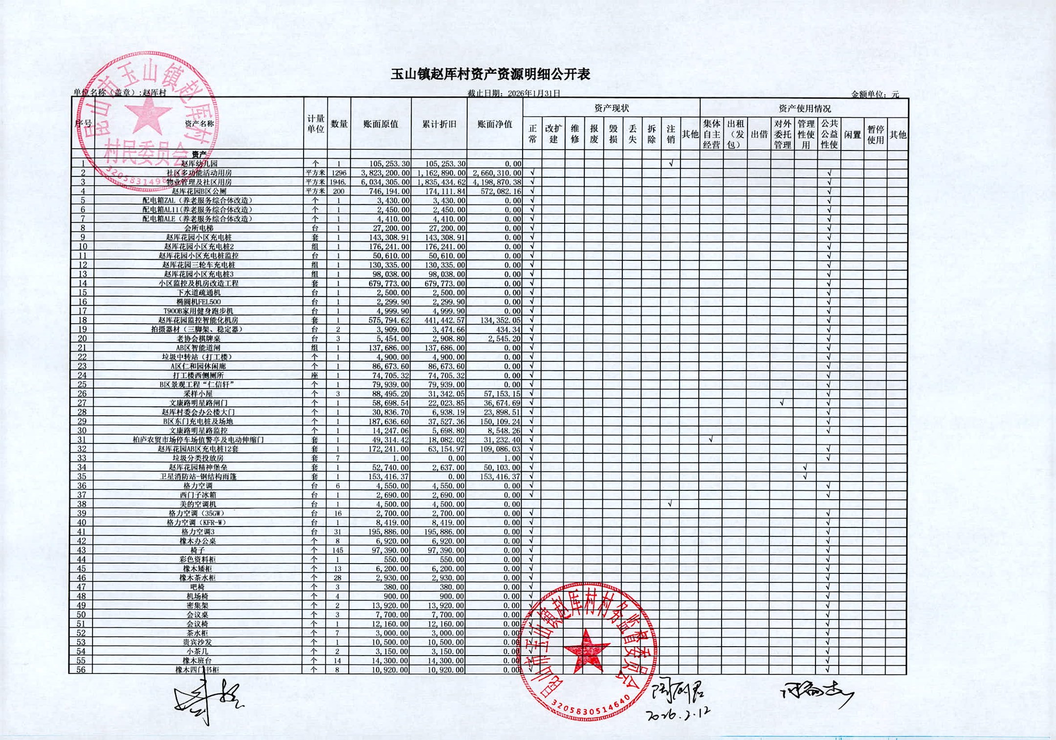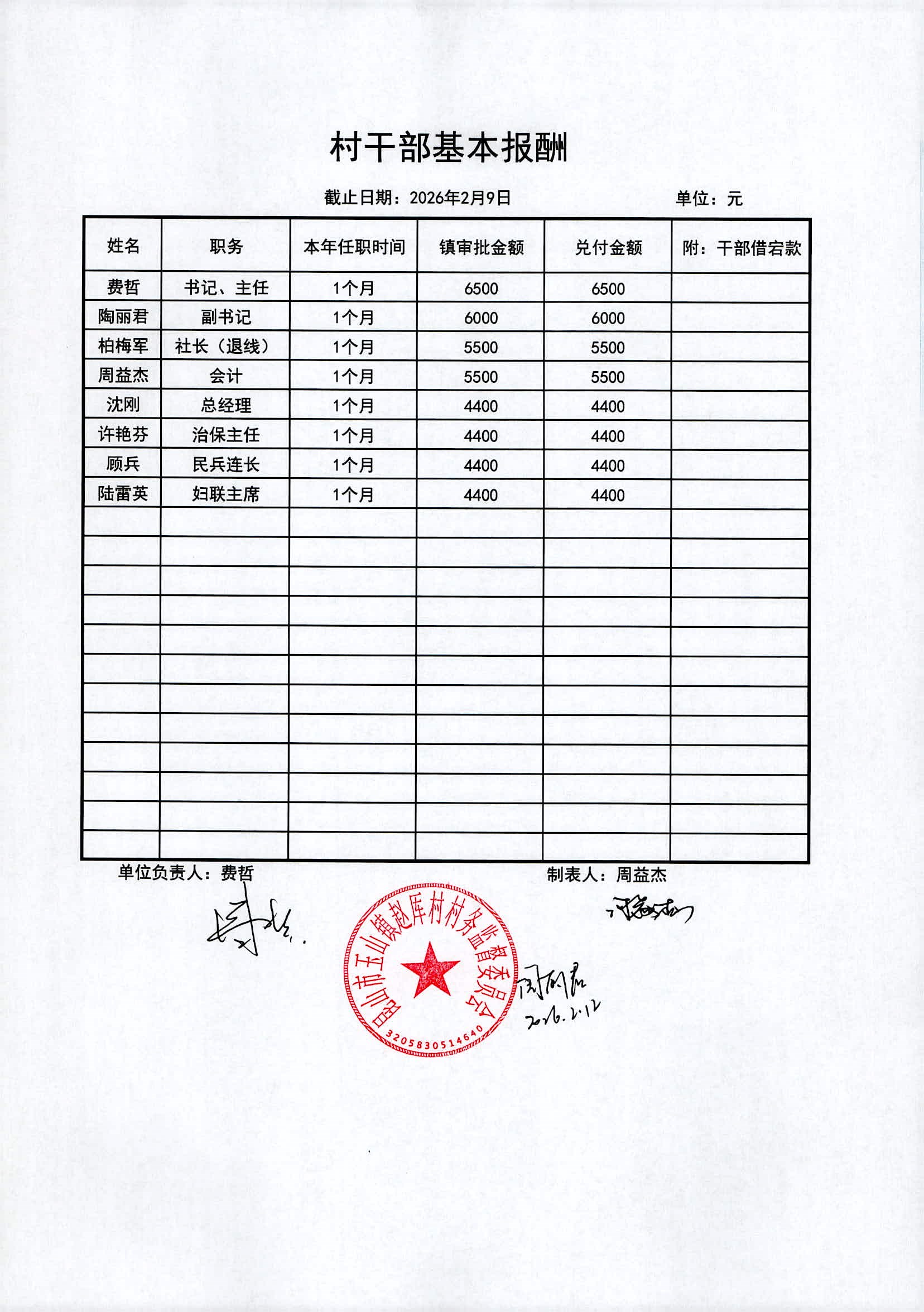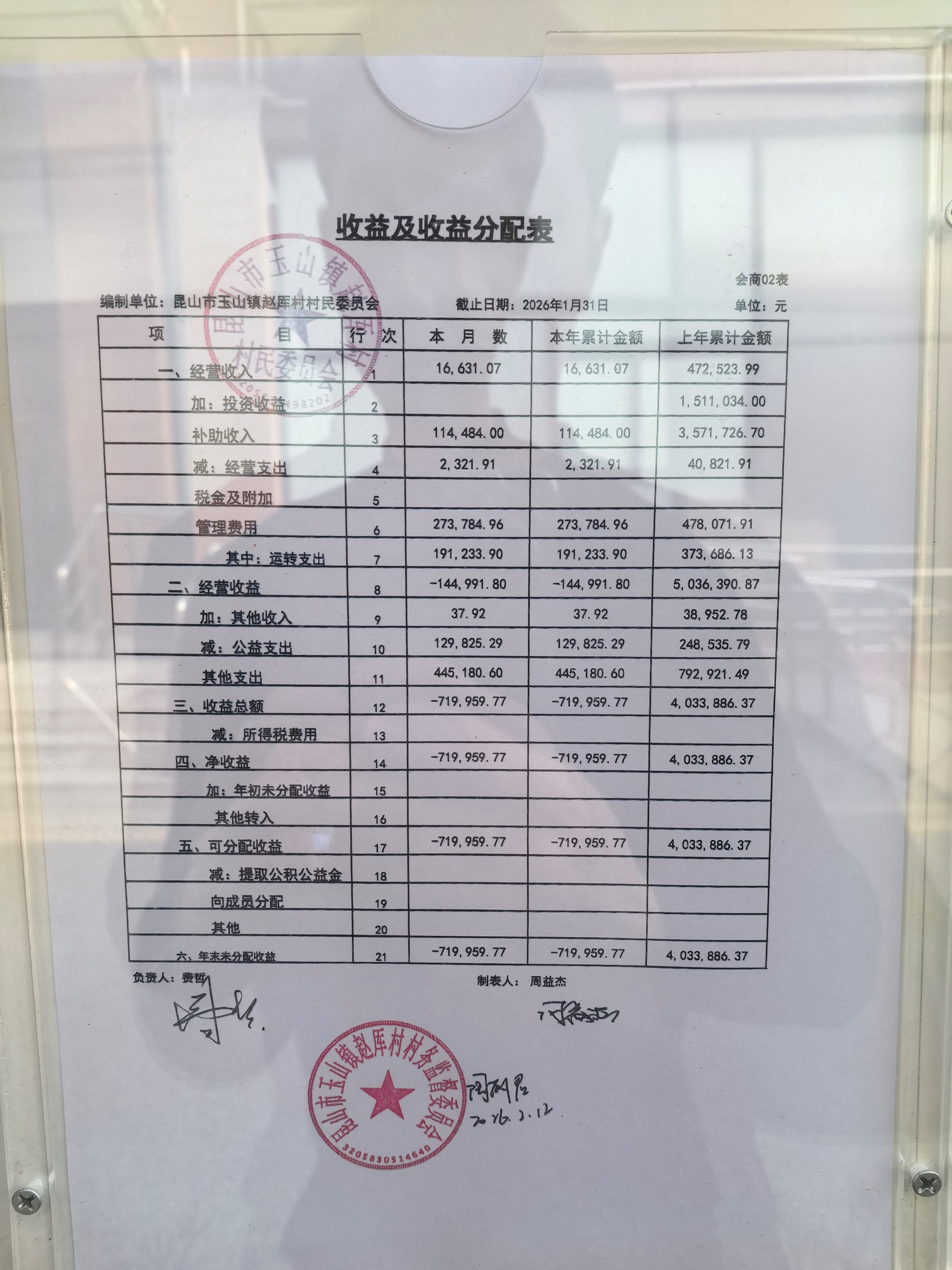2026年赵厍村村委会2月财务公开及公示照片