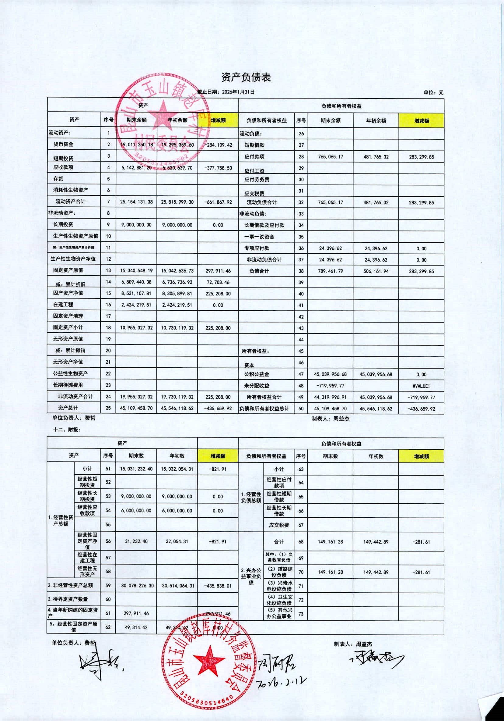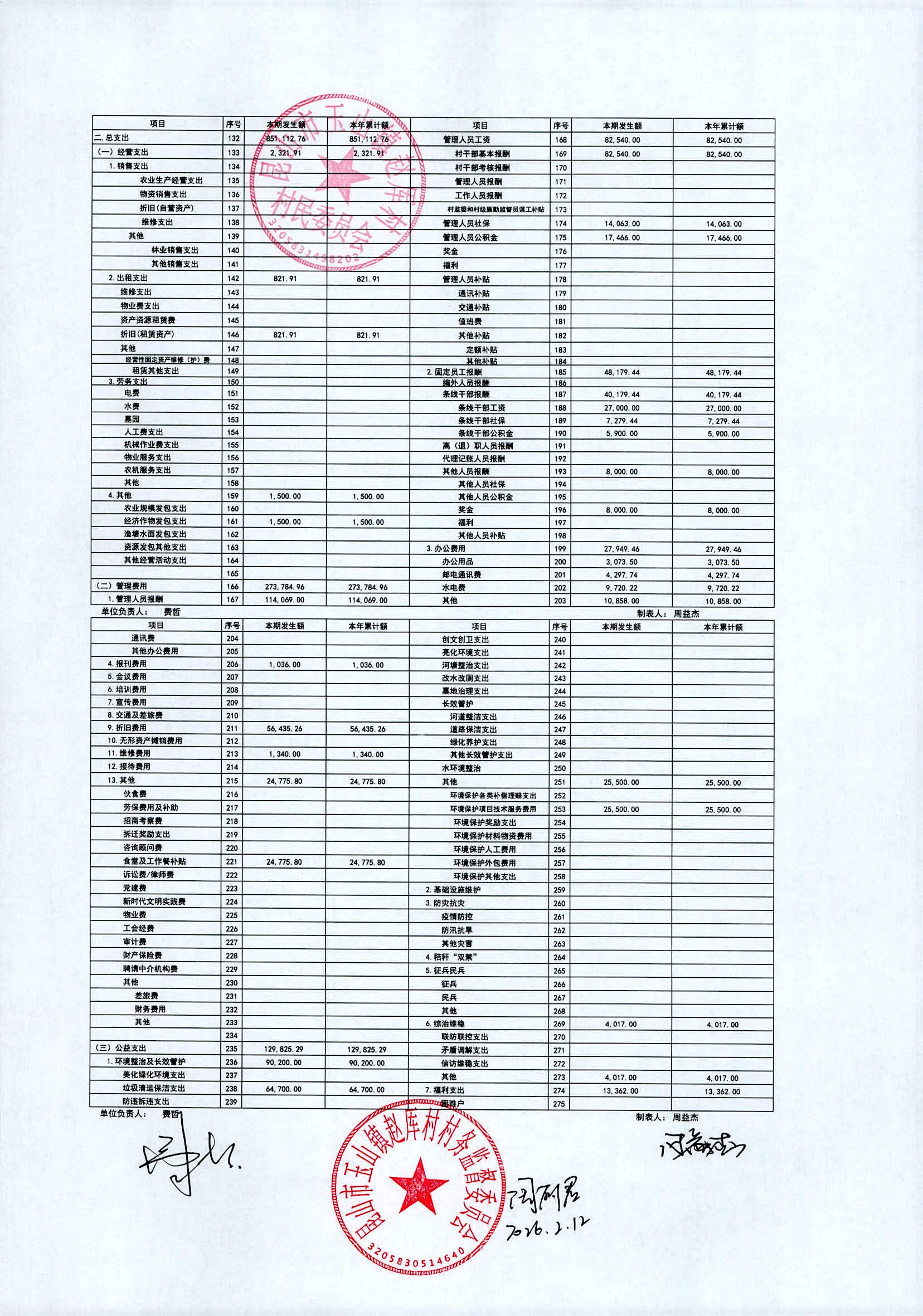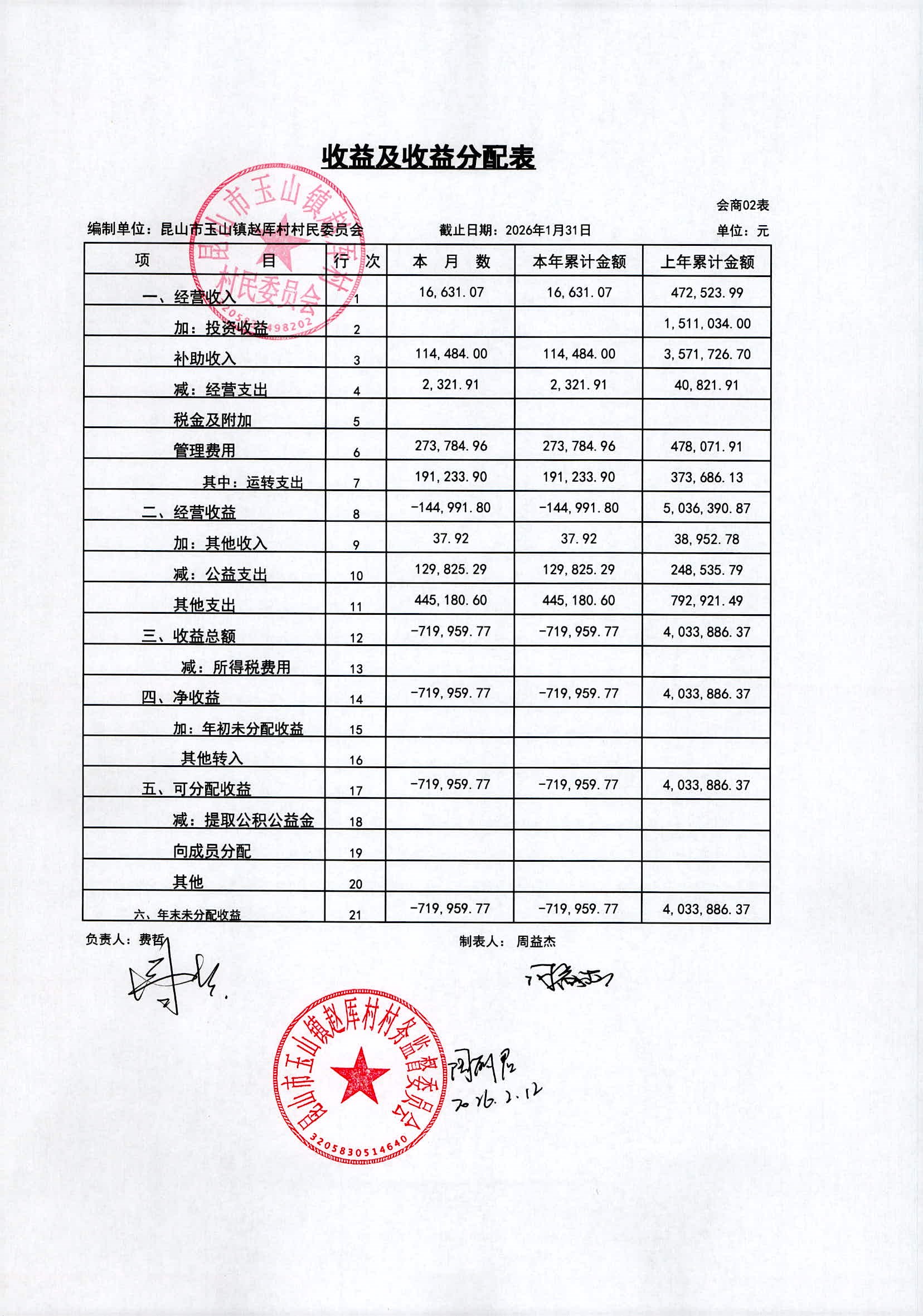 2026年赵厍村村委会2月财务公开及公示照片