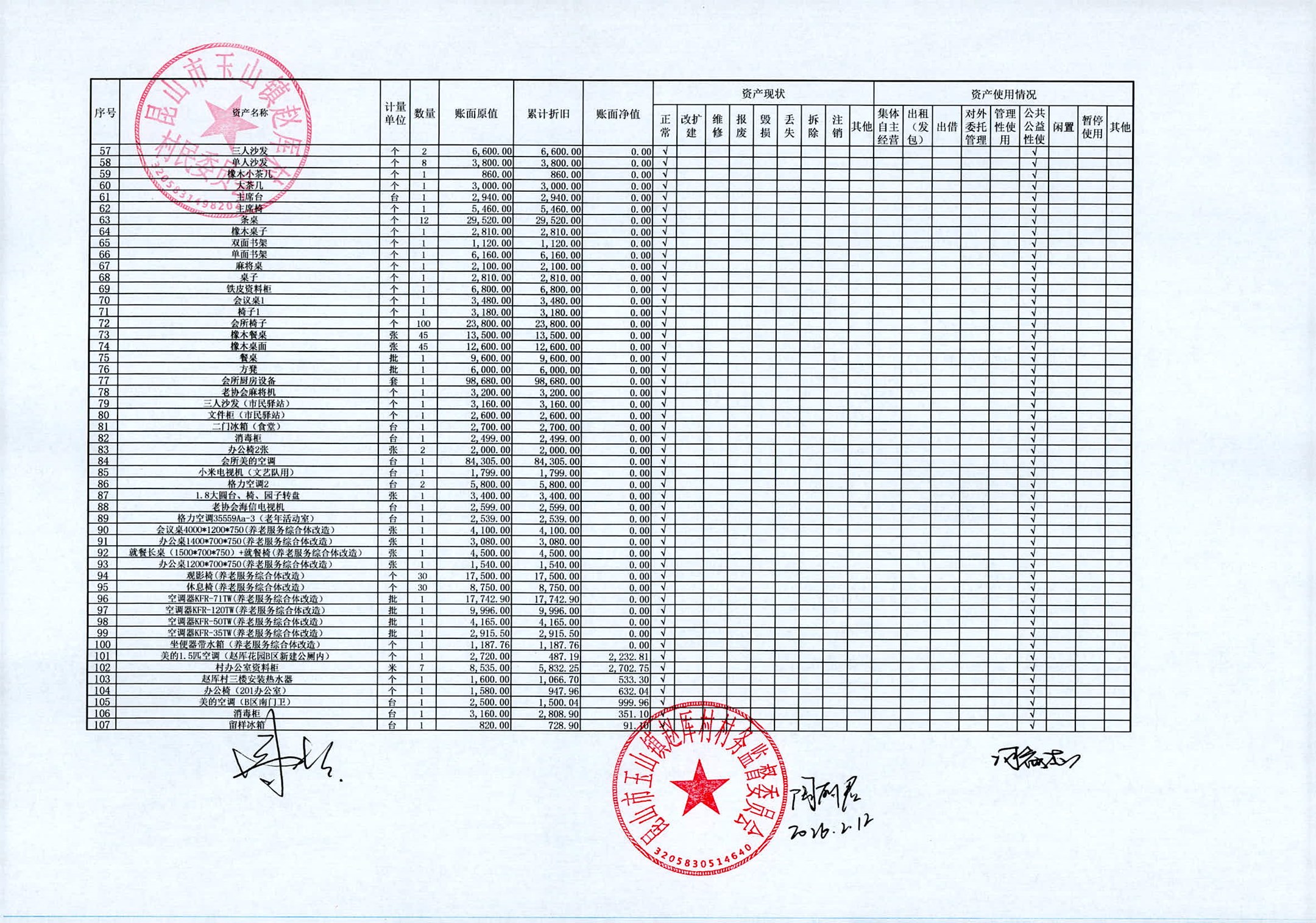 村盖章事项名录