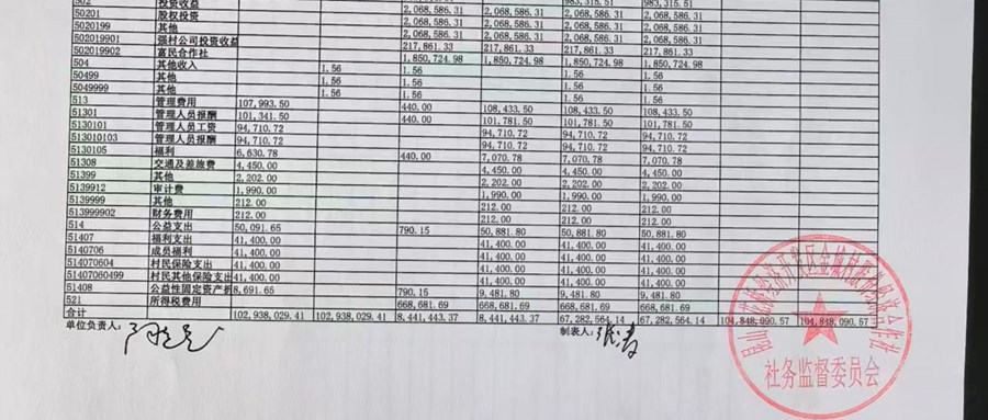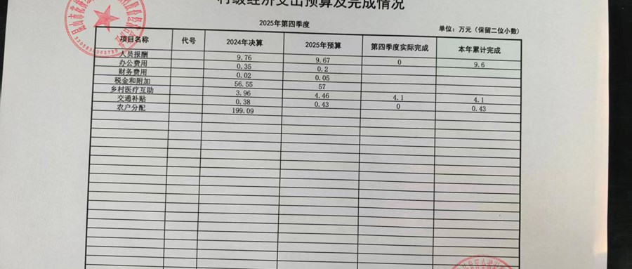 2025年金城村股份经济合作社4季度财务公示