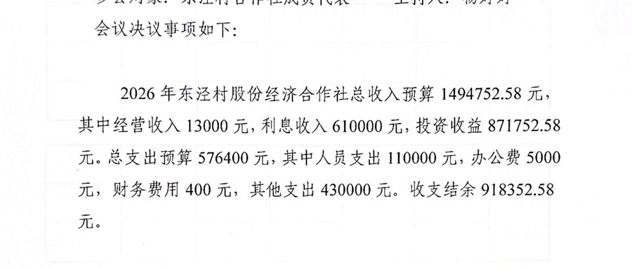 东泾村股份经济合作社2026年预算成员代表大会会议