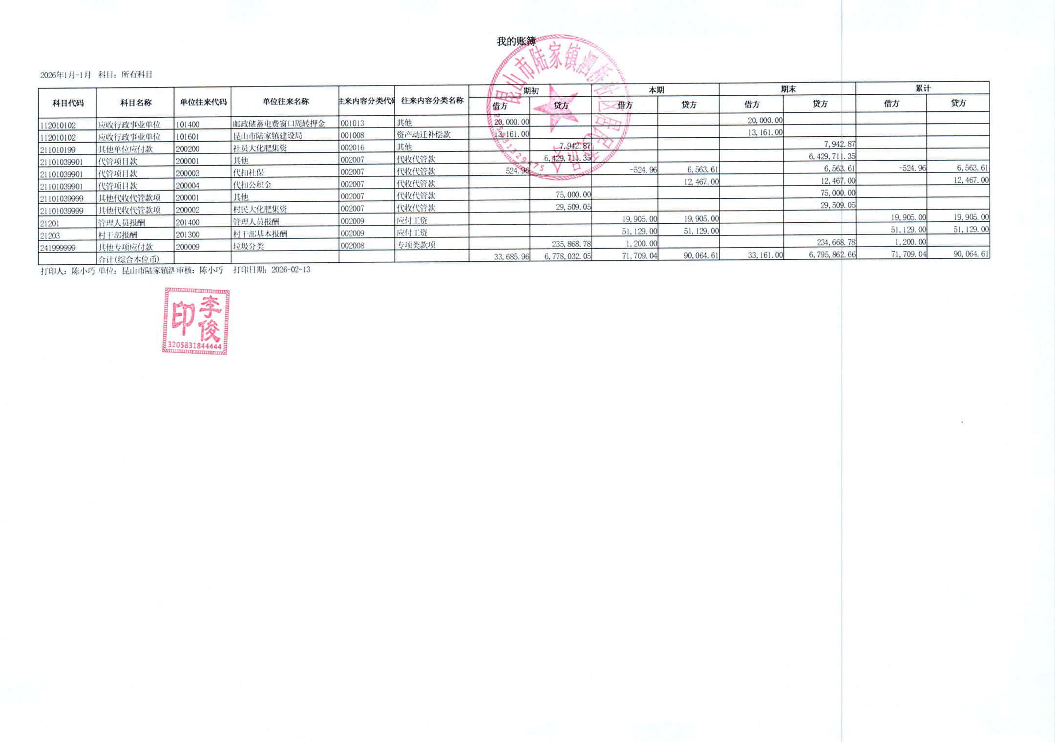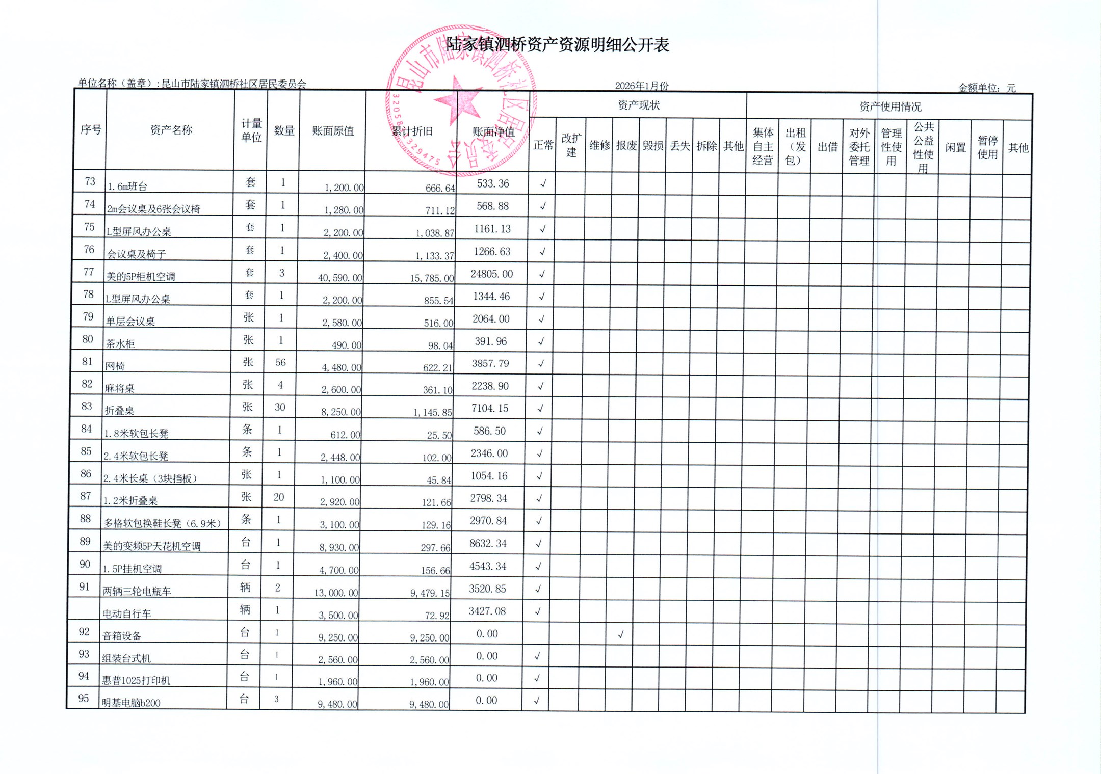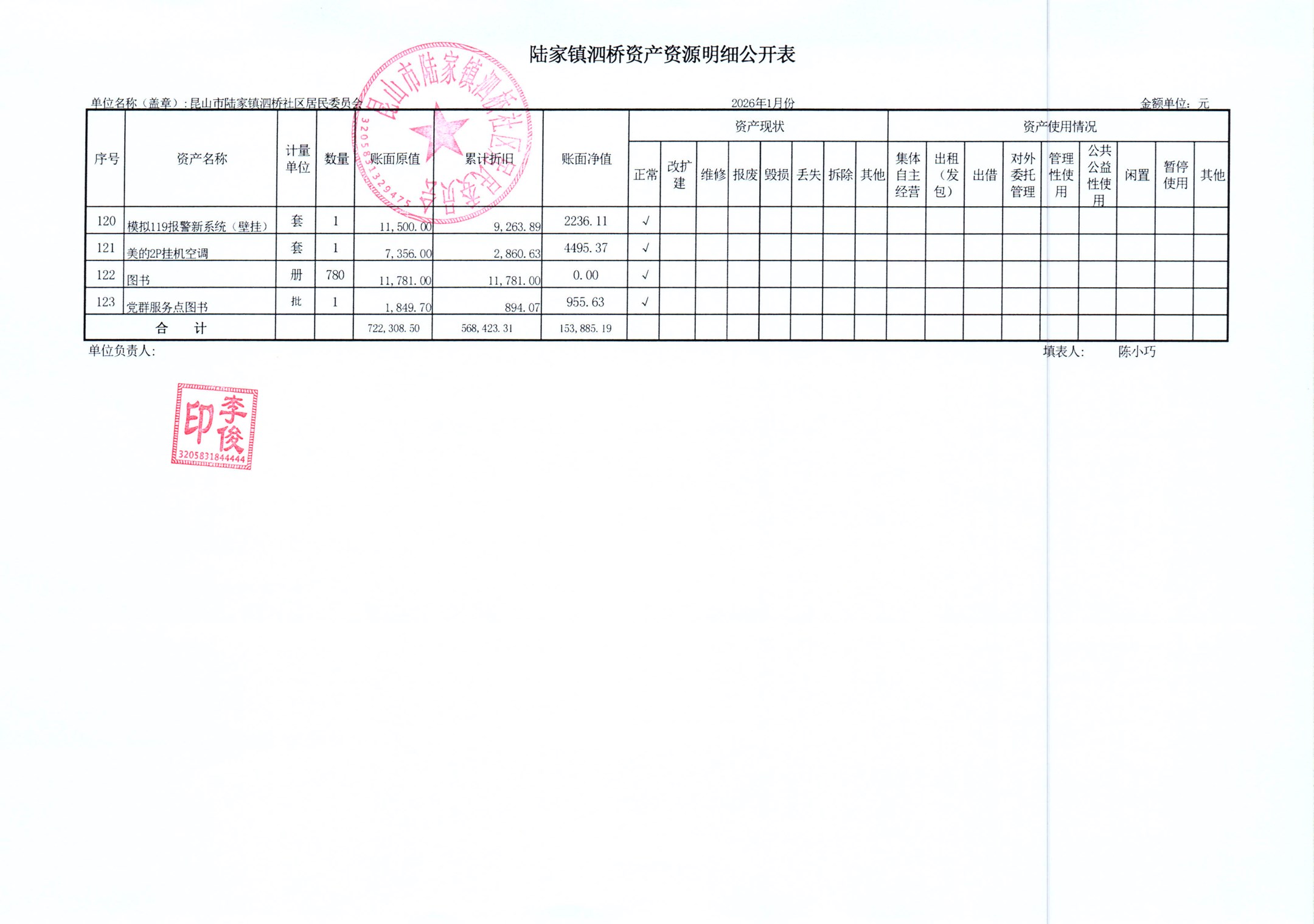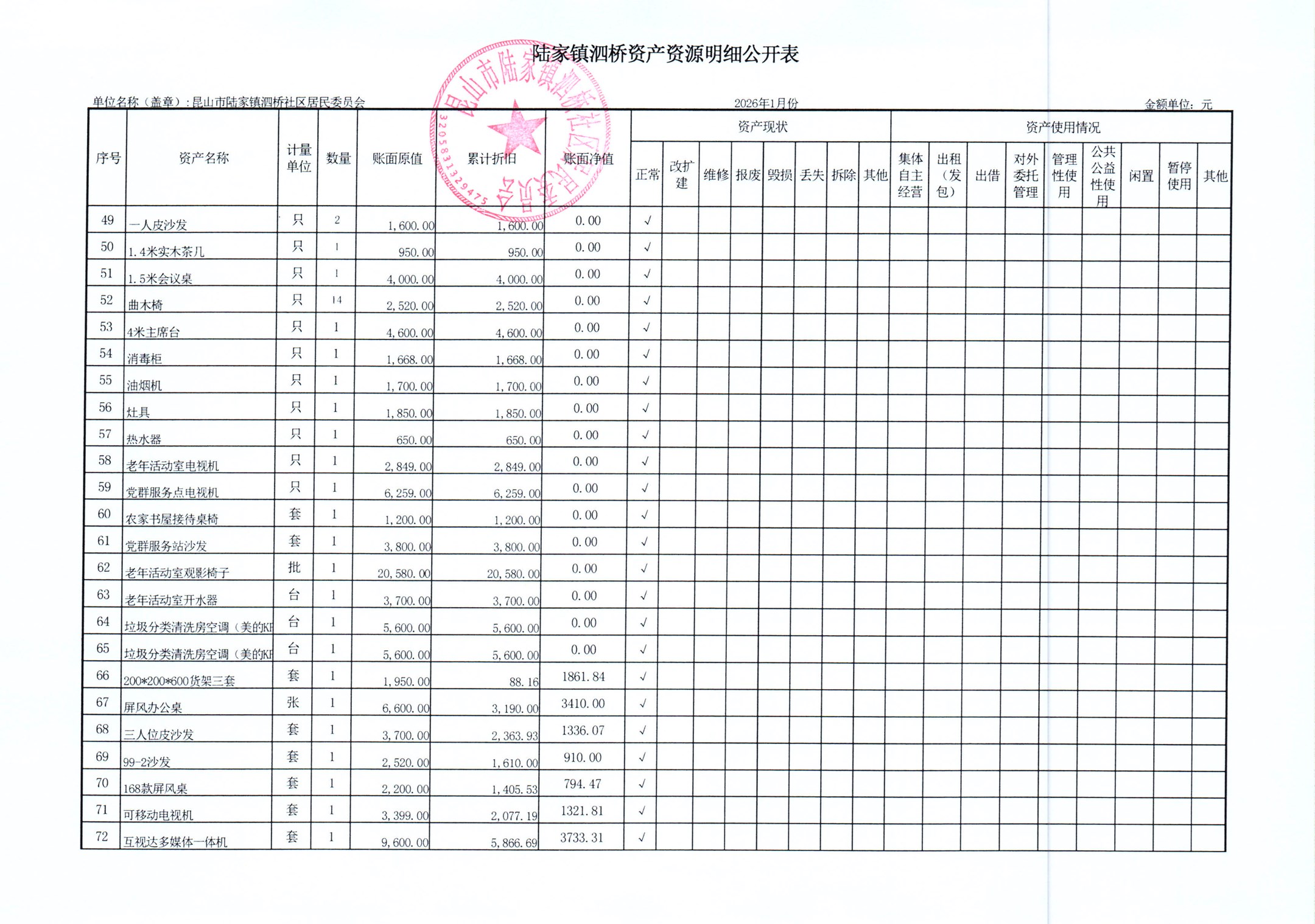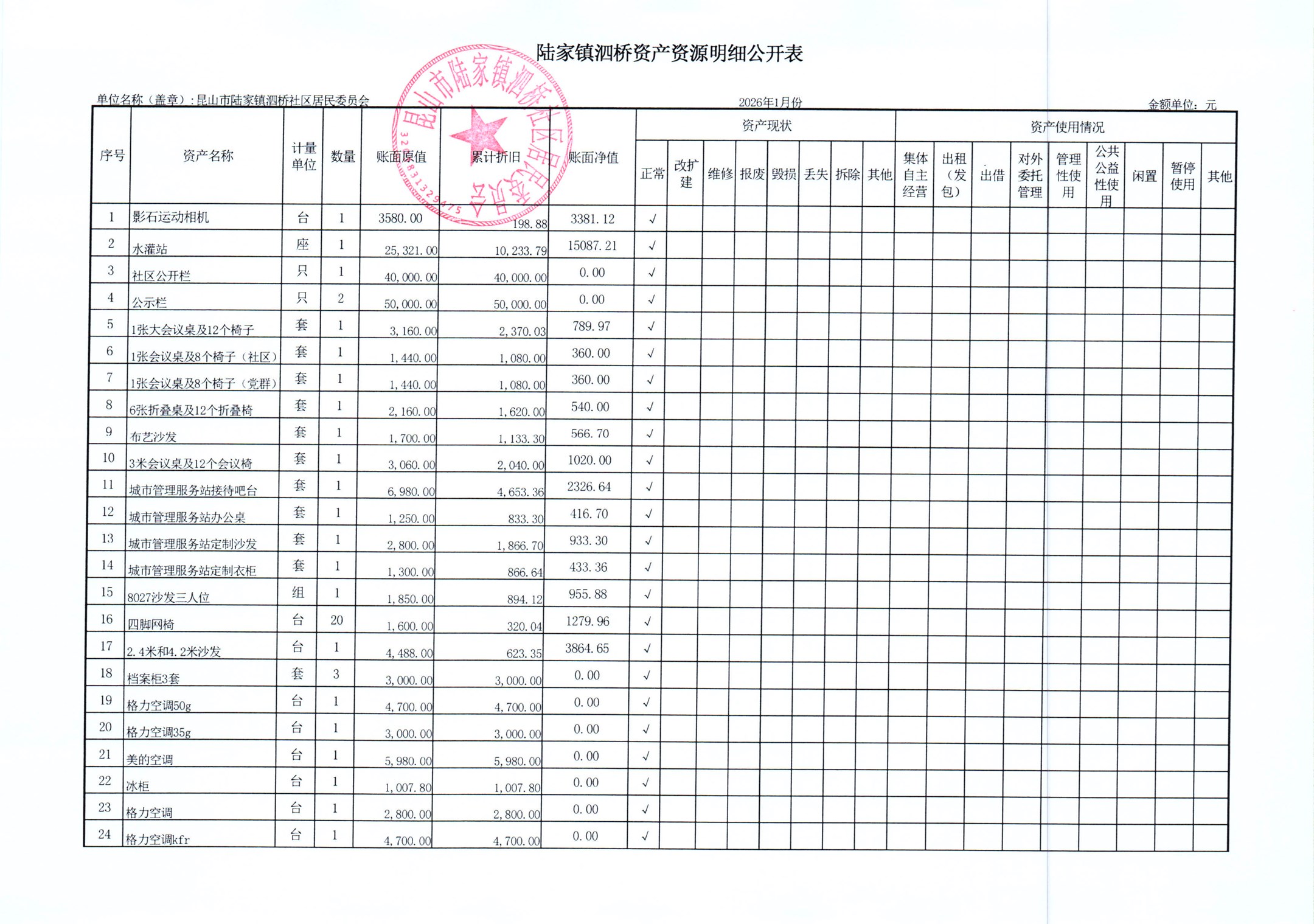 2026年泗桥社区居民委员会1月财务公开