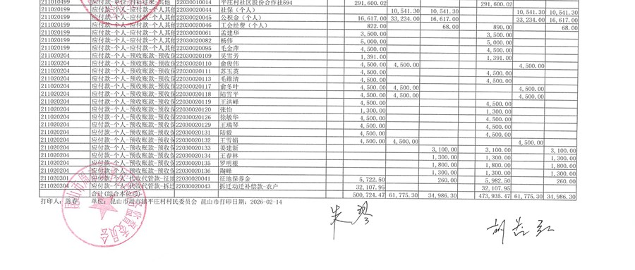 2026年第一季度(1月)平庄村村委会财务公开(定期公开)