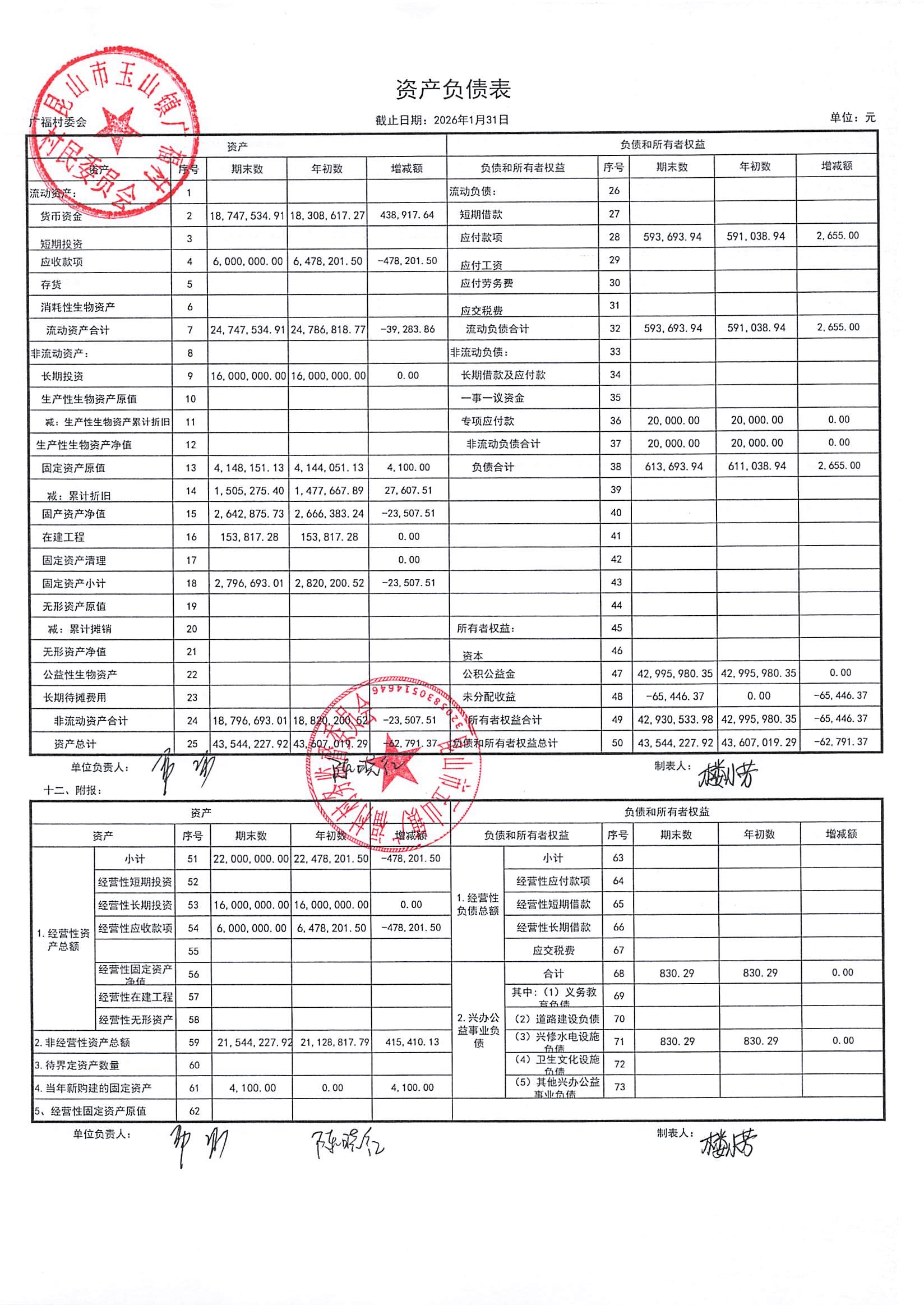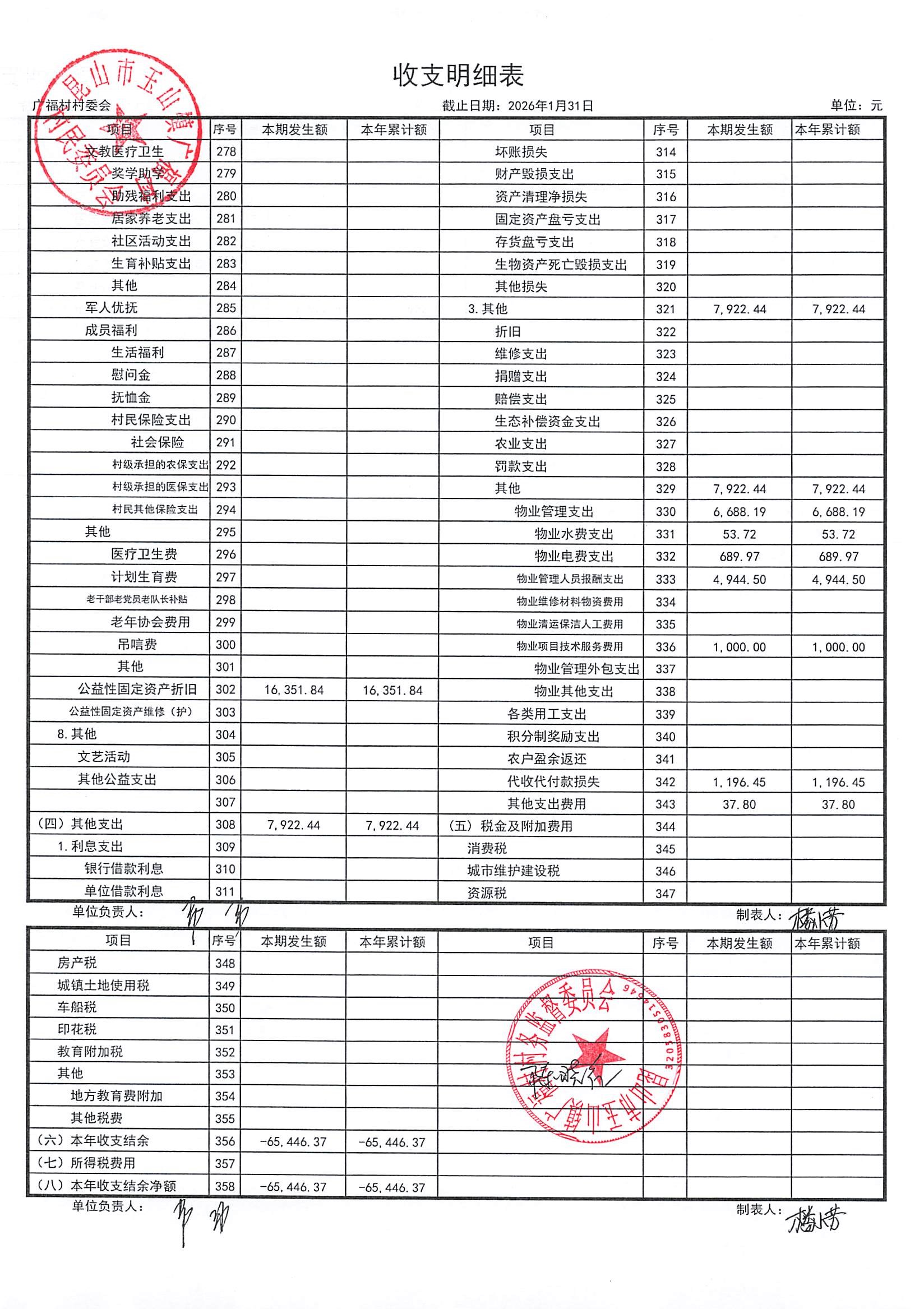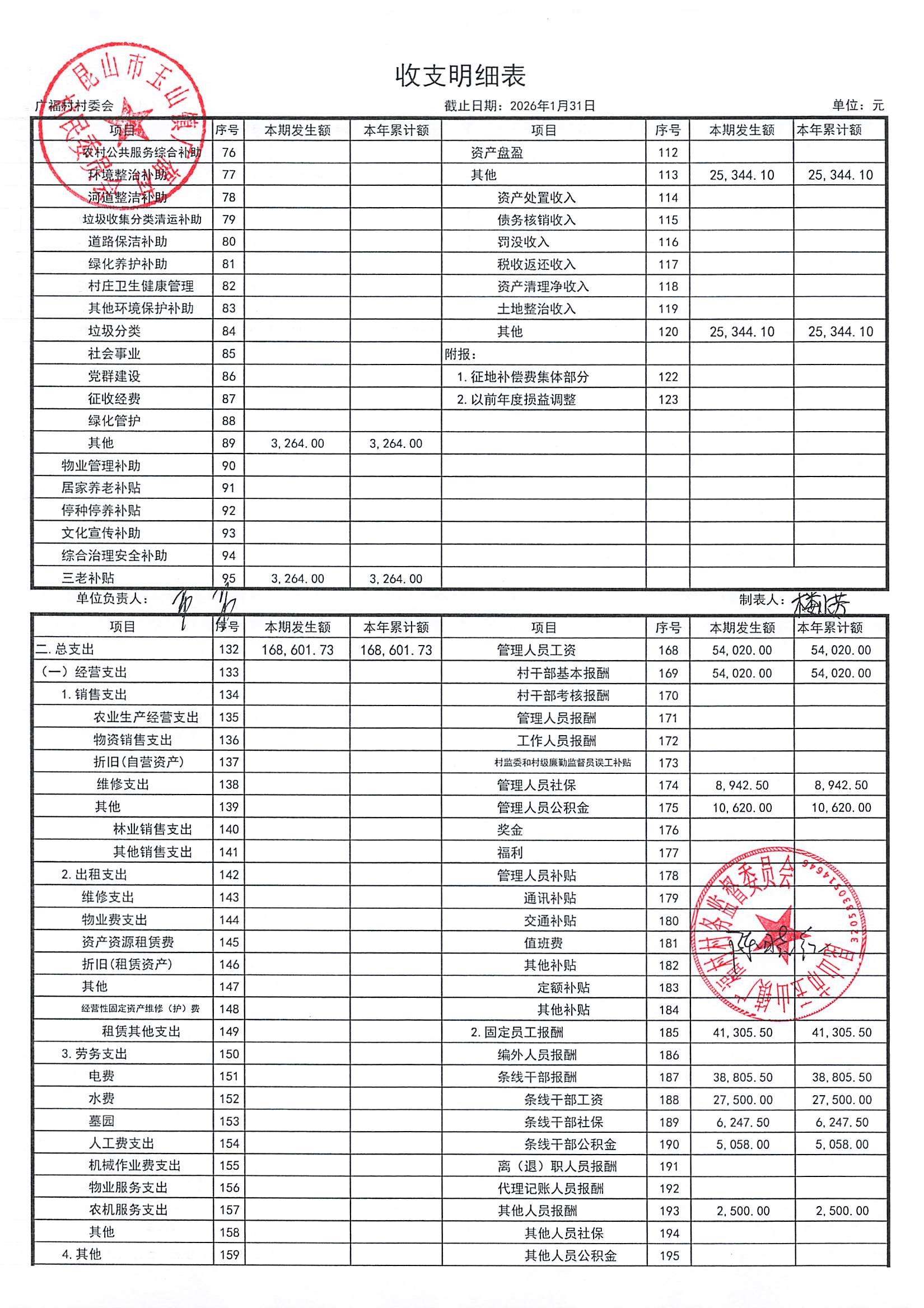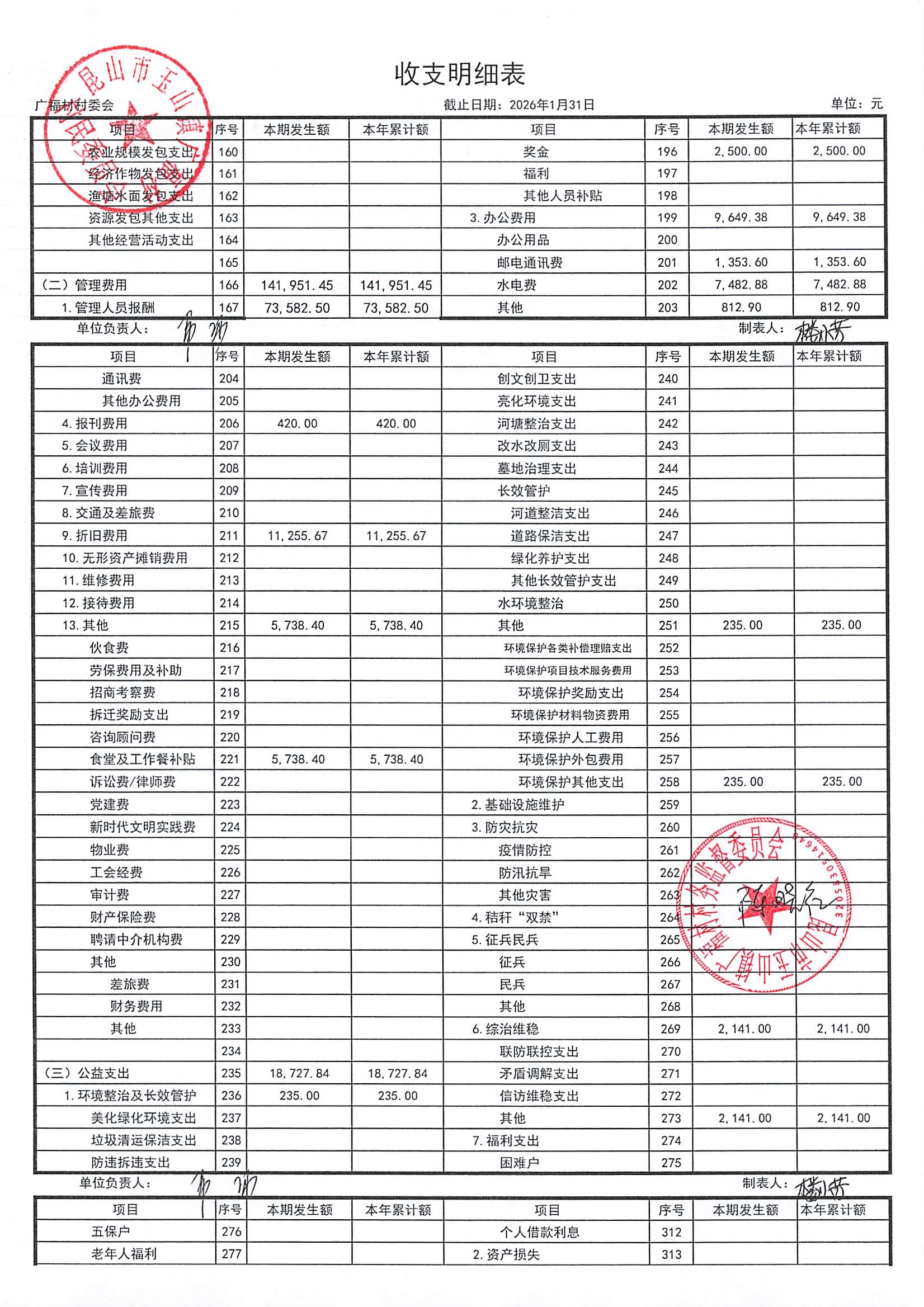 2026年广福村村委会2月份财务公开内容