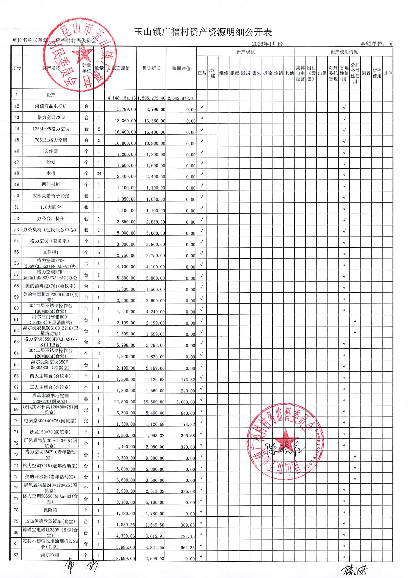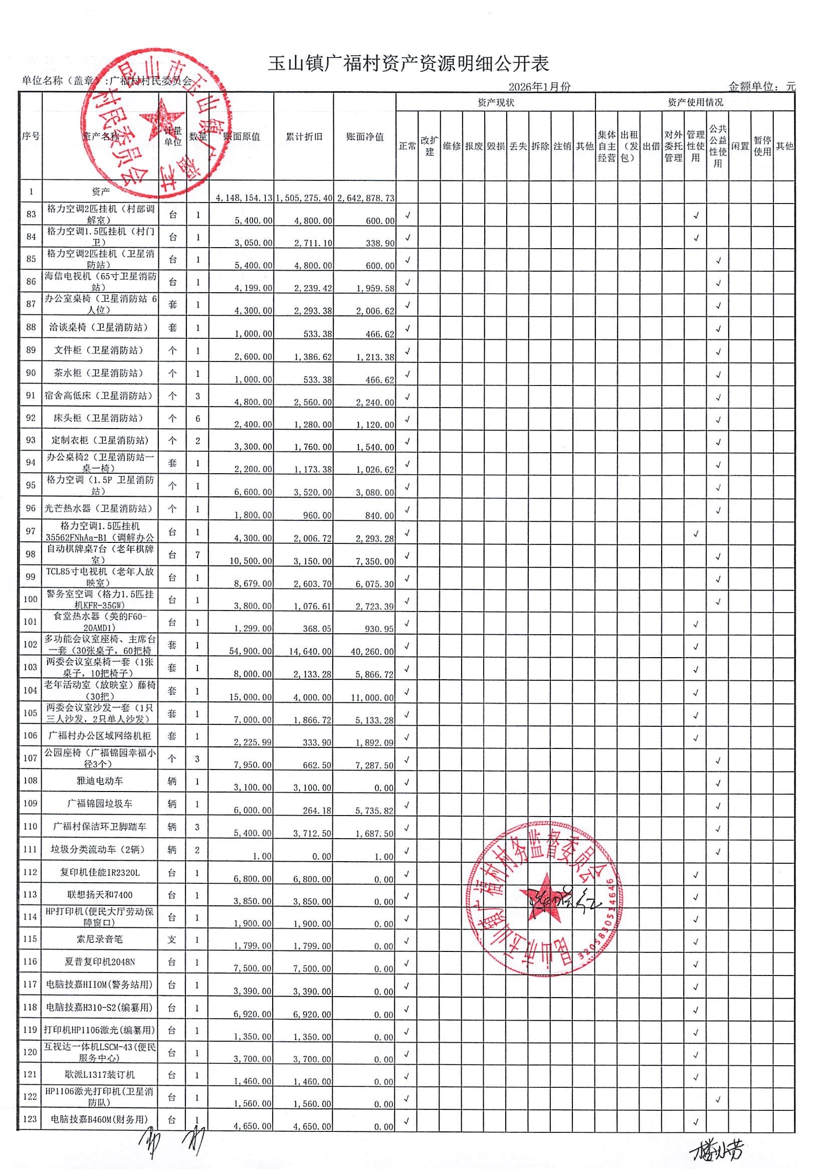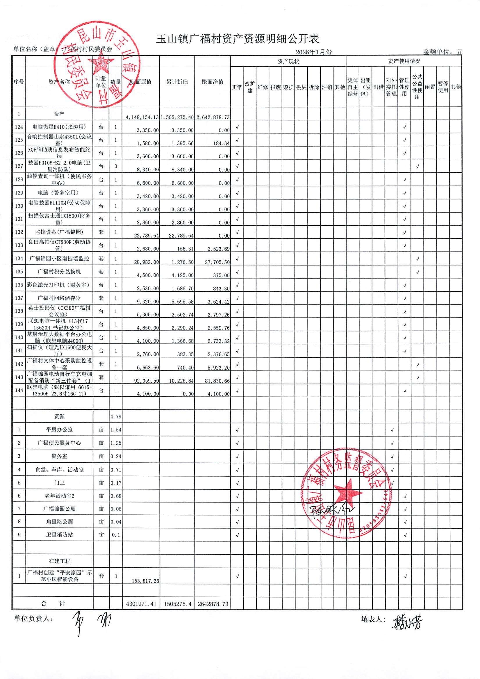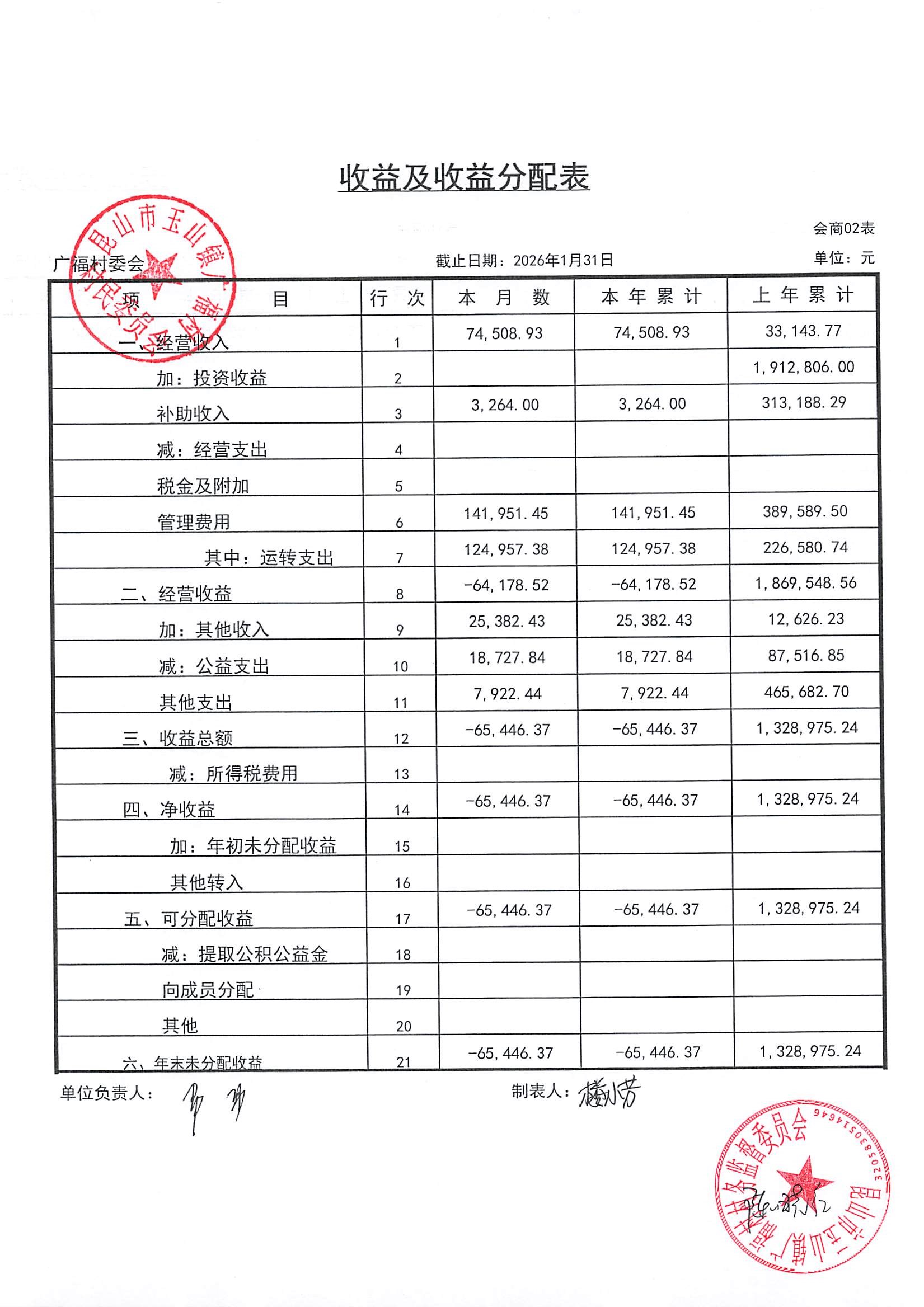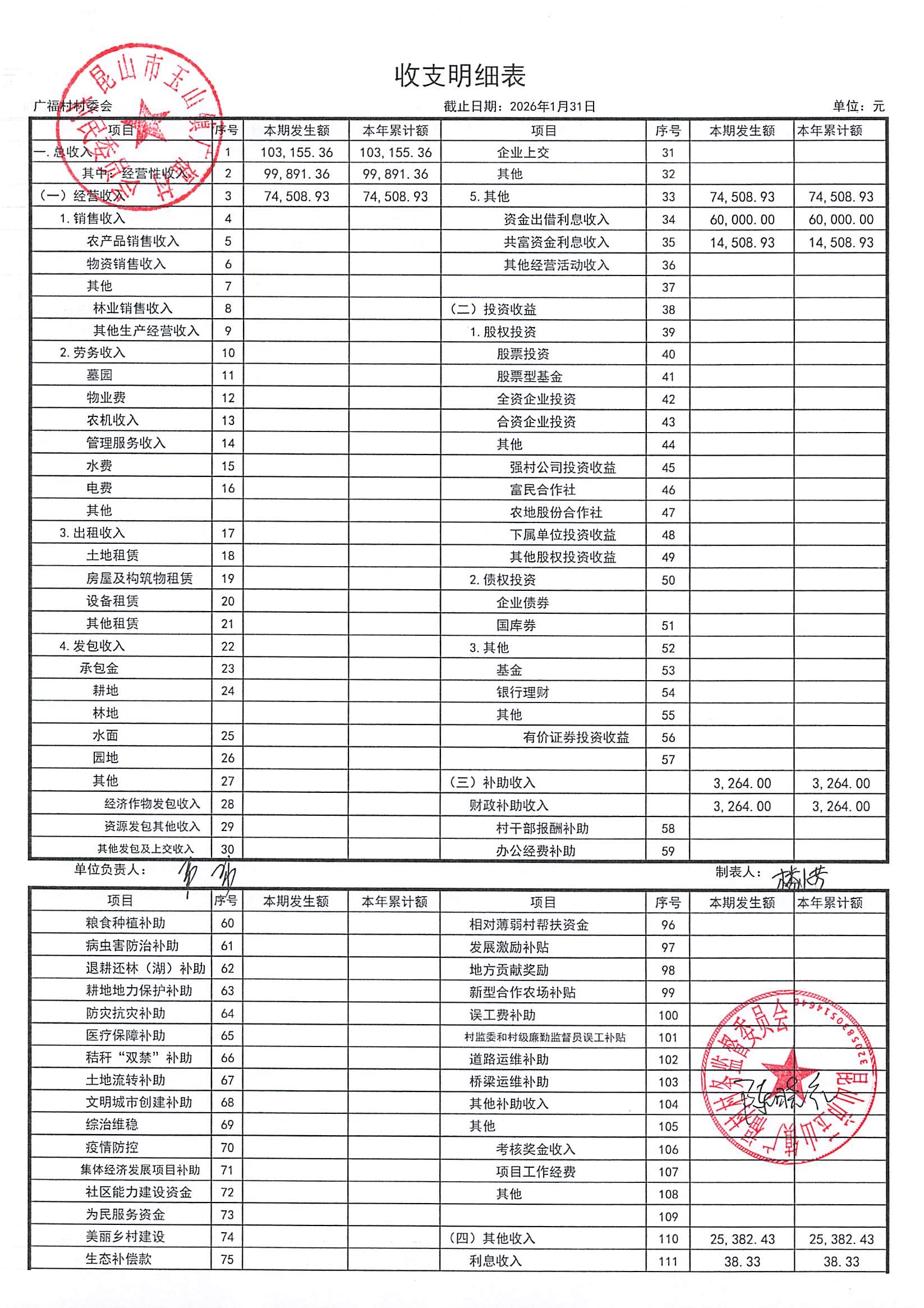 2026年广福村村委会2月份财务公开内容