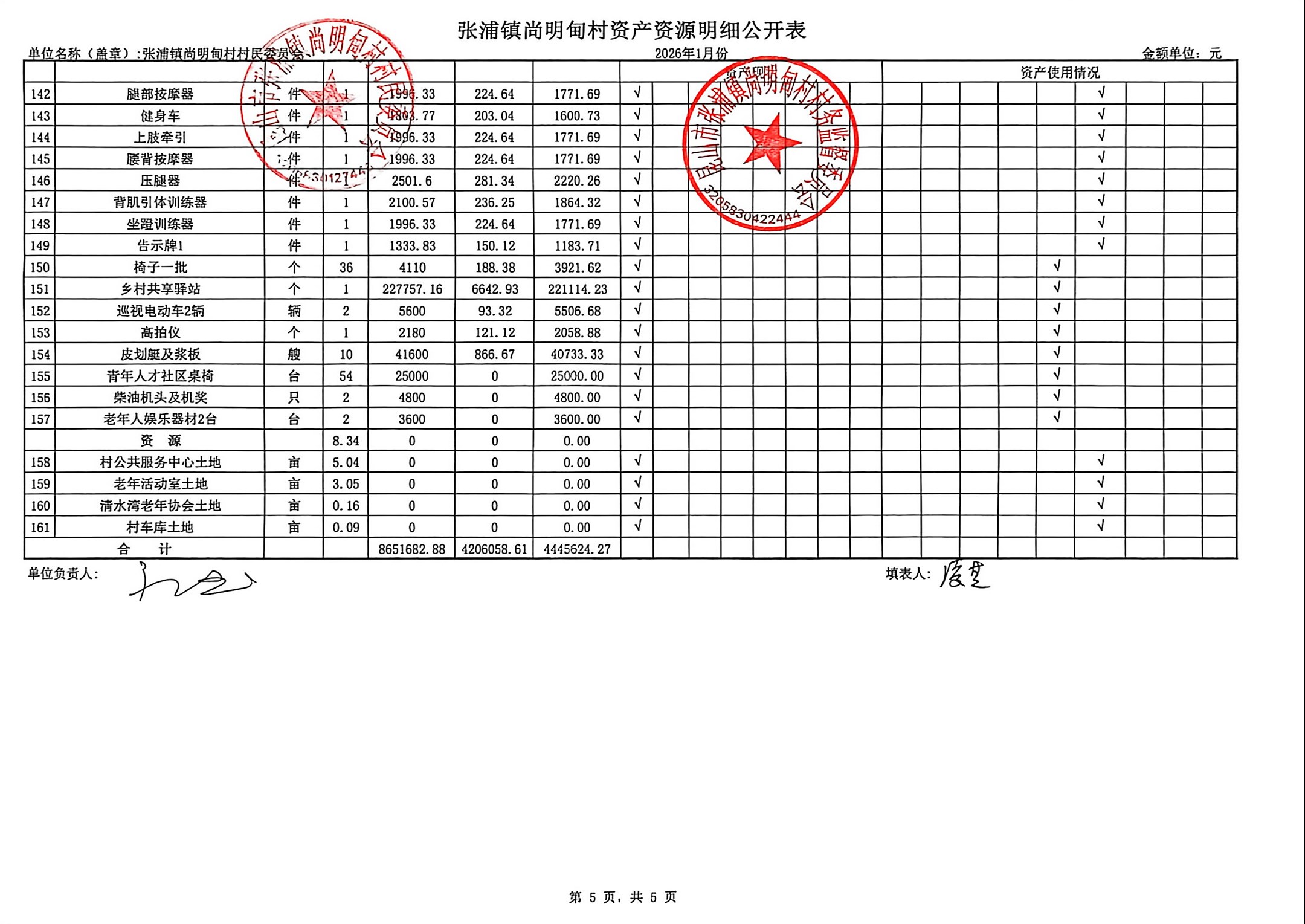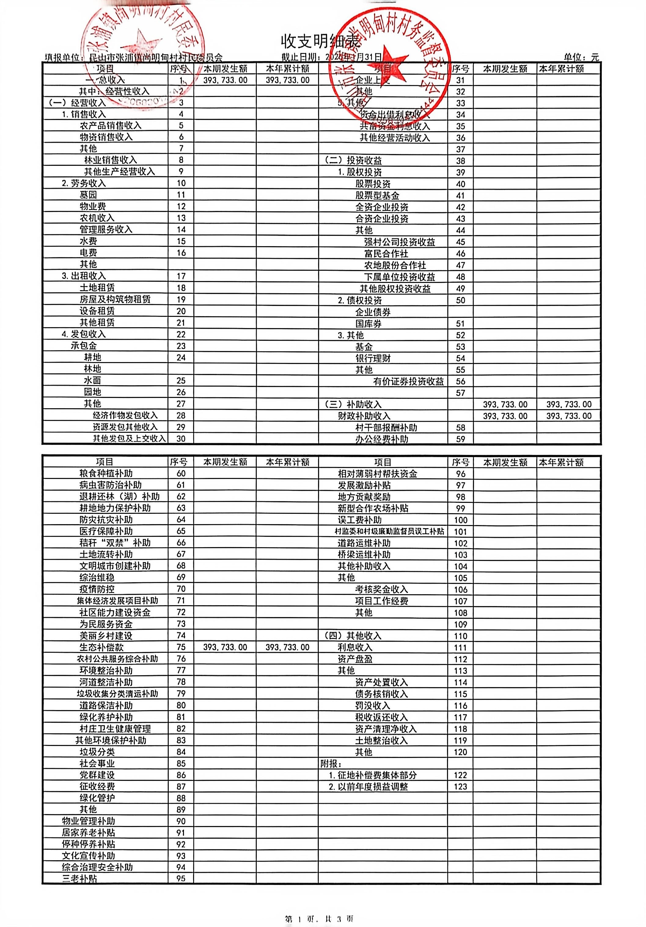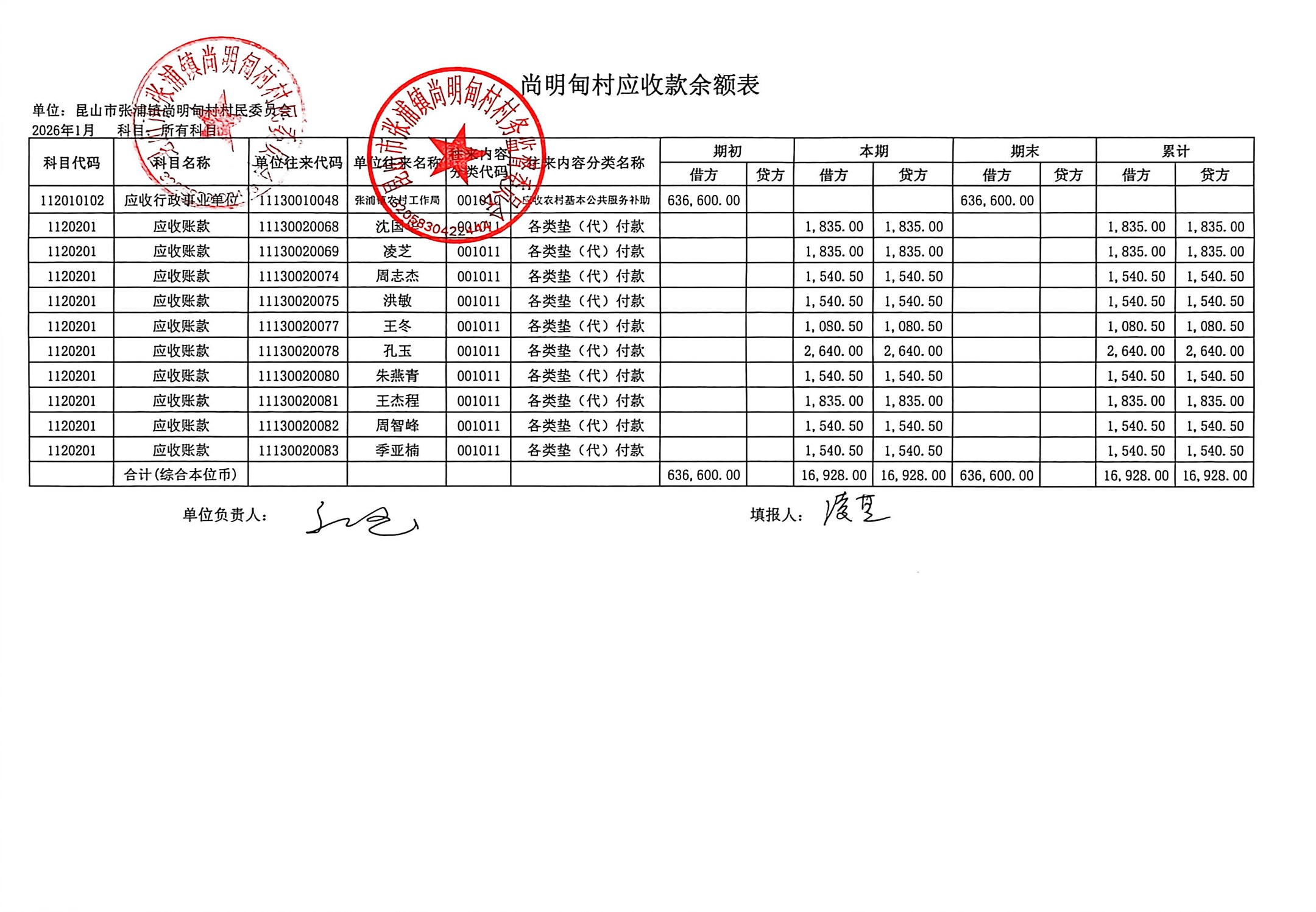 尚明甸村2026年1月财务公开