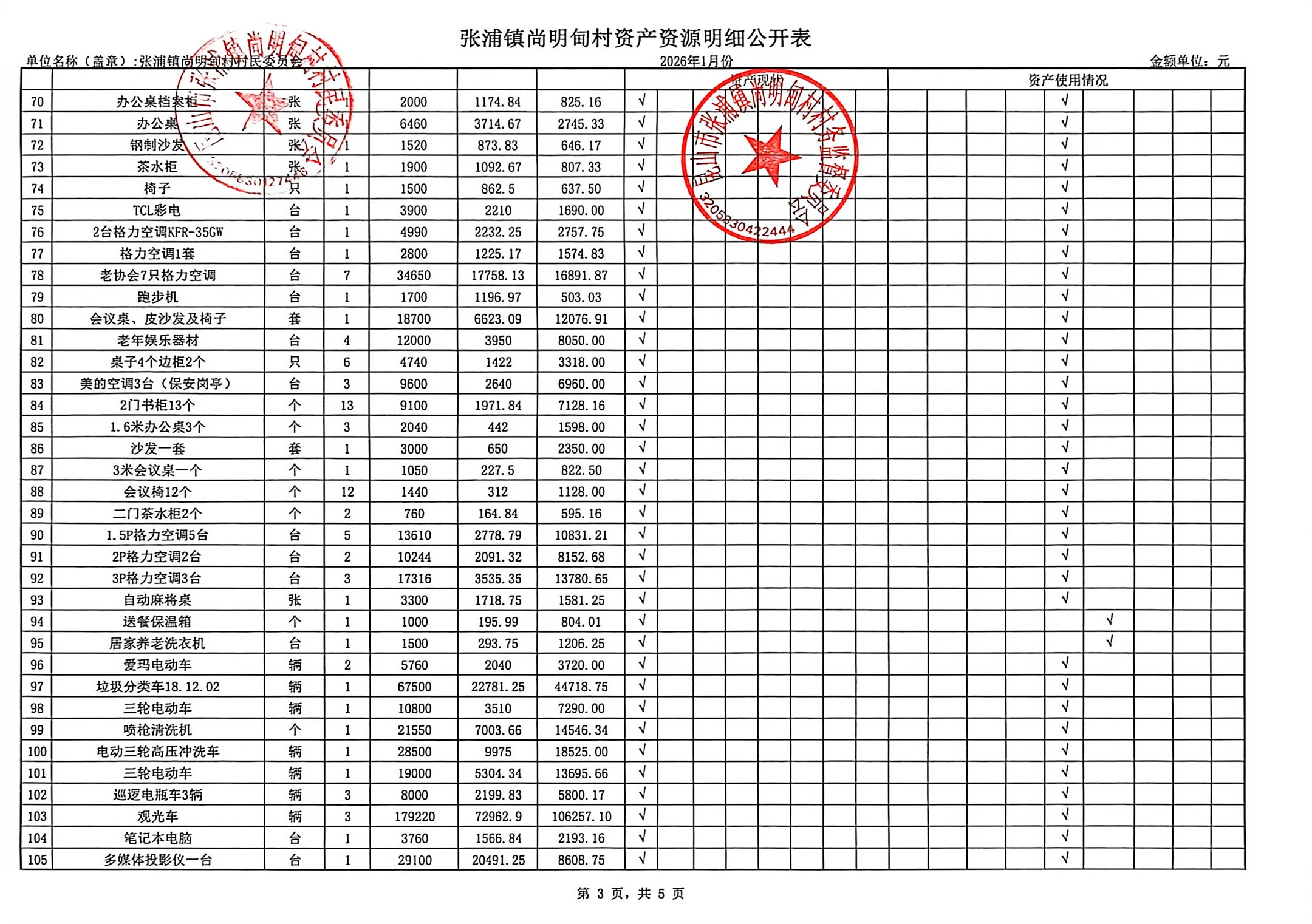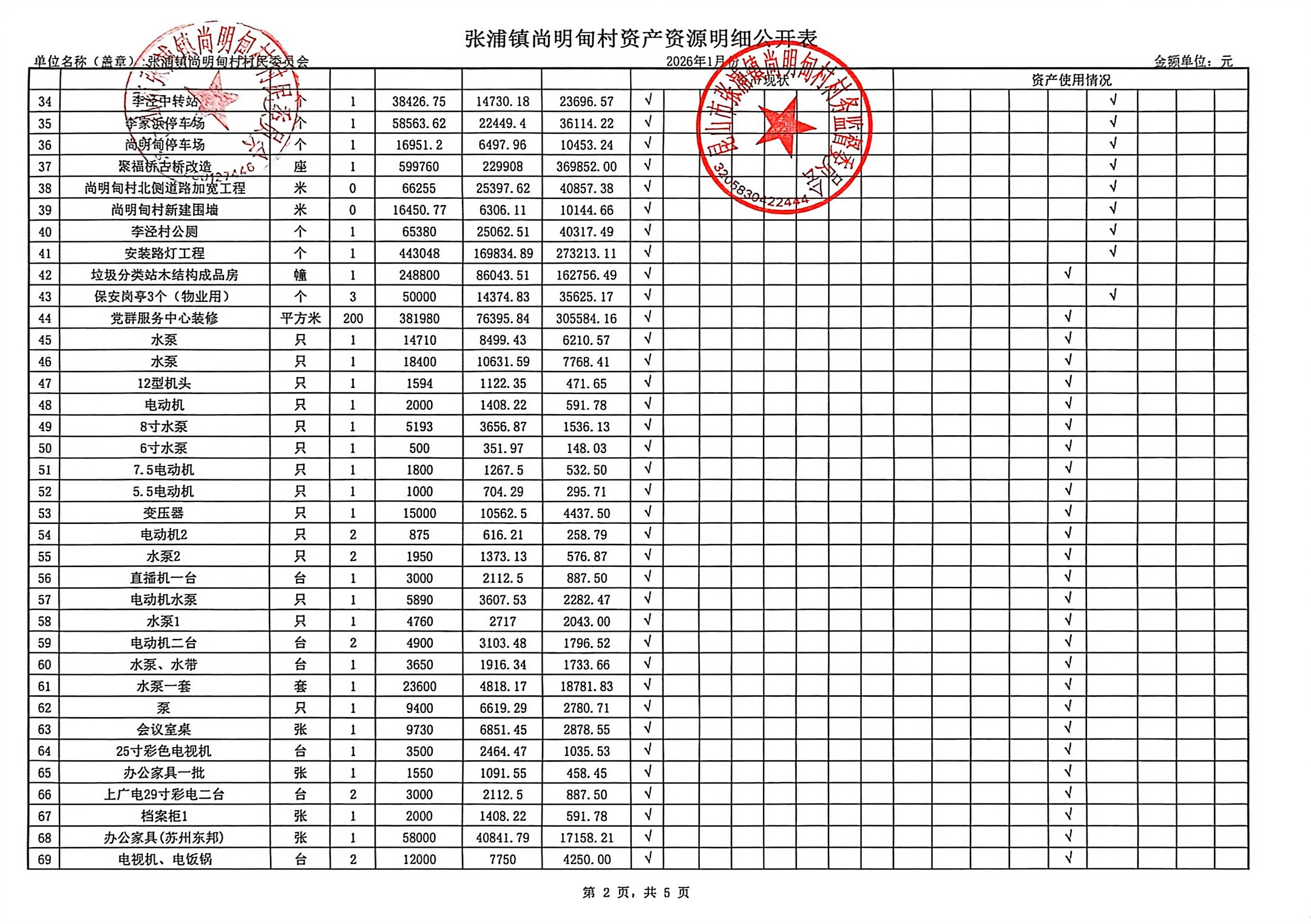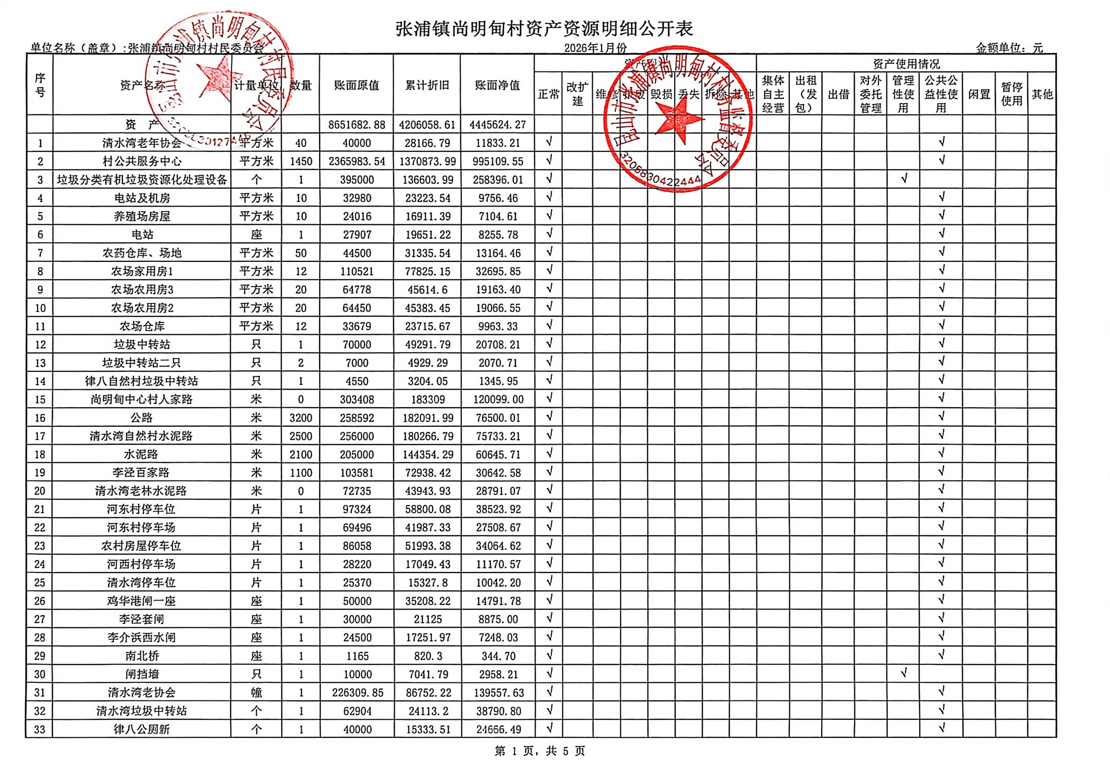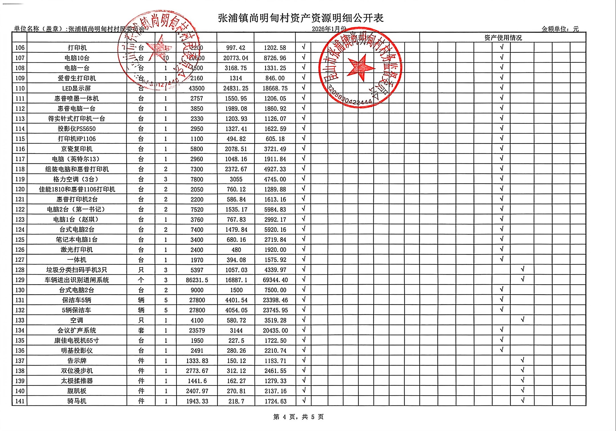 尚明甸村2026年1月财务公开