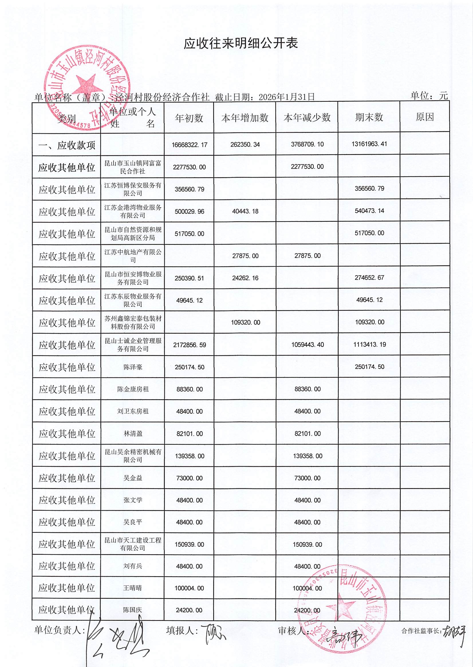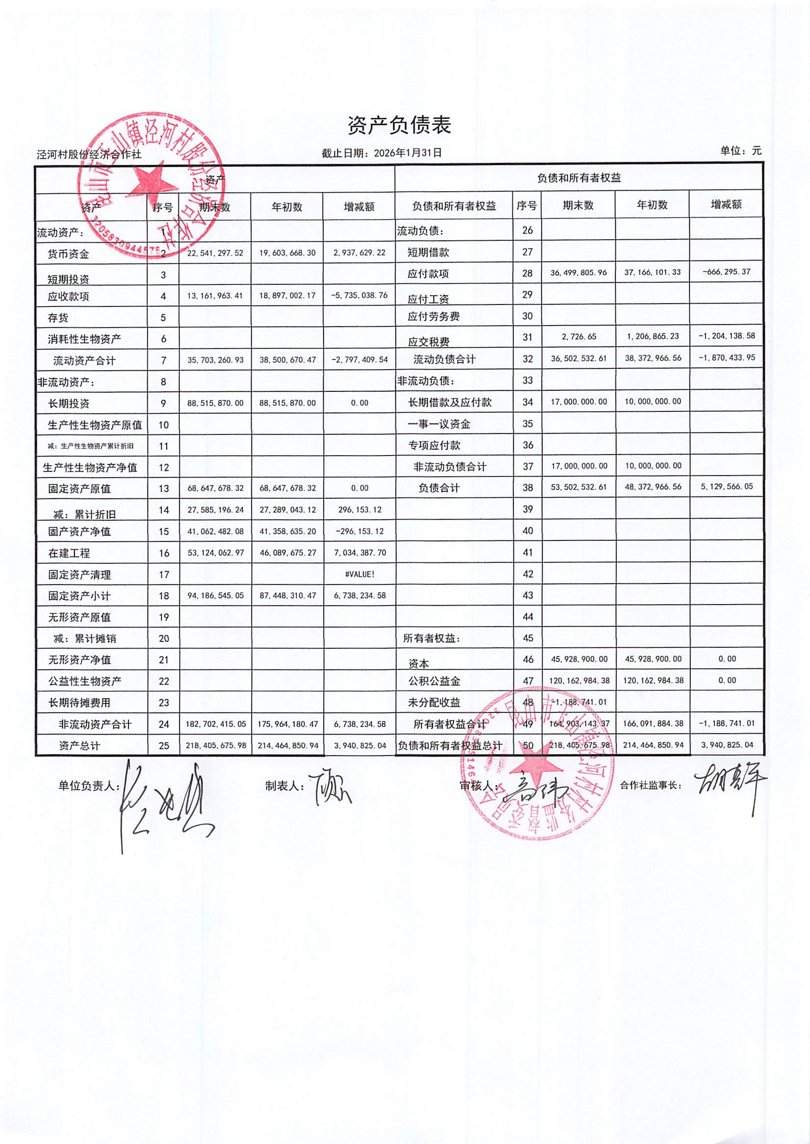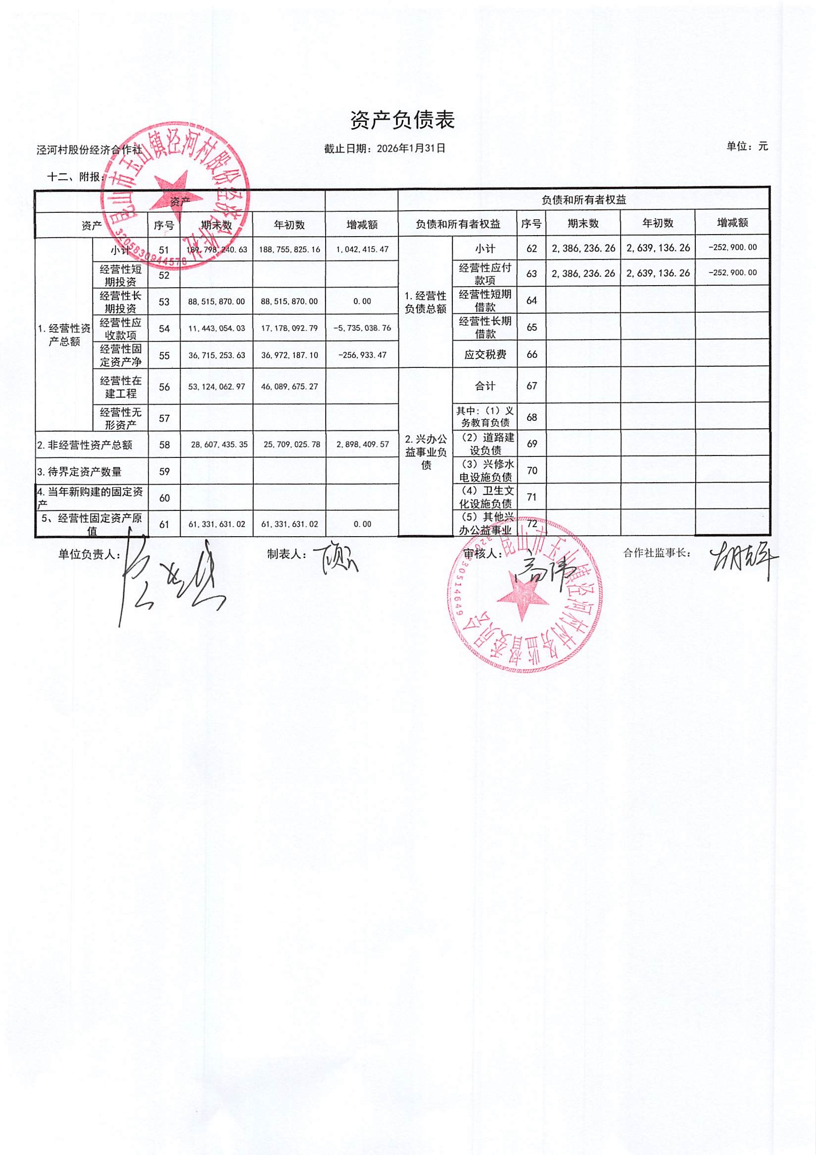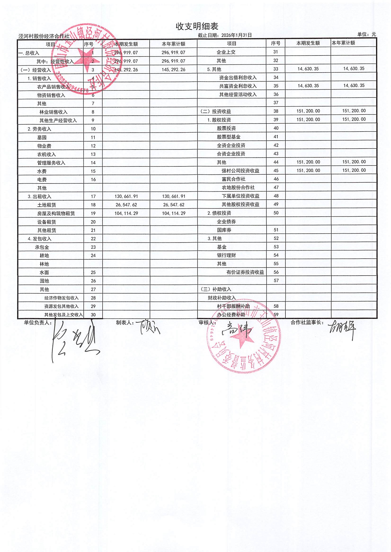 2026年二月份泾河村财务公开(合作社)