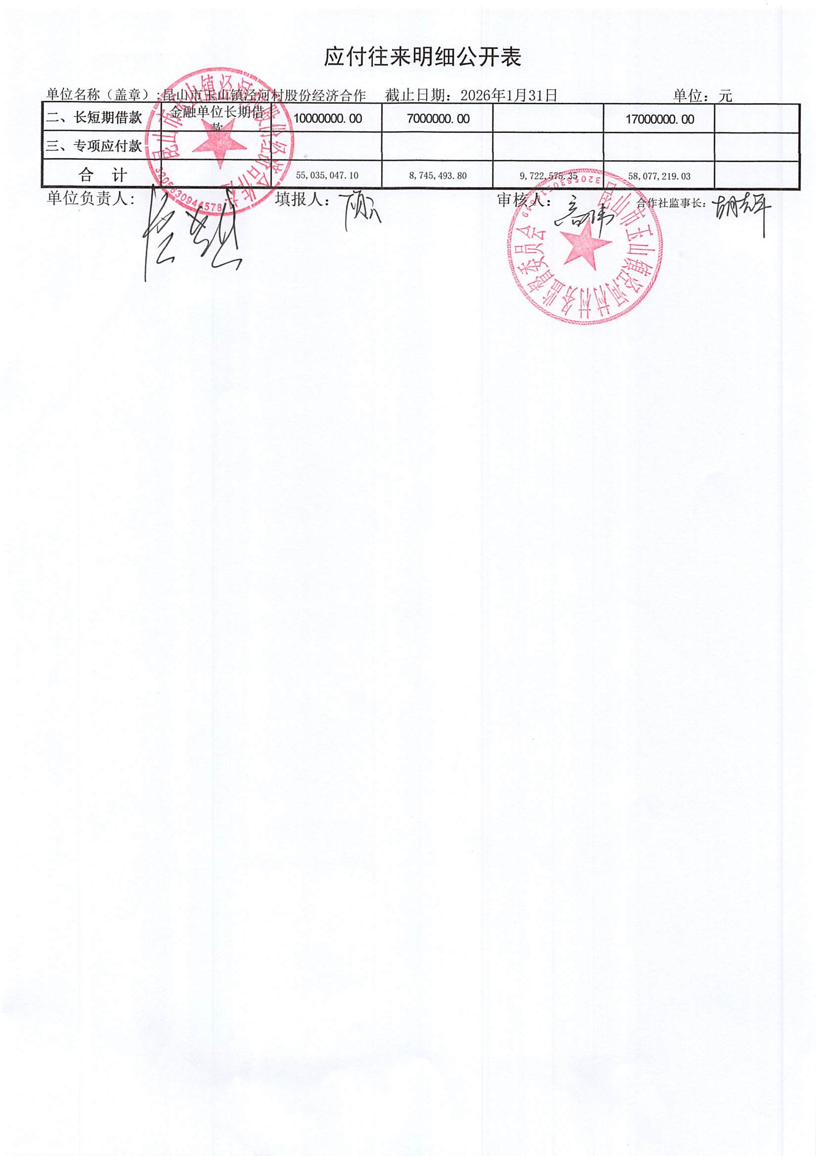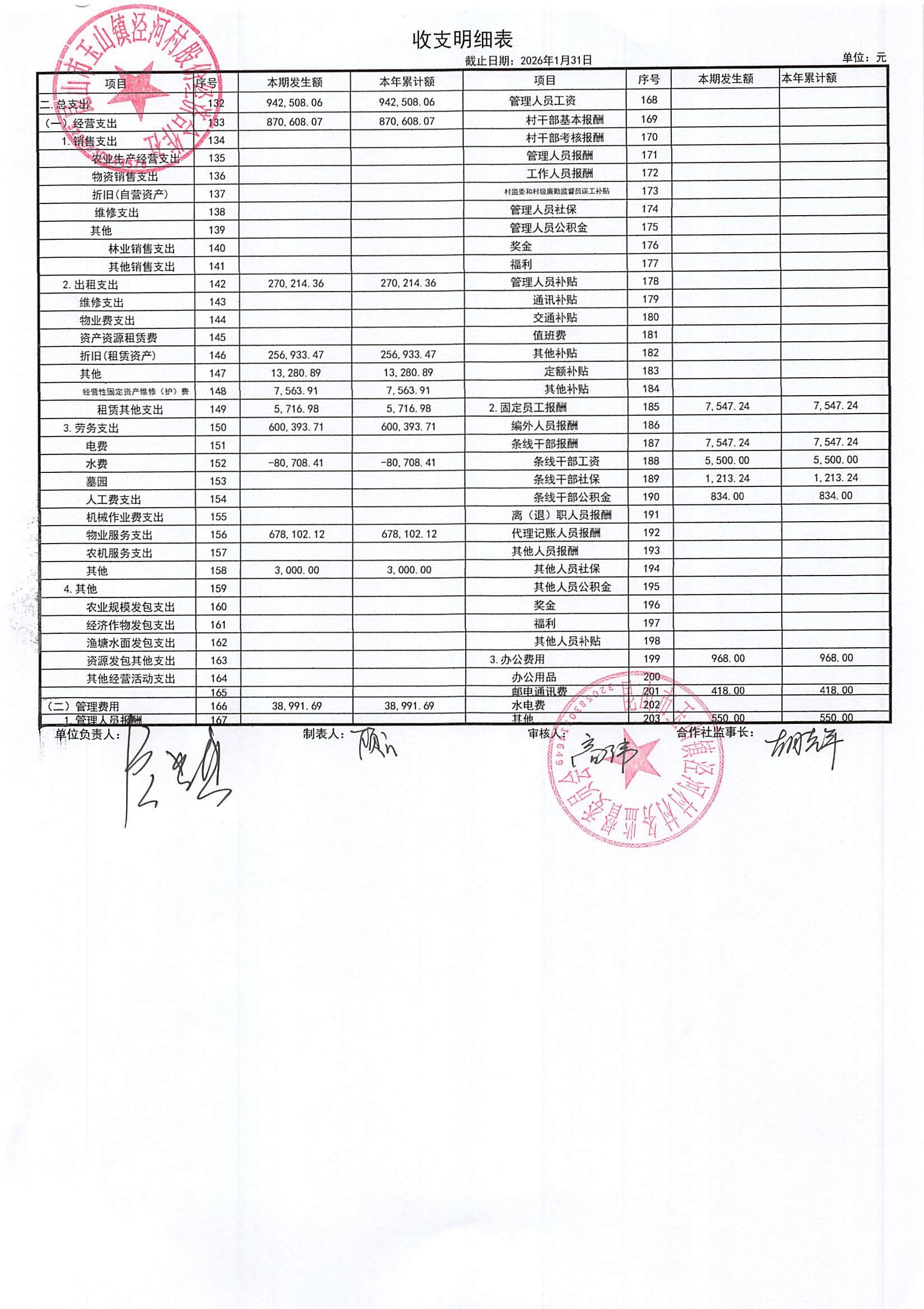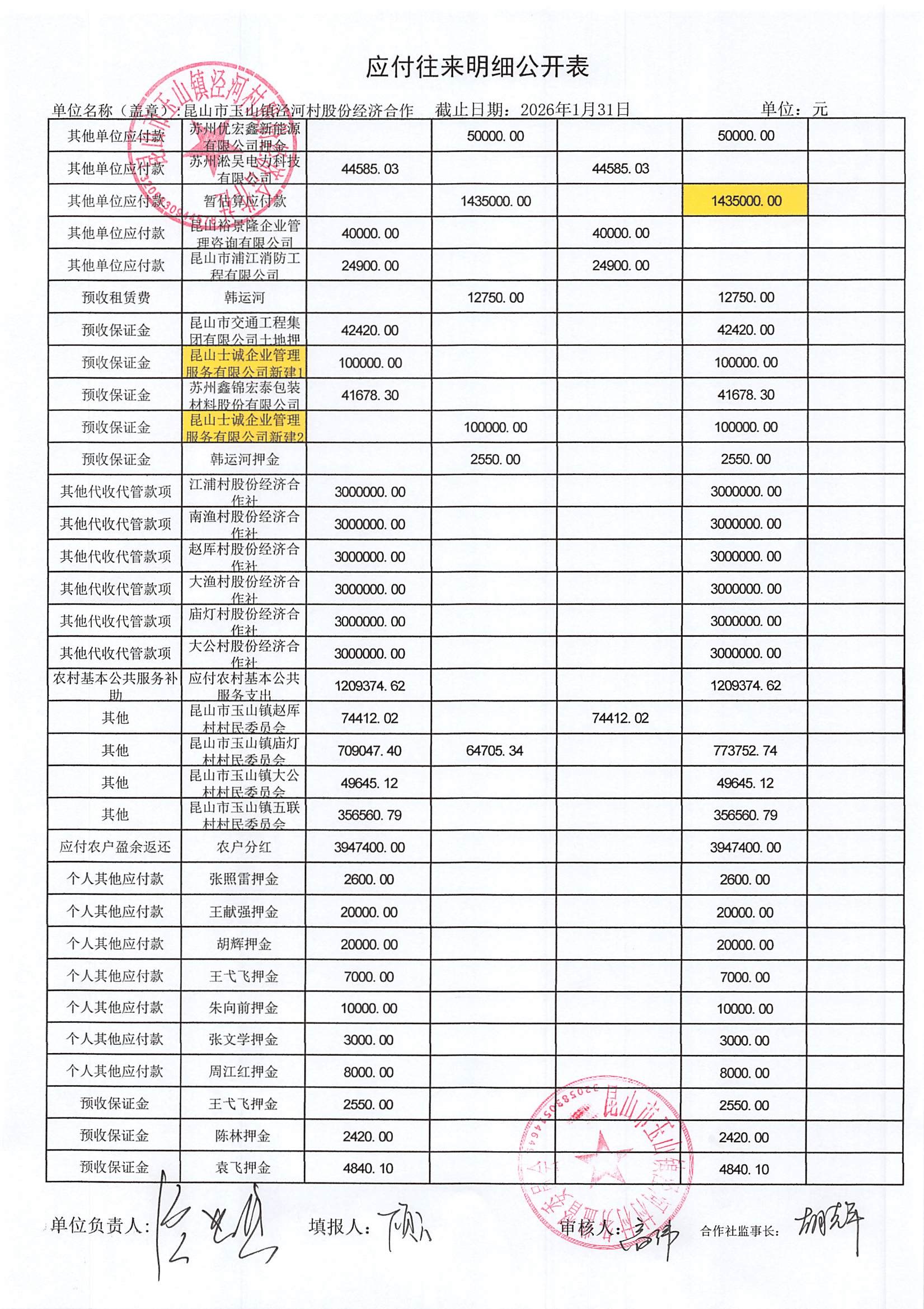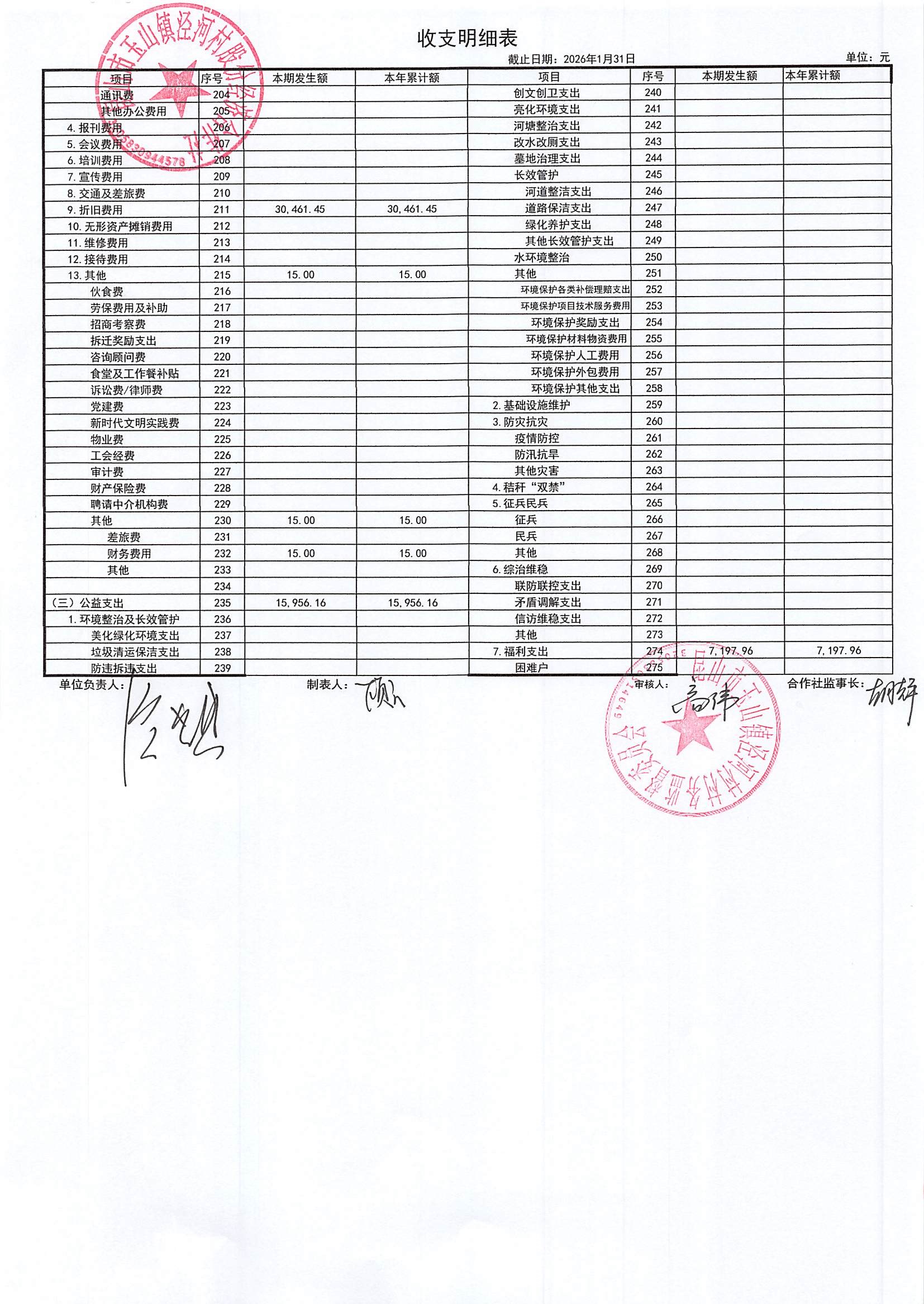 2026年二月份泾河村财务公开(合作社)