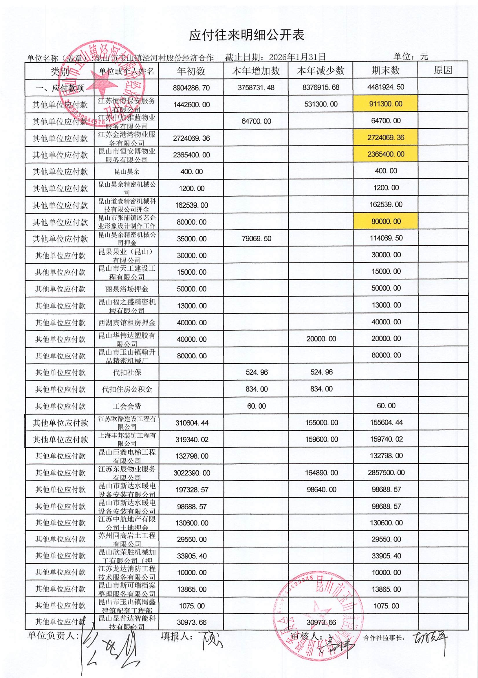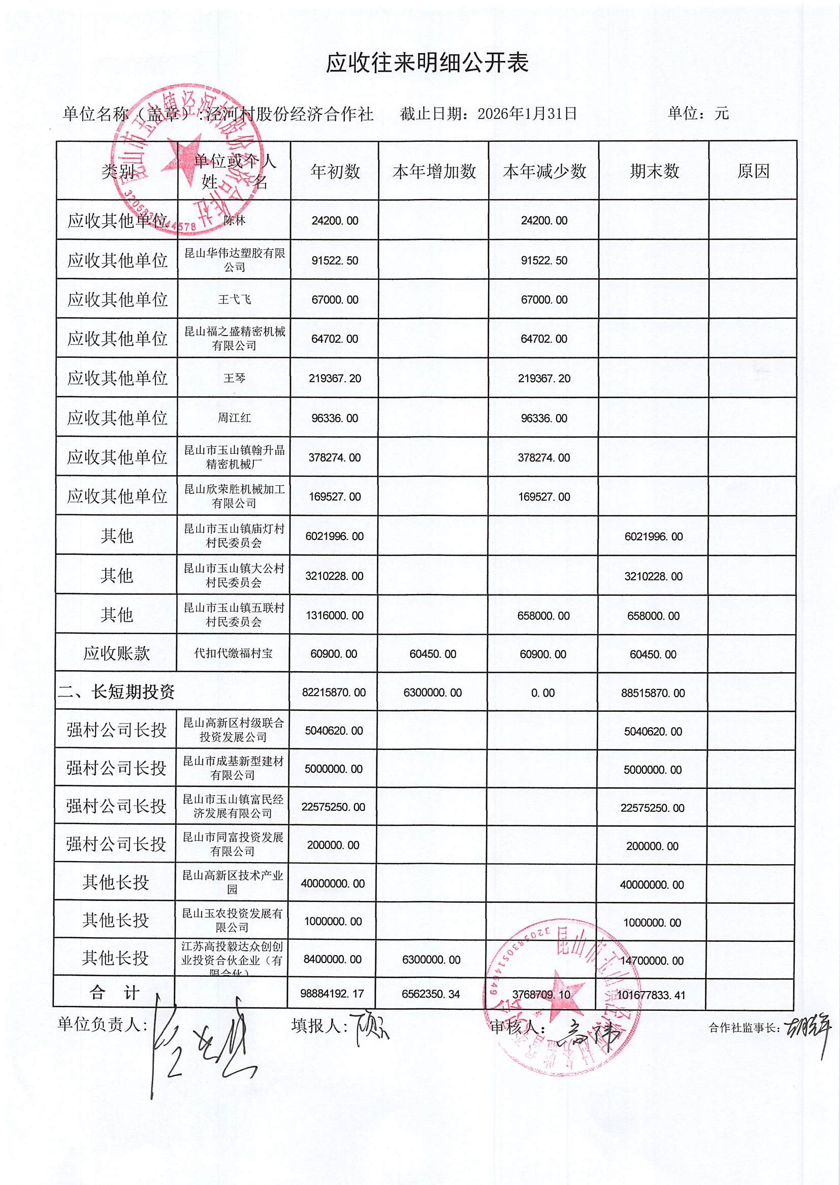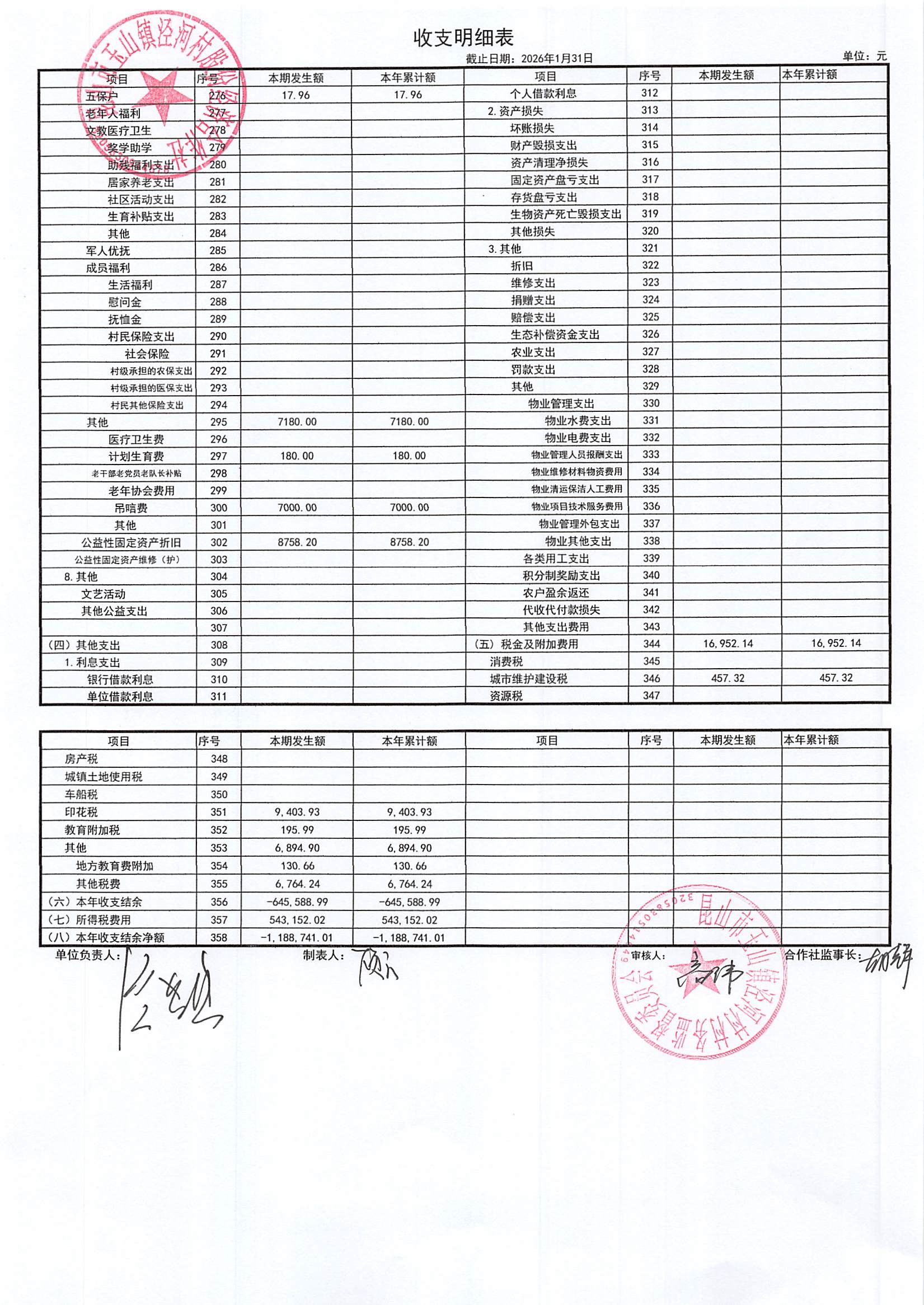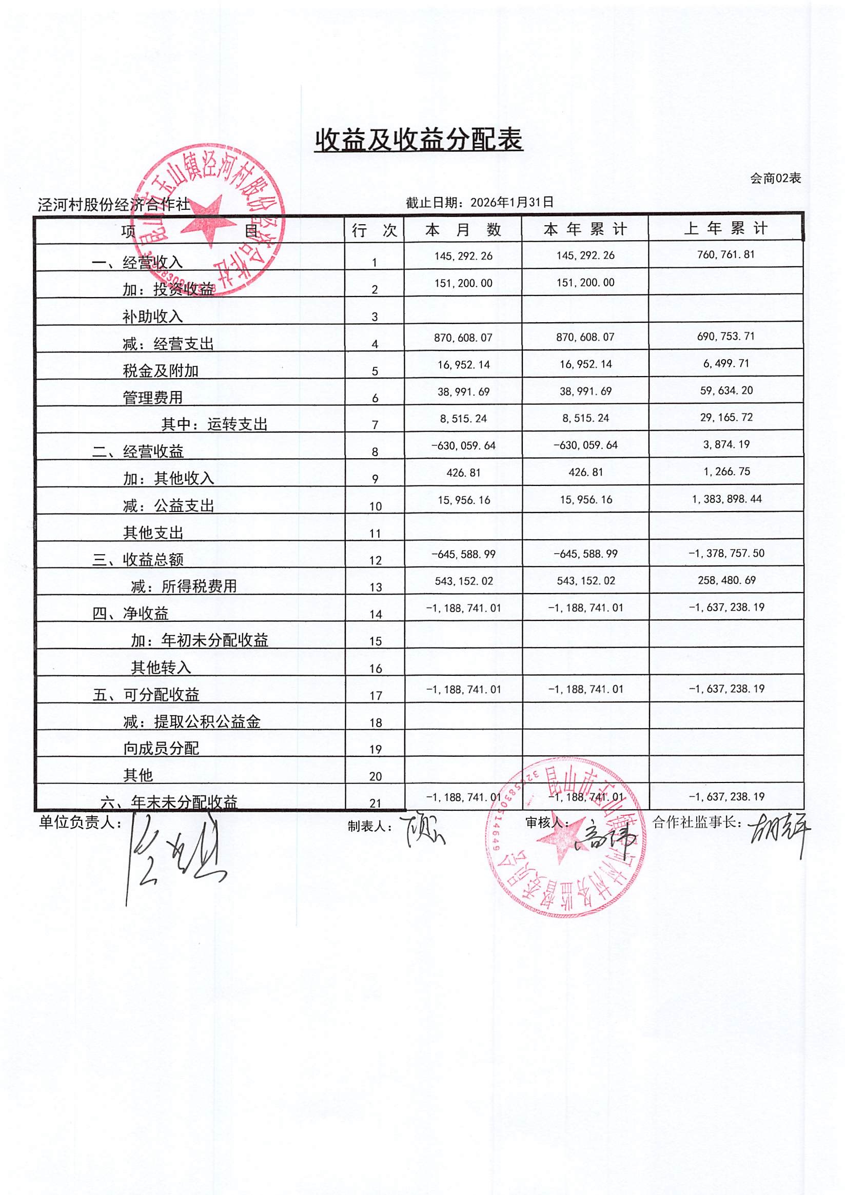 2026年二月份泾河村财务公开(合作社)