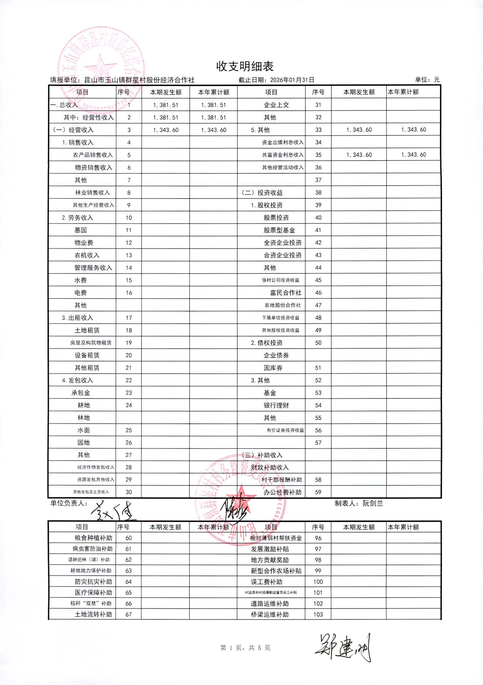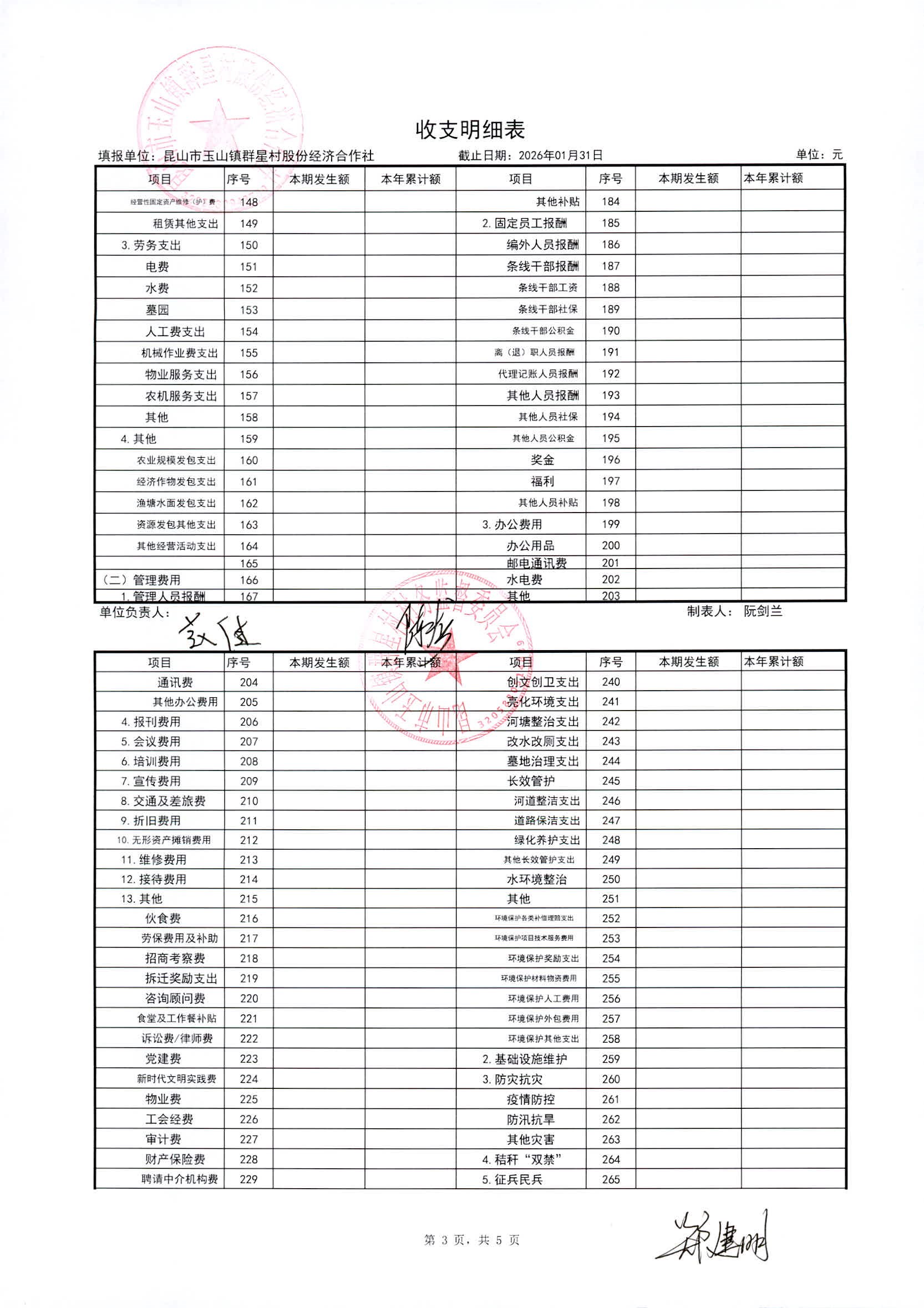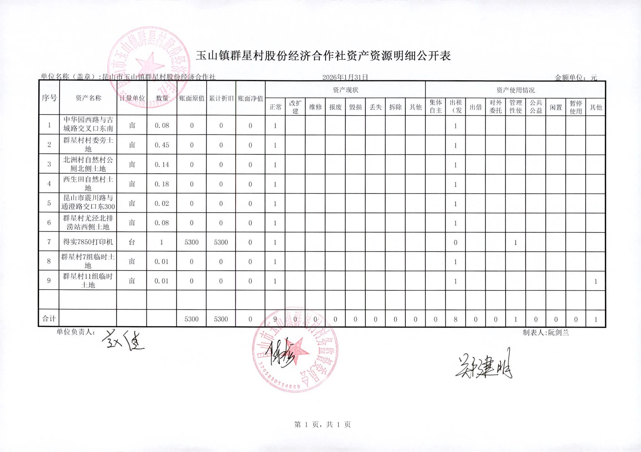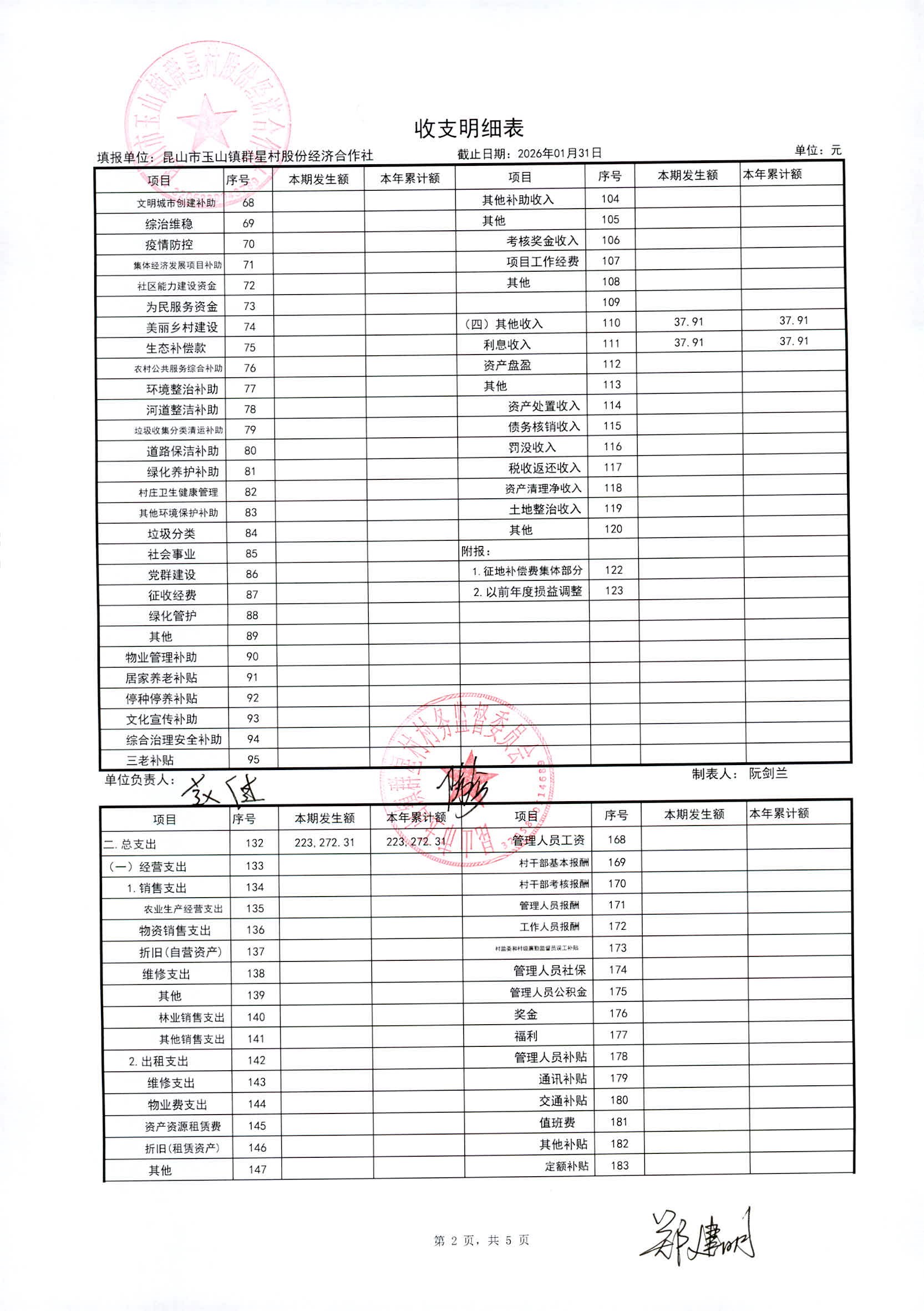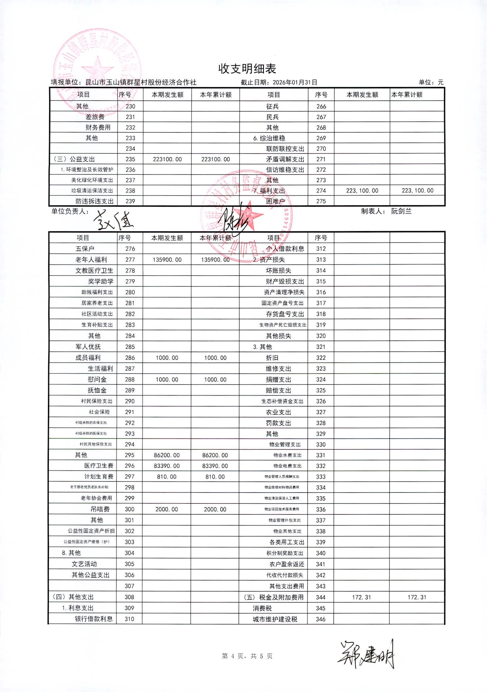 昆山高新区群星村2026年02月份公开股份经济合作社2026年01月财务信息