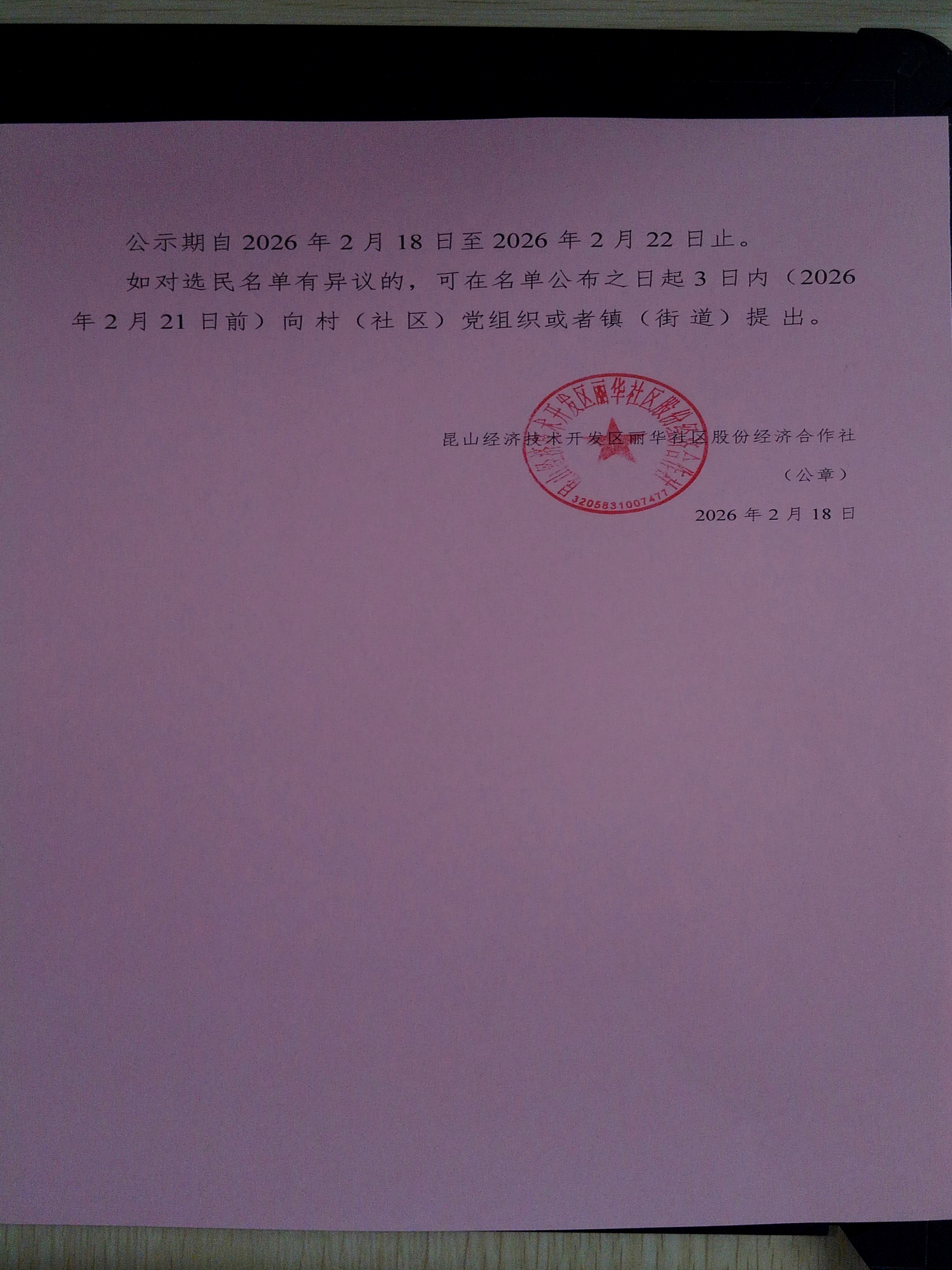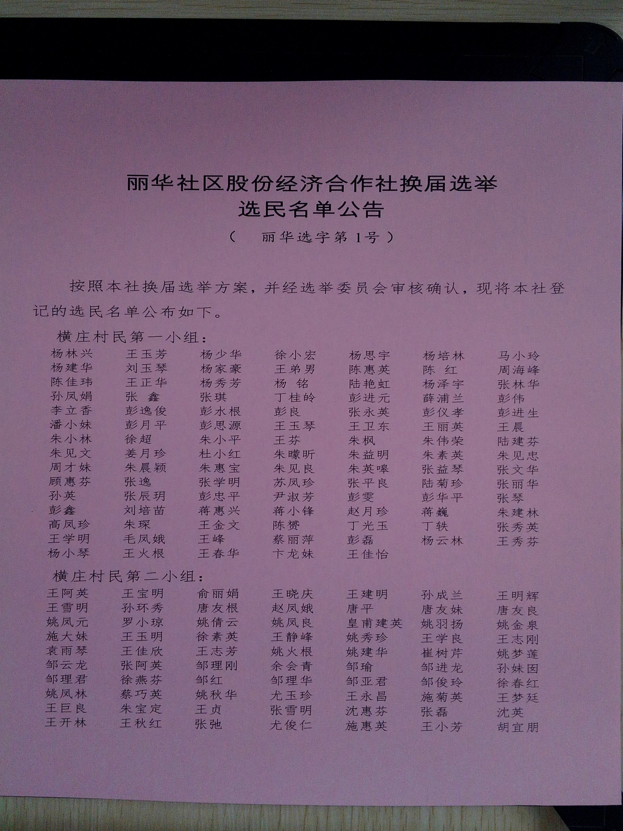丽华社区股份经济合作社换届选举选民公示