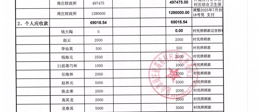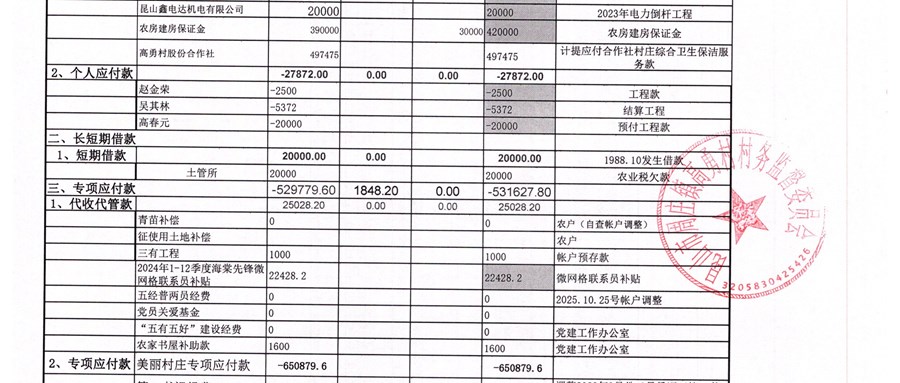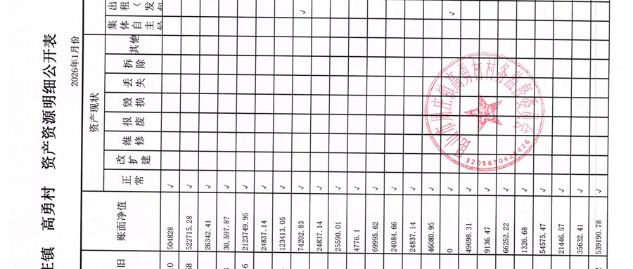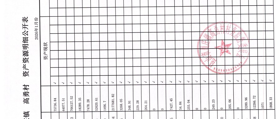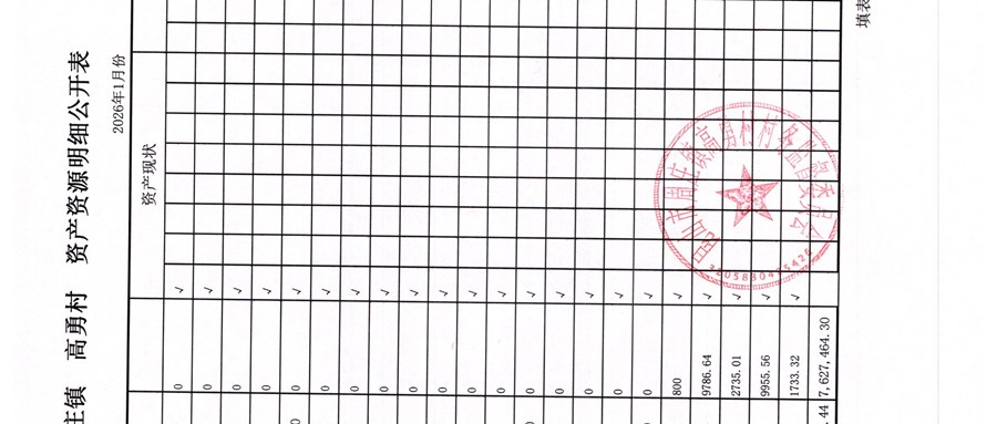 高勇村委会2026年1月份财务公开