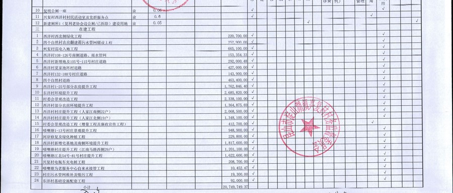 村盖章事项名录