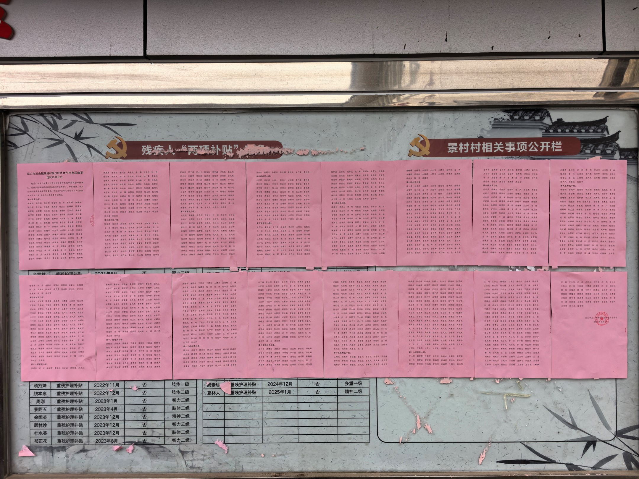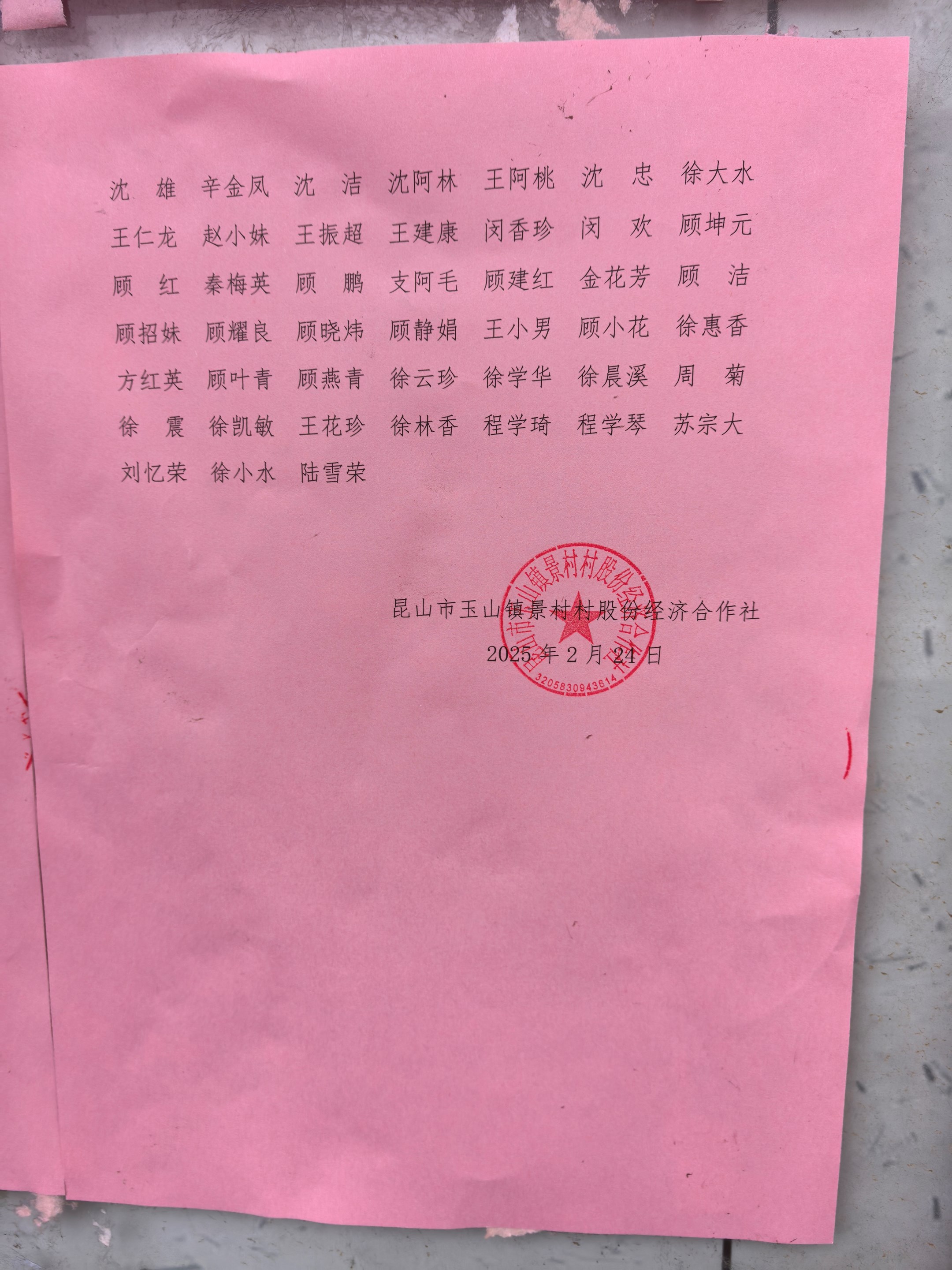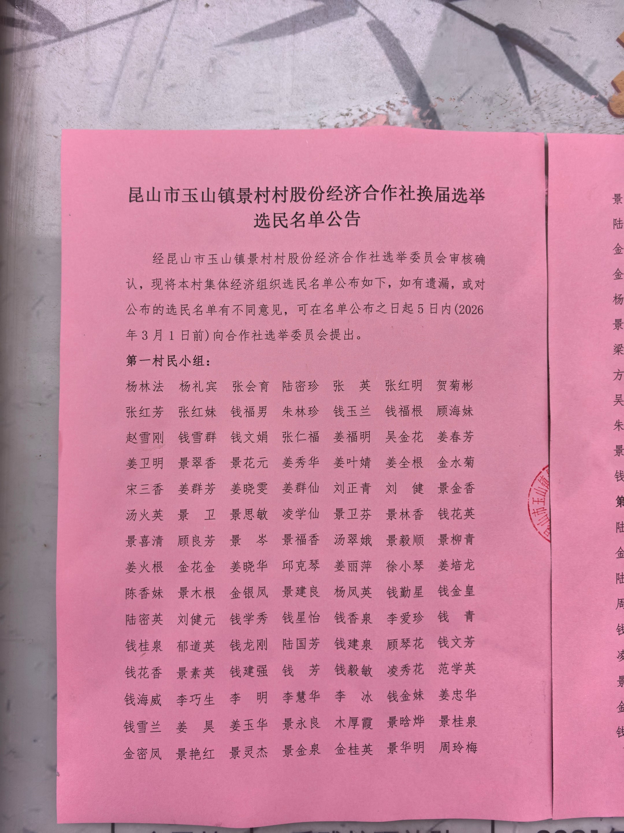 昆山市玉山镇景村村股份经济合作社换届选举选民名单公告