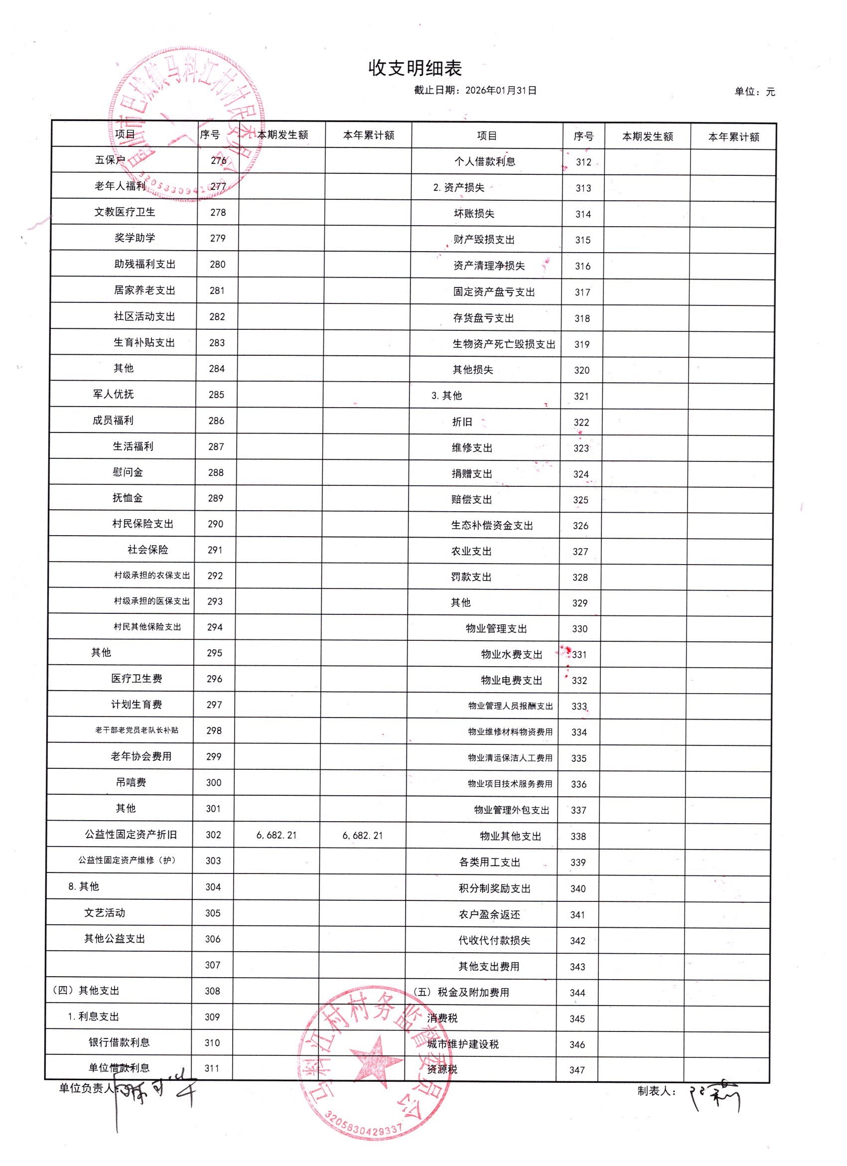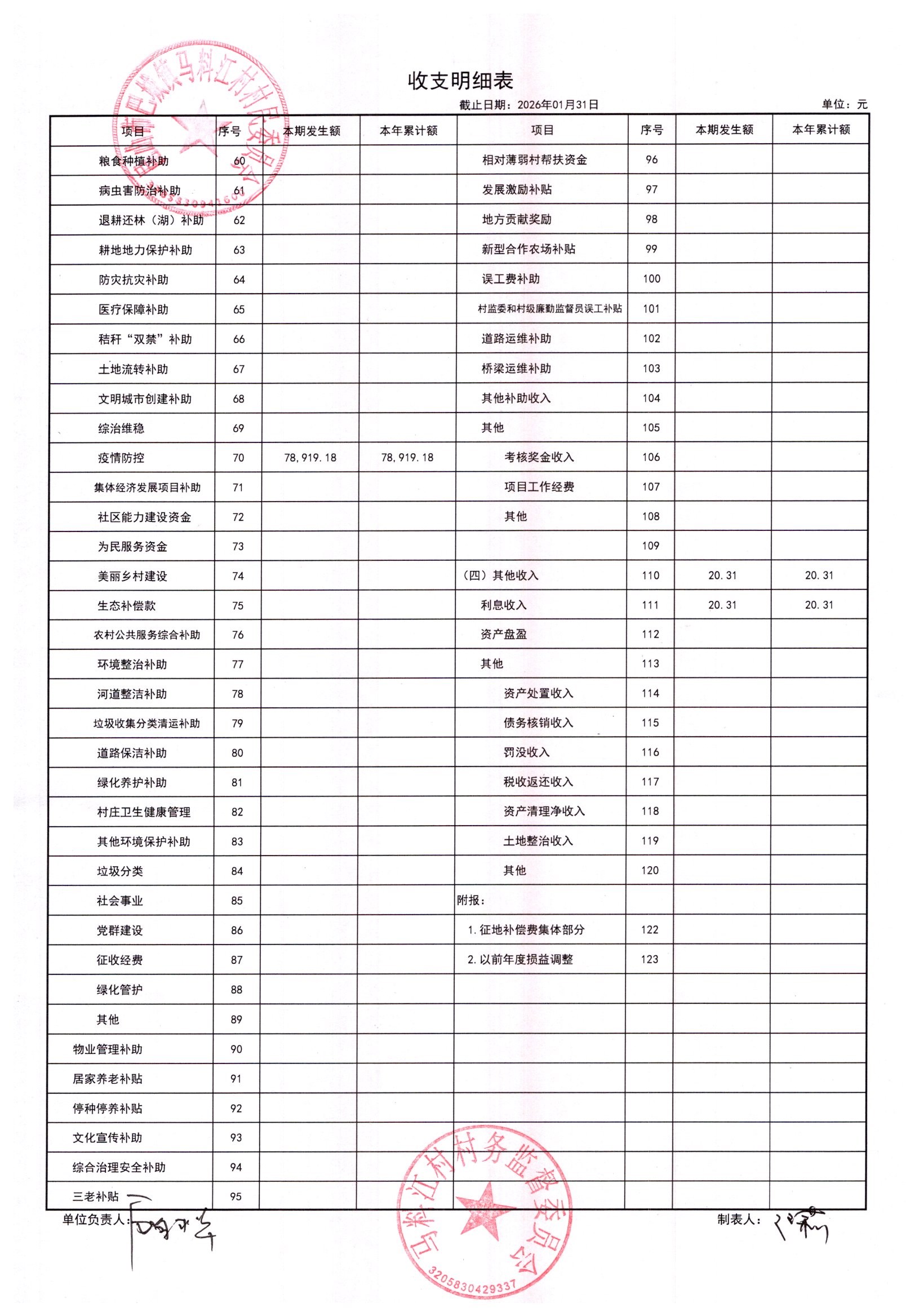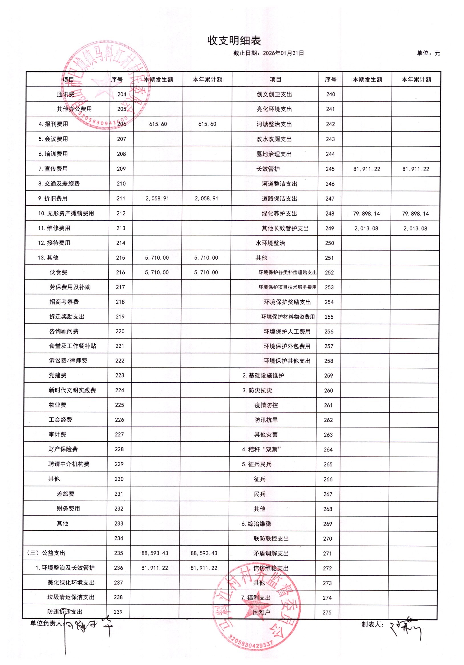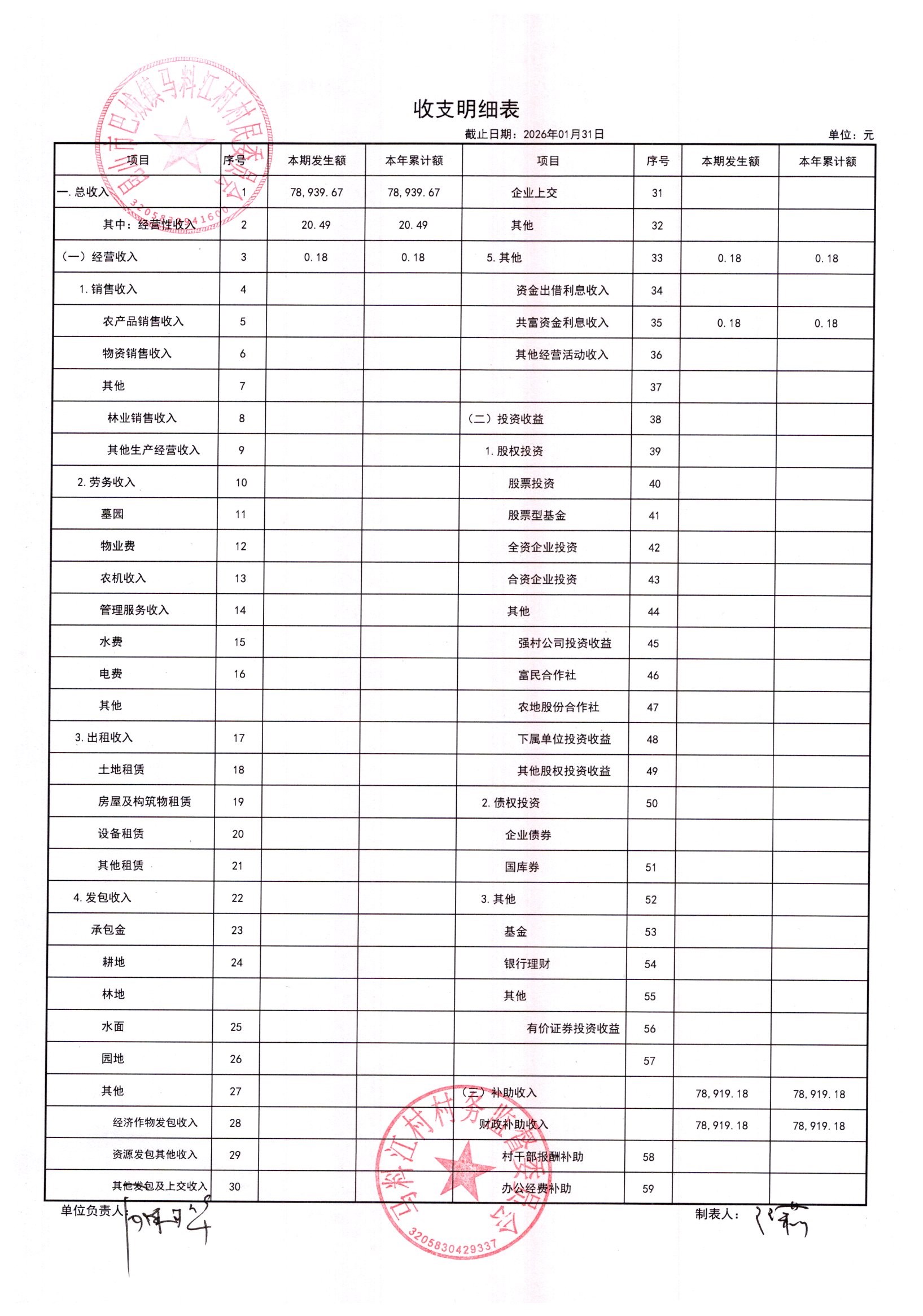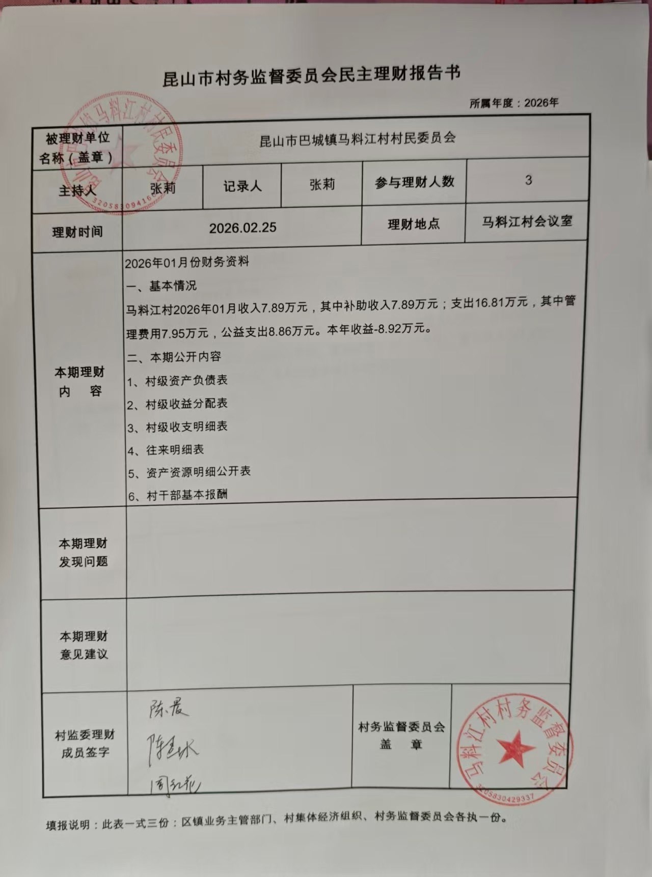 马料江村-2026年02月份财务公开内容
