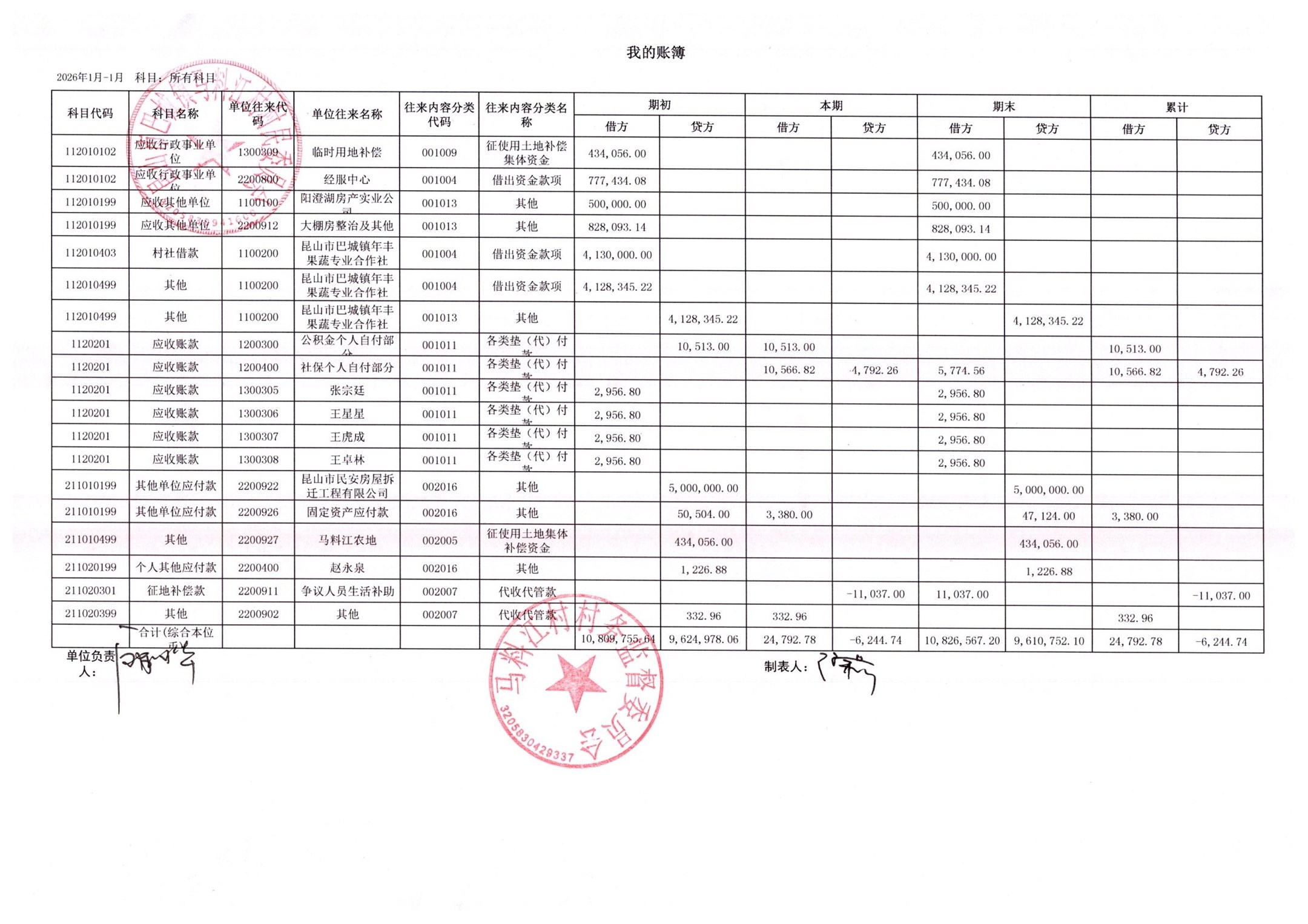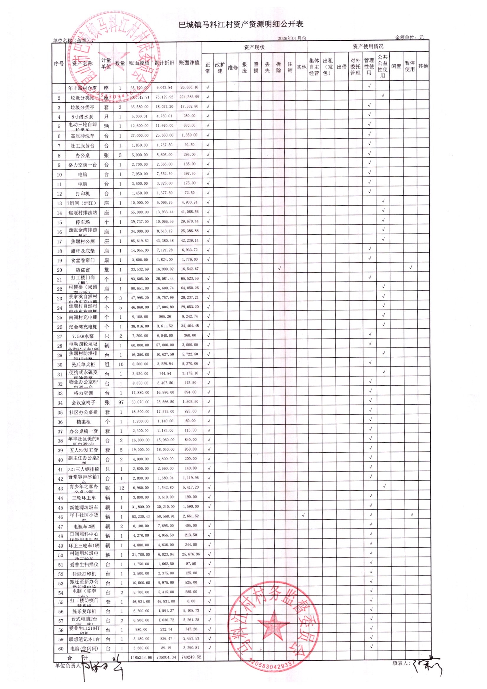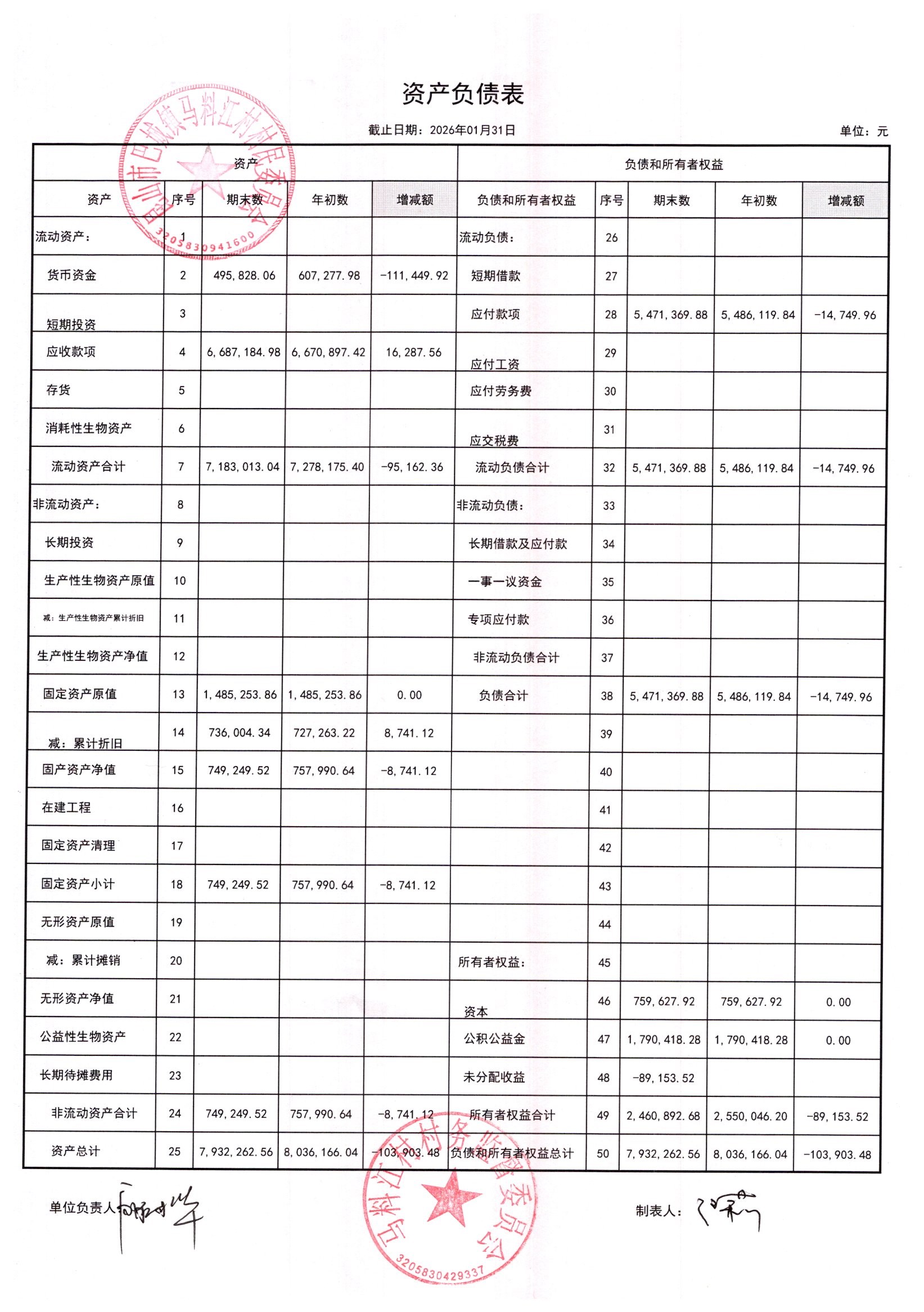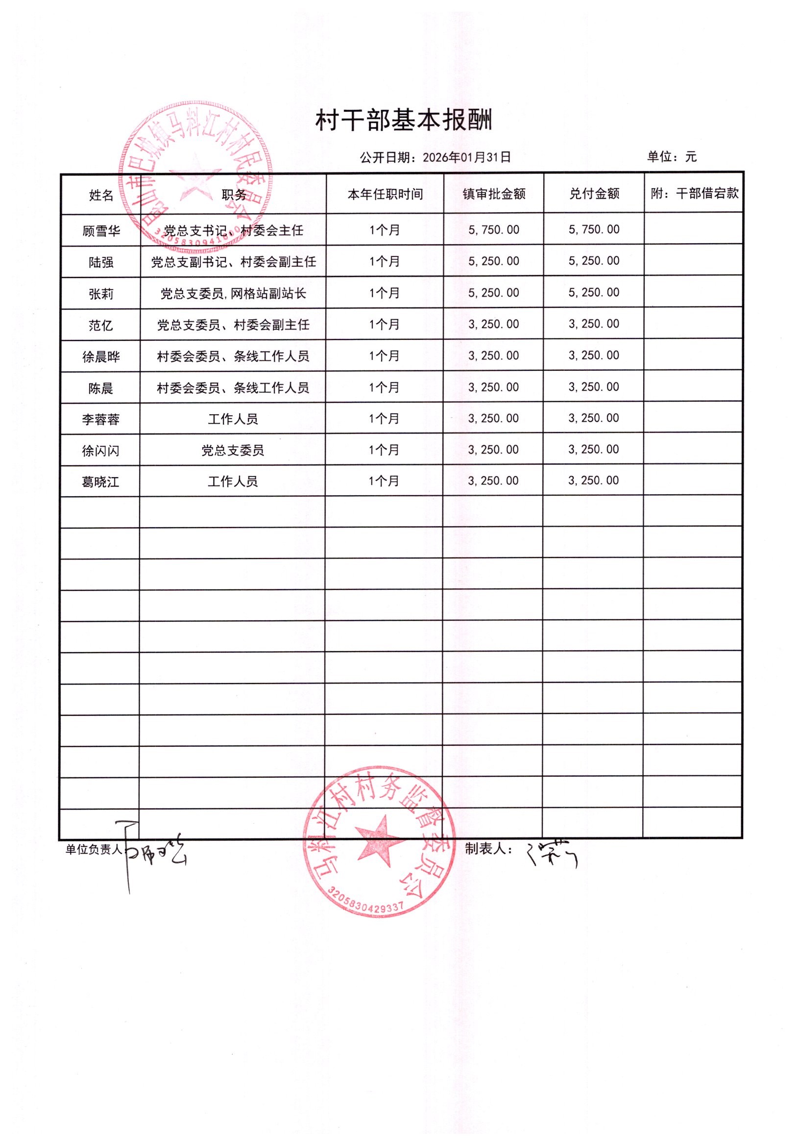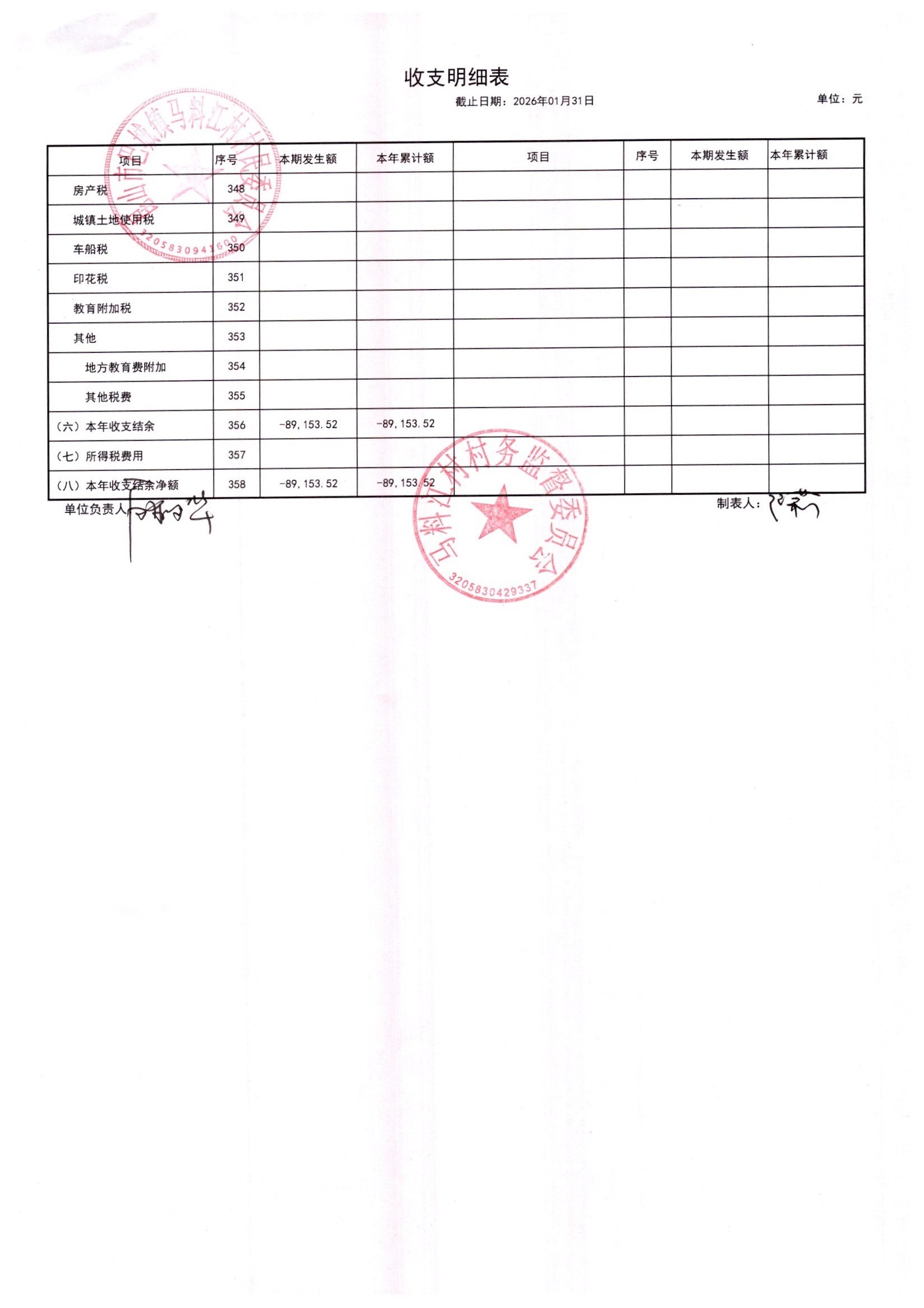 马料江村-2026年02月份财务公开内容
