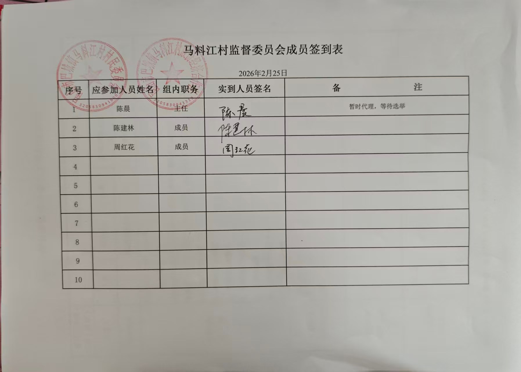 村盖章事项名录